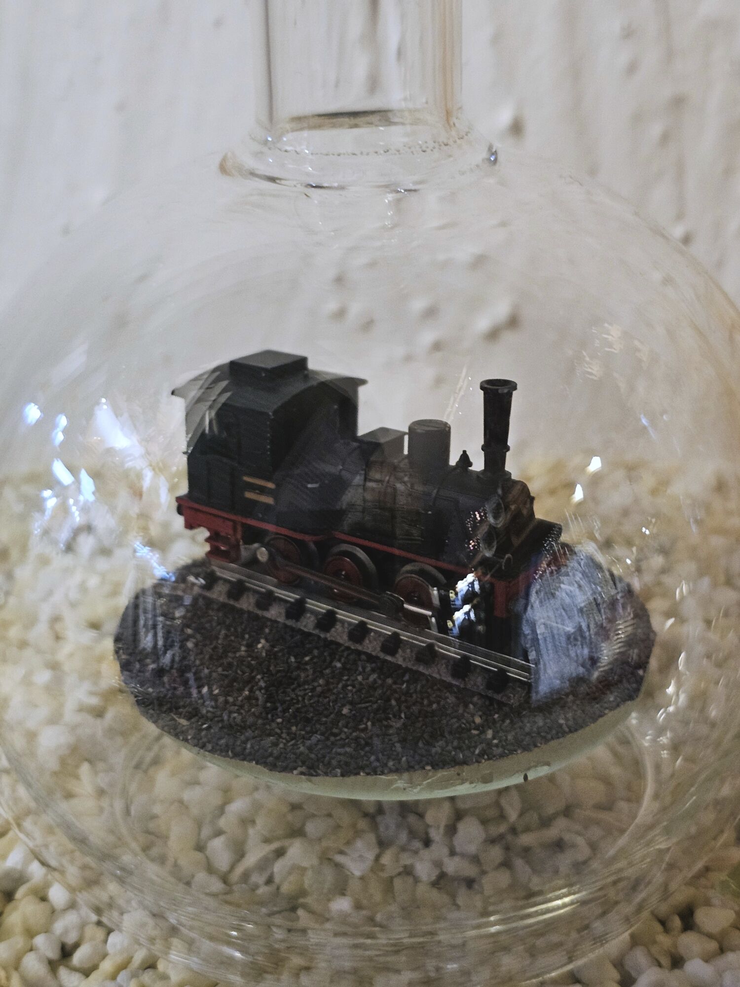 Hier zeigen wir Ihnen eine edle gefertigte, mundgeblasene Glasflasche mit einer schönen Lokomotive von Märklin