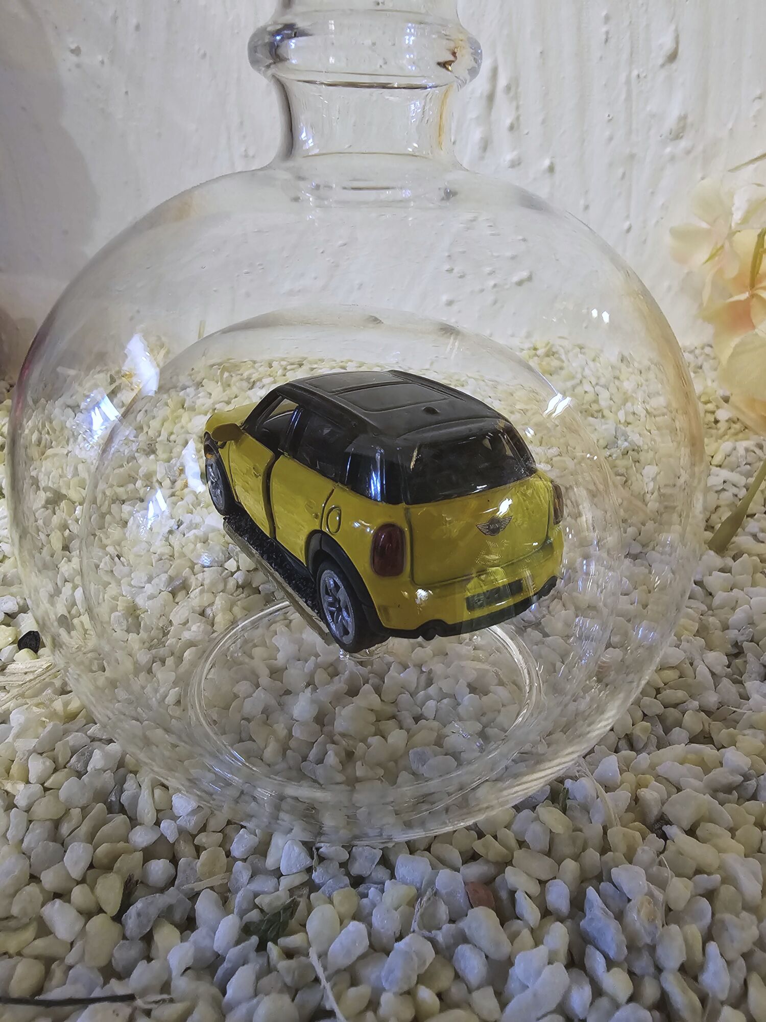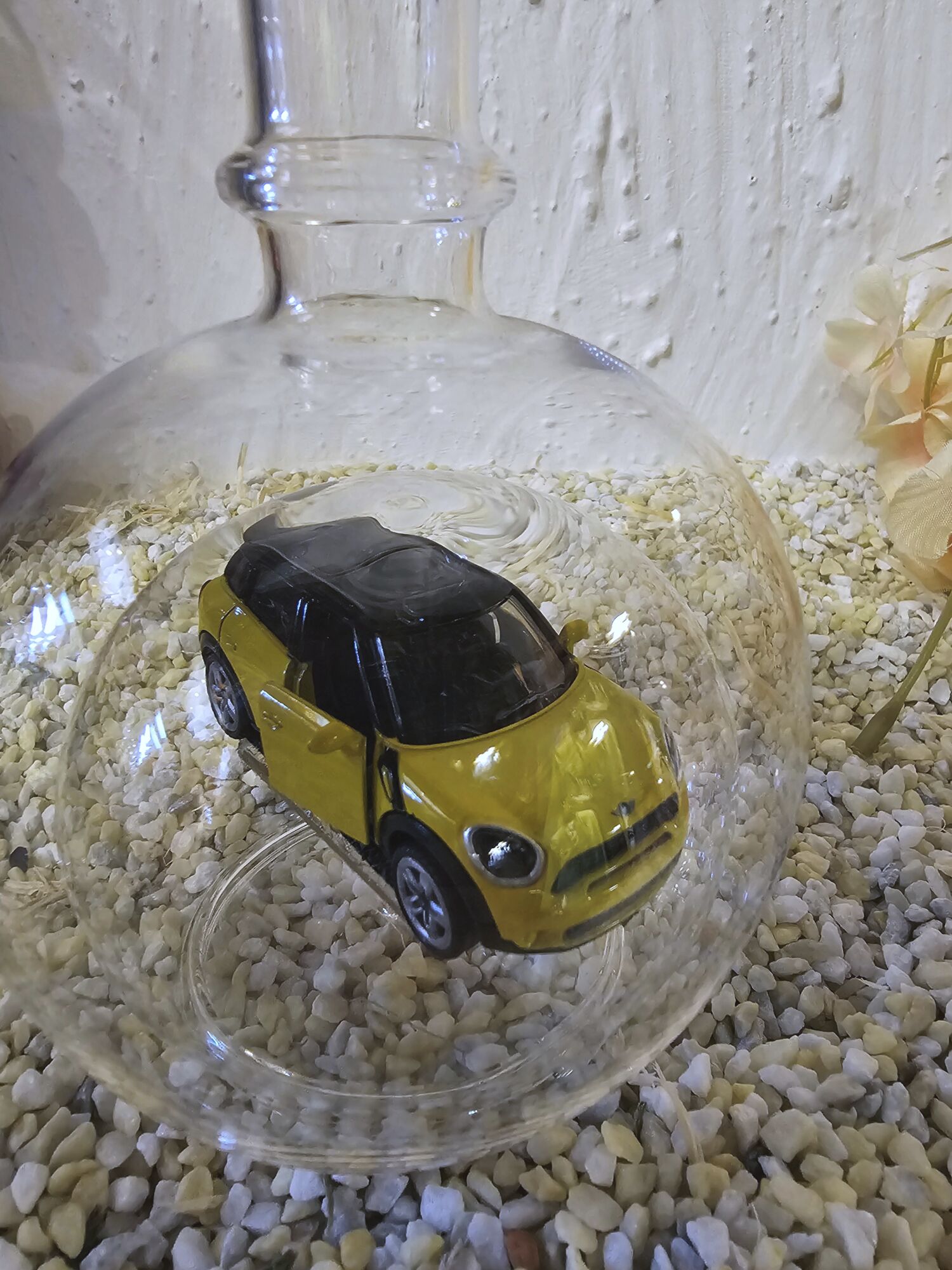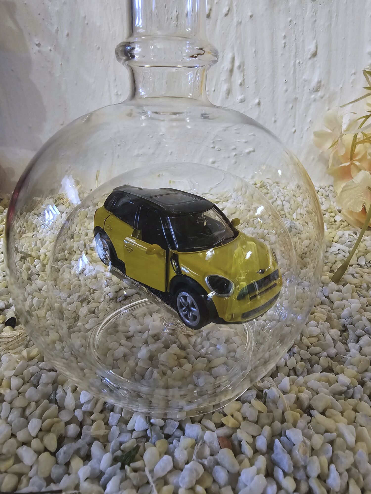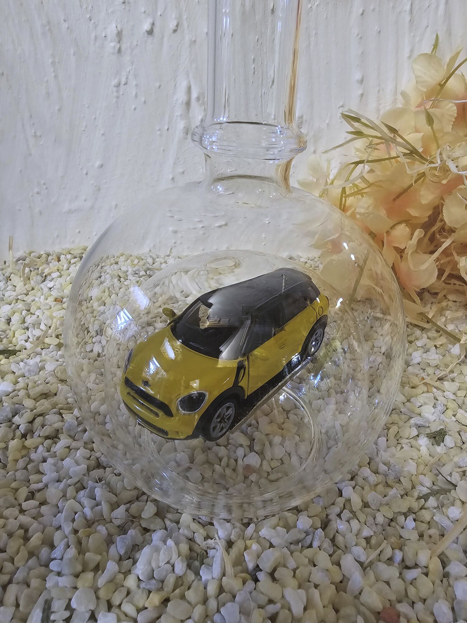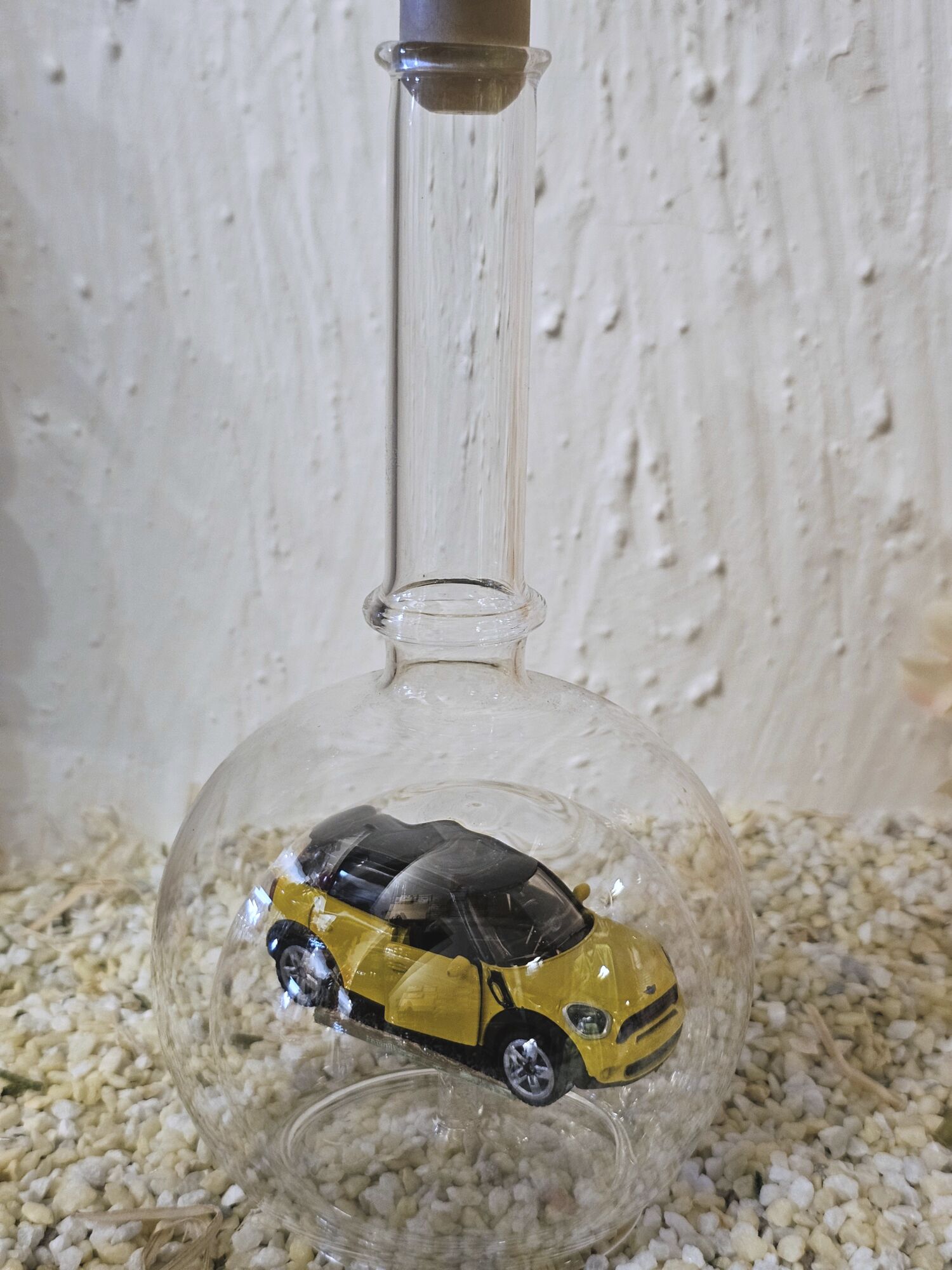 Hier zeigen wir Ihnen eine edle gefertigte, mundgeblasene Glasflasche mit einem Fahrzeug aus der Siku Collektion