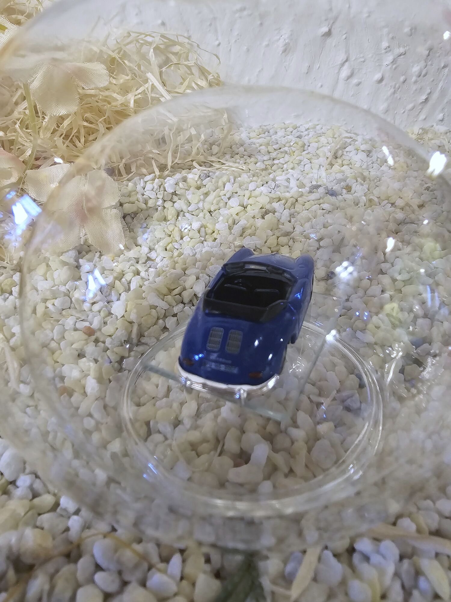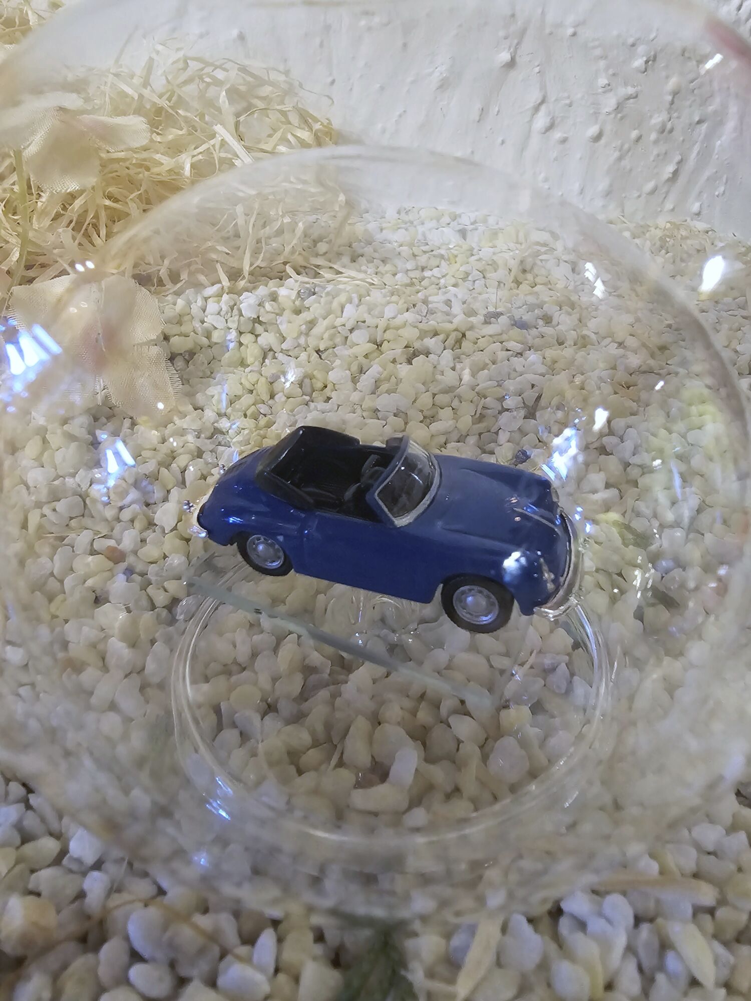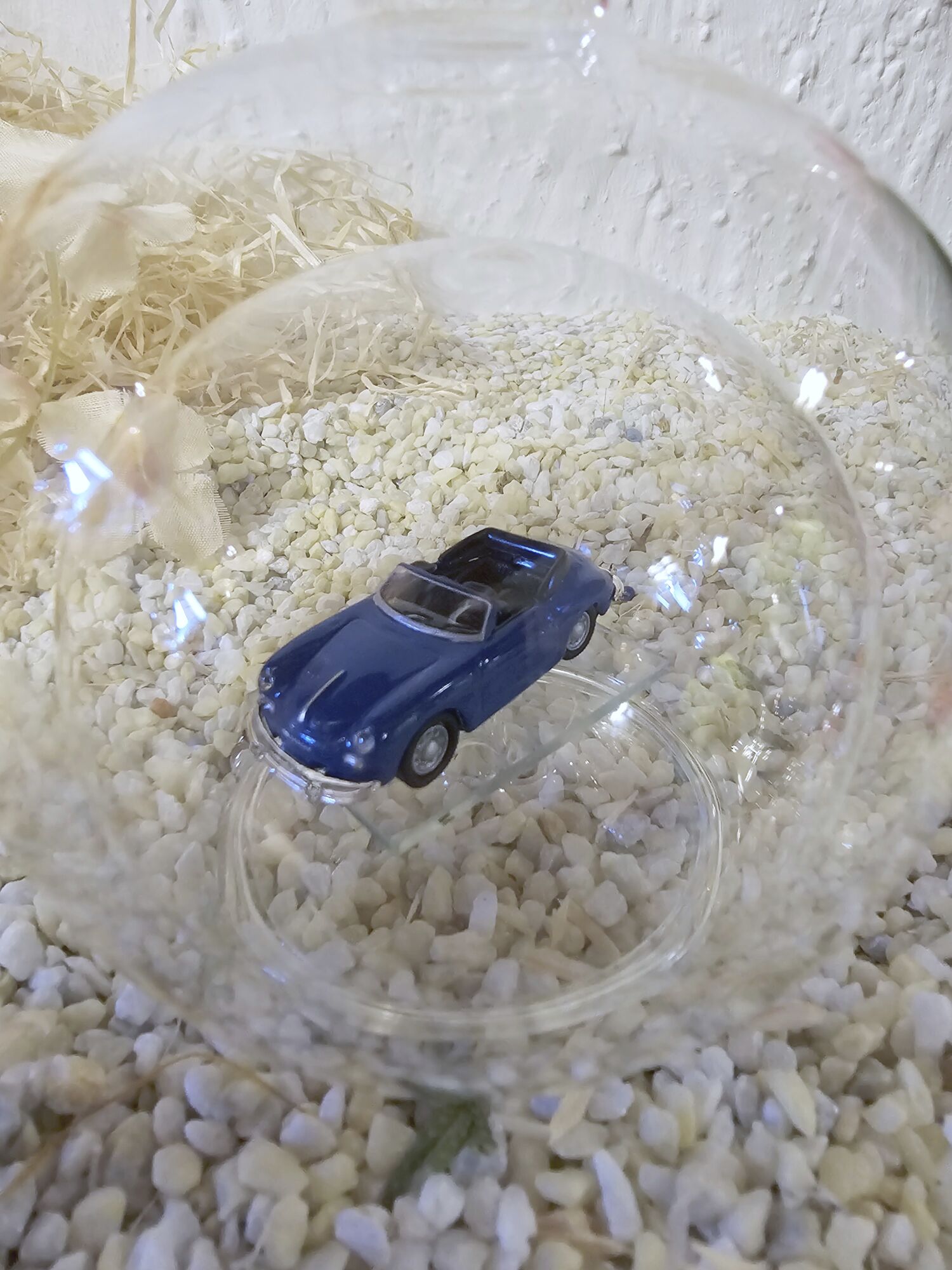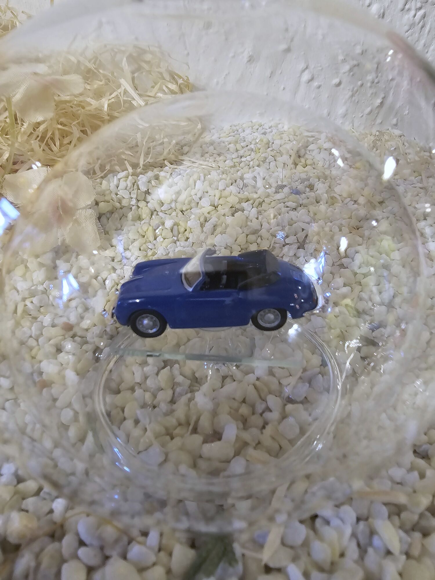 Hier zeigen wir Ihnen eine edle gefertigte, mundgeblasene Glasflasche mit einem Fahrzeug-Modell 1:87 Porsche 356 Cabrio