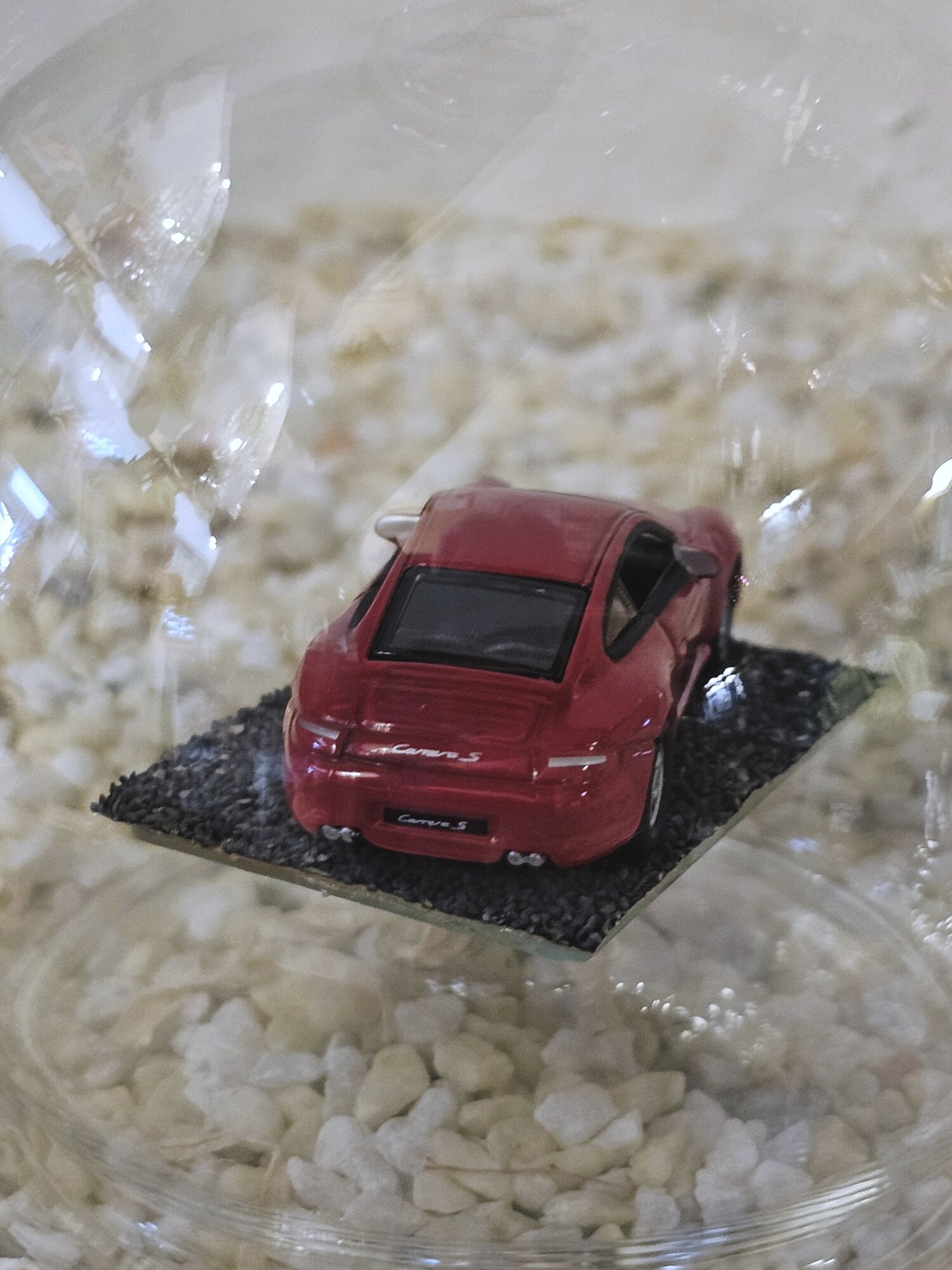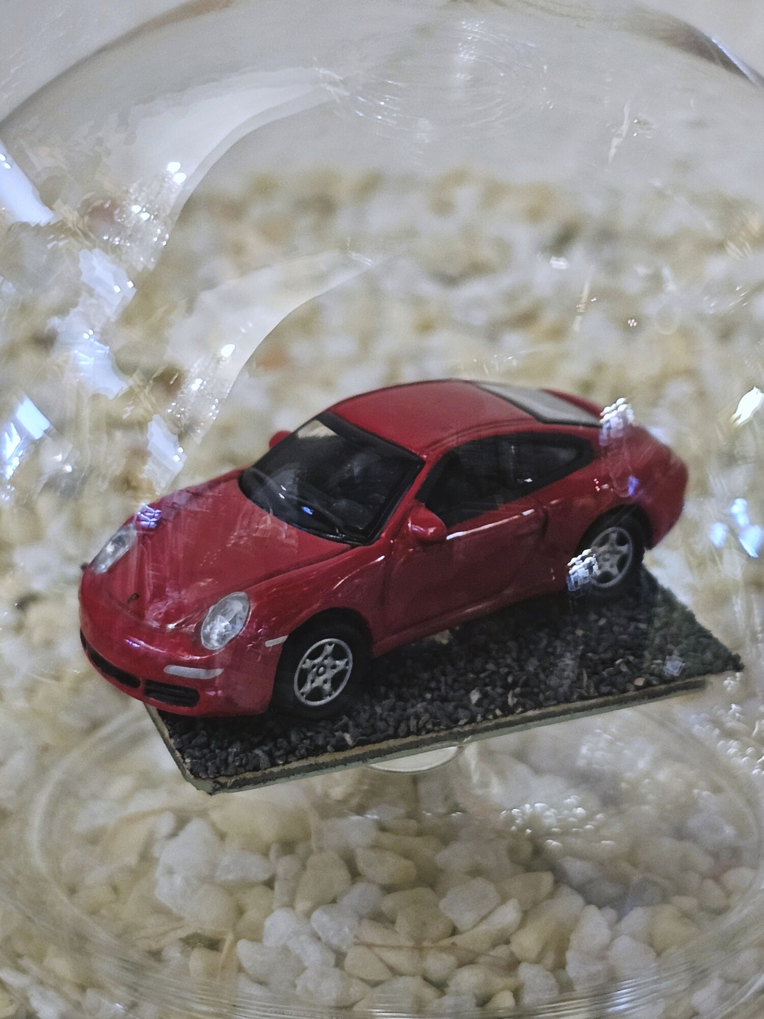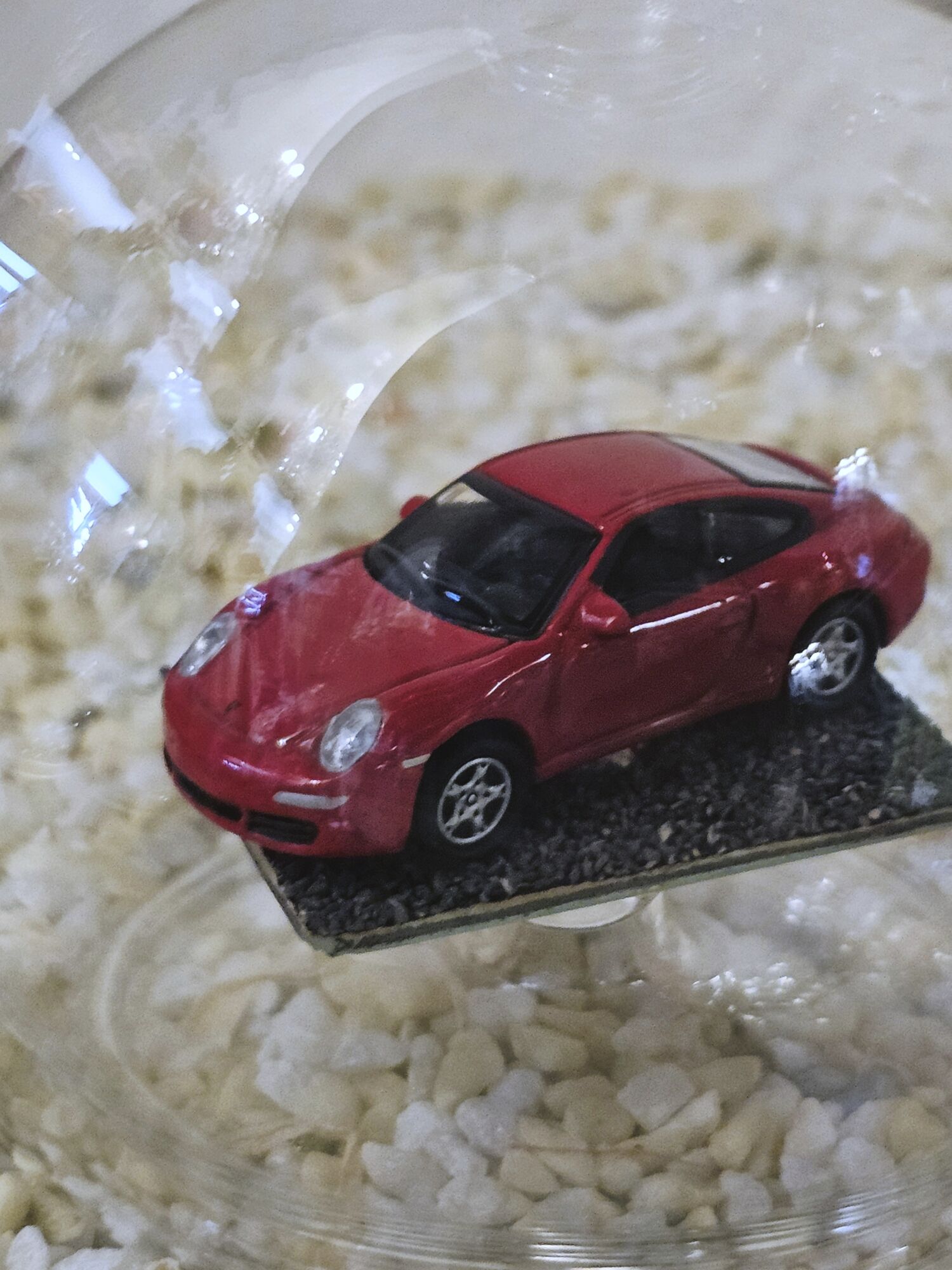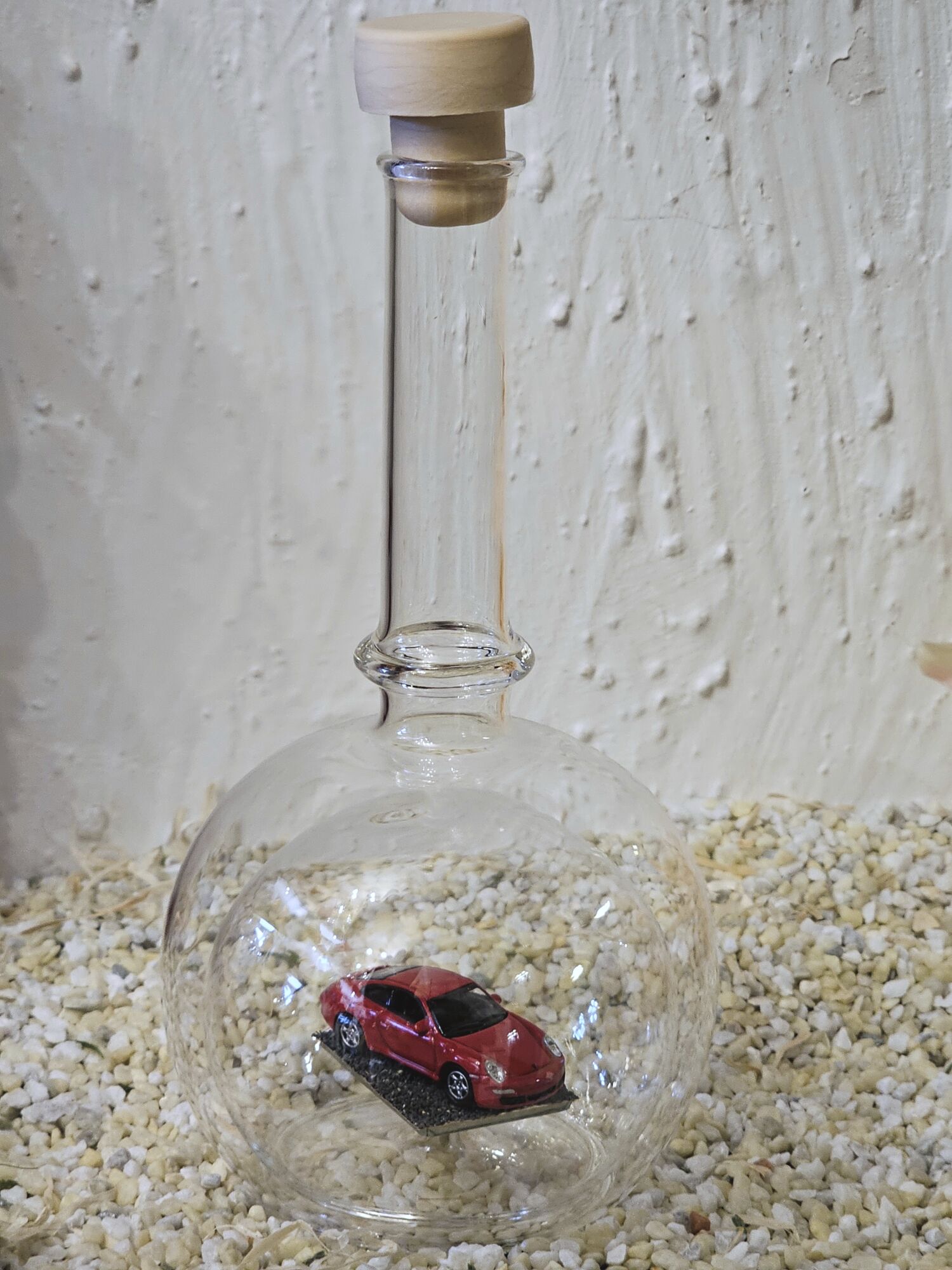 Hier zeigen wir Ihnen eine edle gefertigte, mundgeblasene Glasflasche mit einem Fahrzeug-Modell der Firma Herpa 1:87 Porsche 911 Carrera