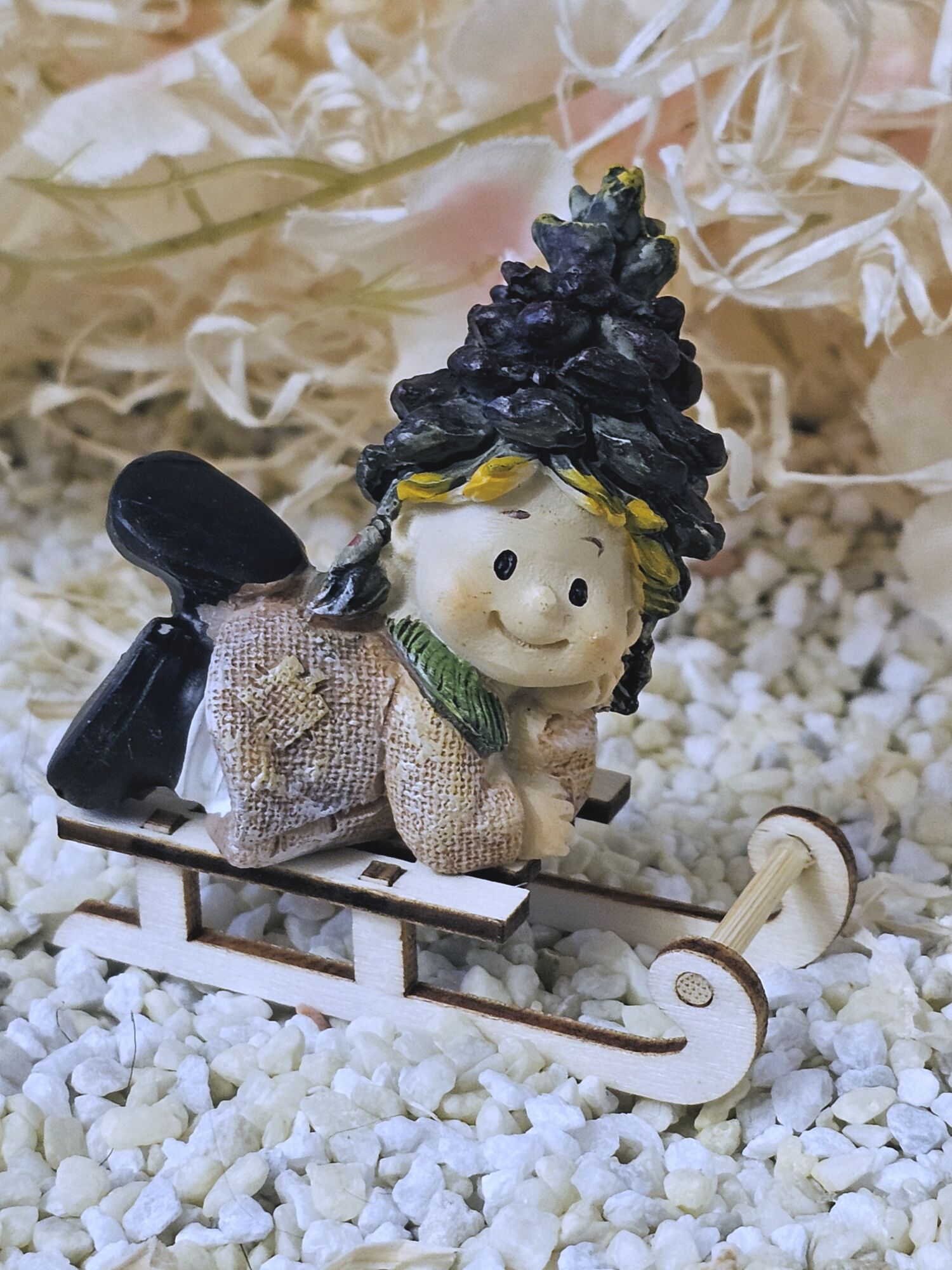 Zapfenwichtele auf Holzschlitten