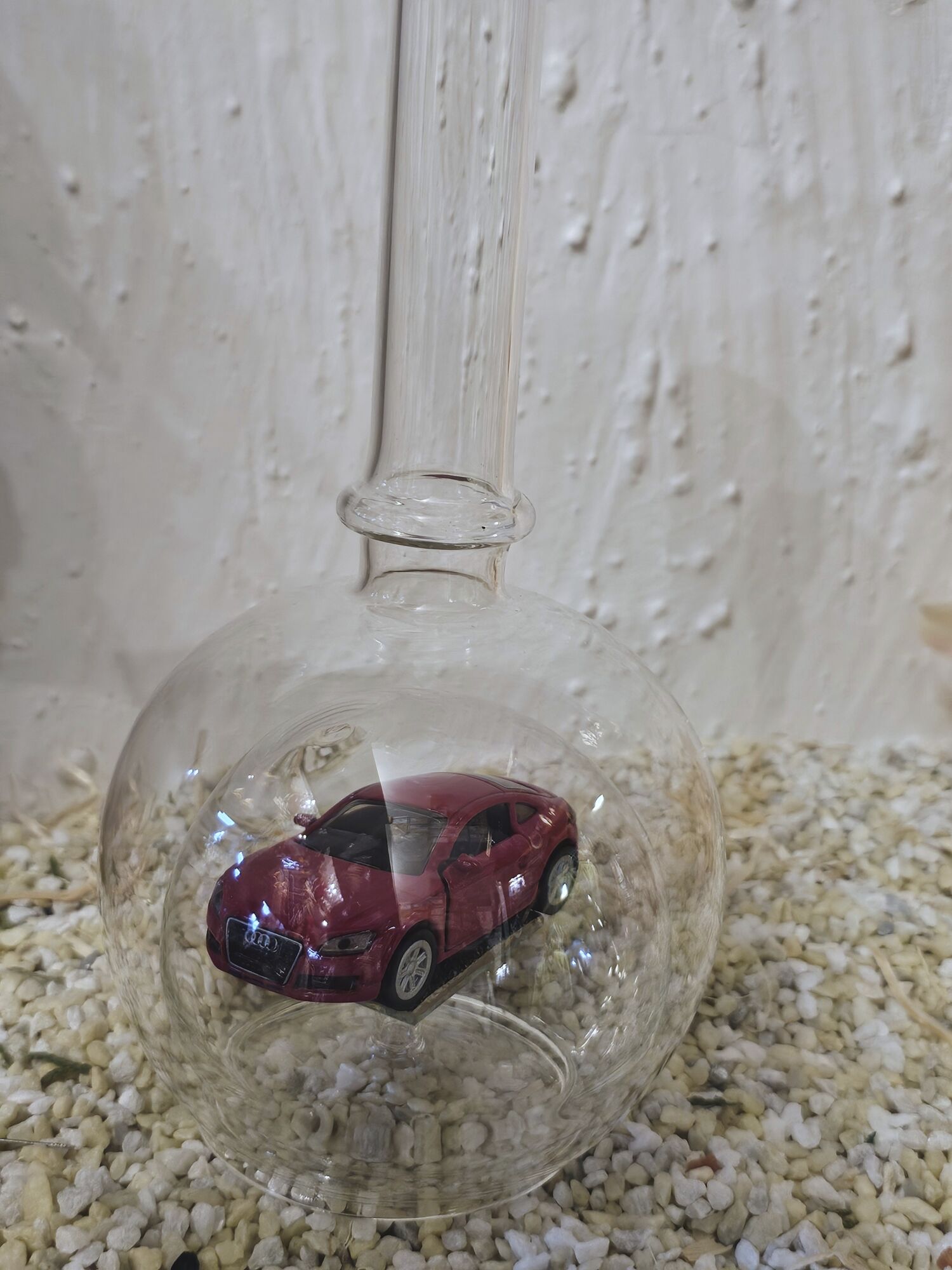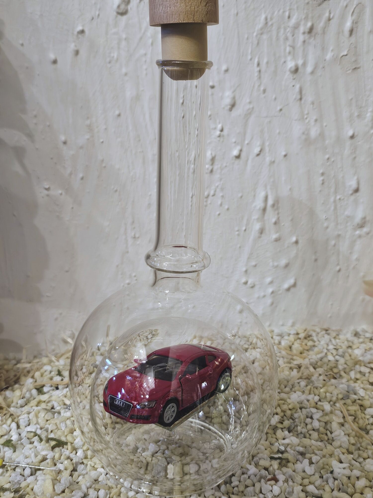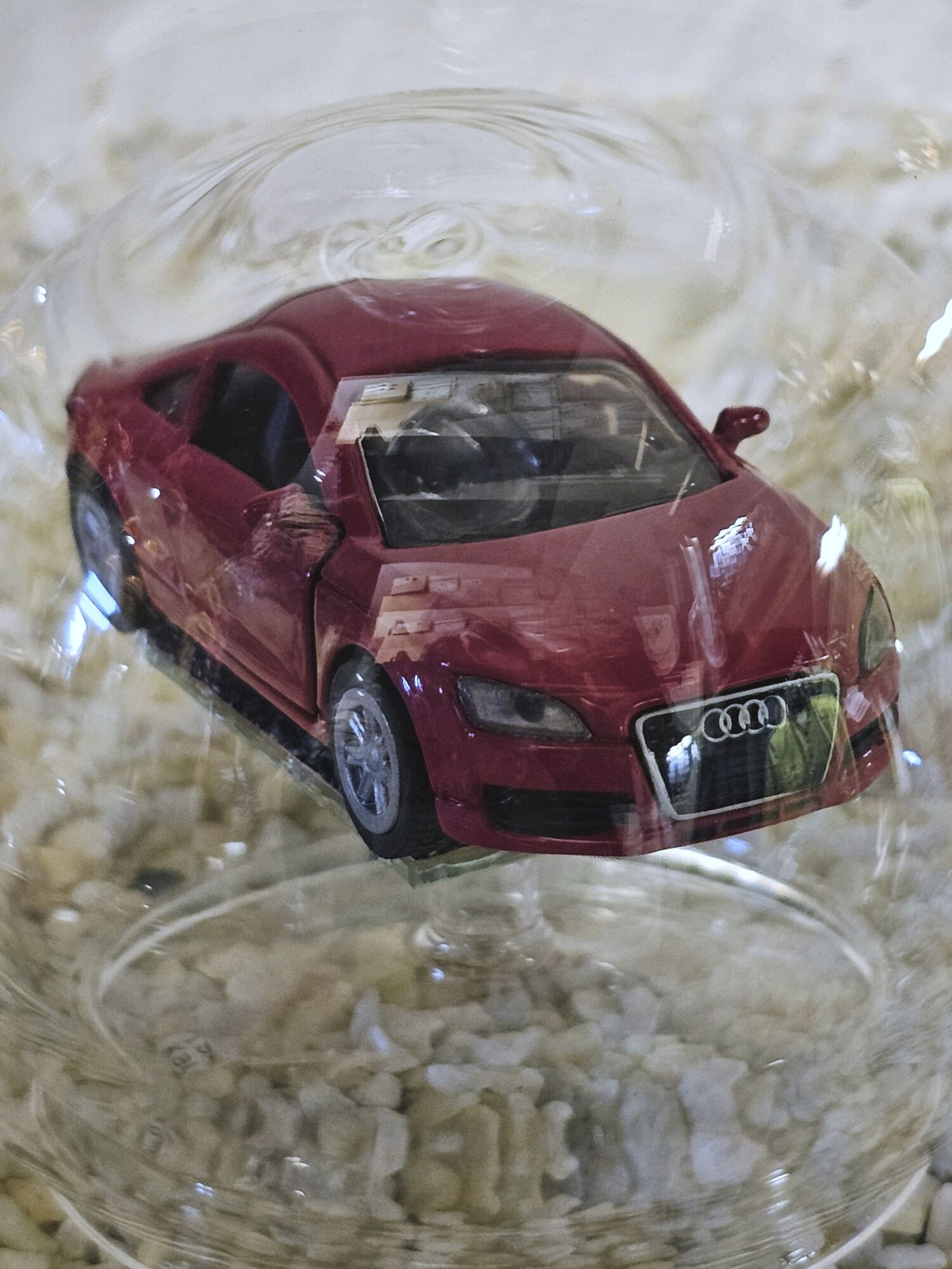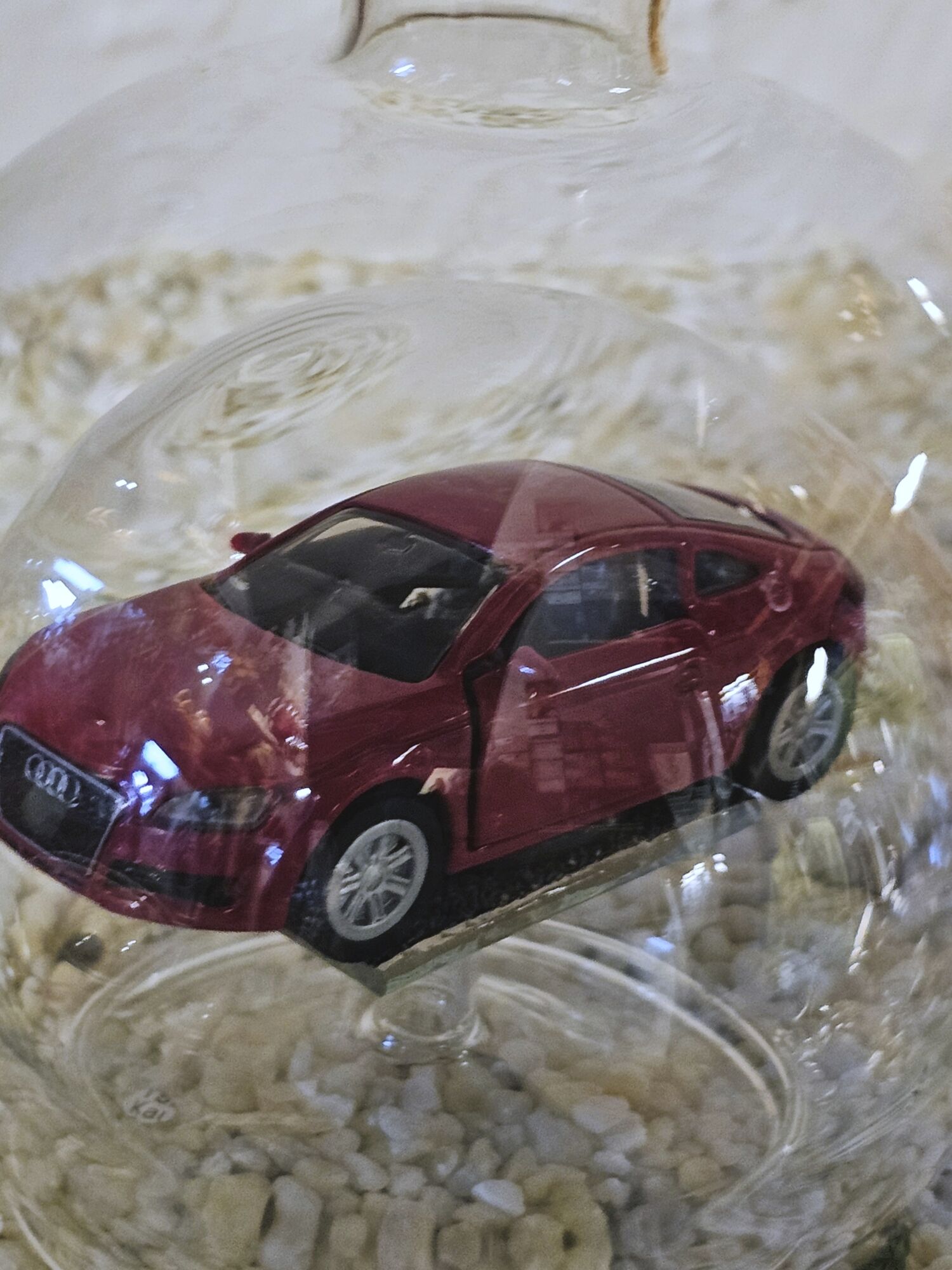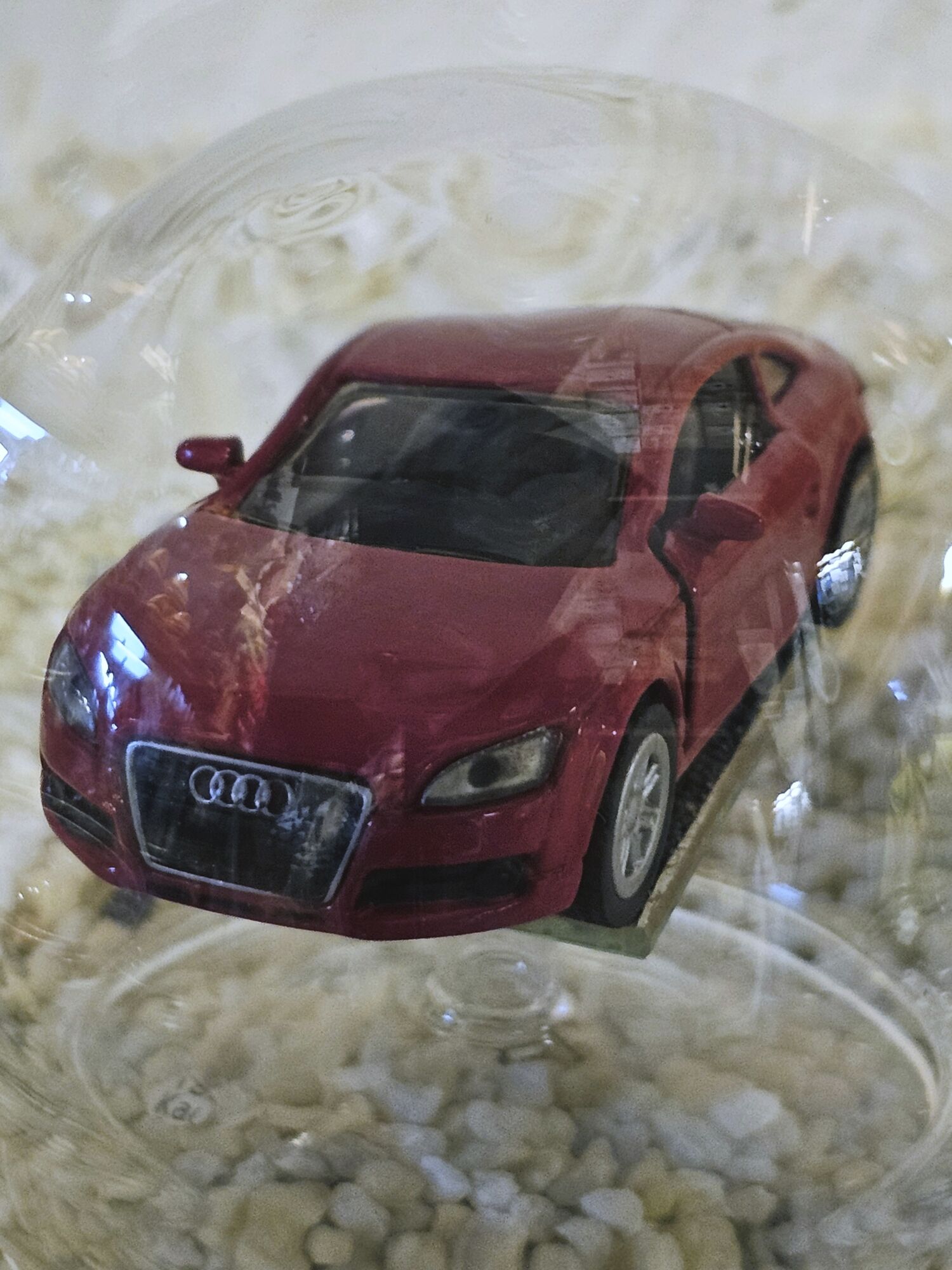 Edelglasflasche mit Siku Fahrzeug Audi TT