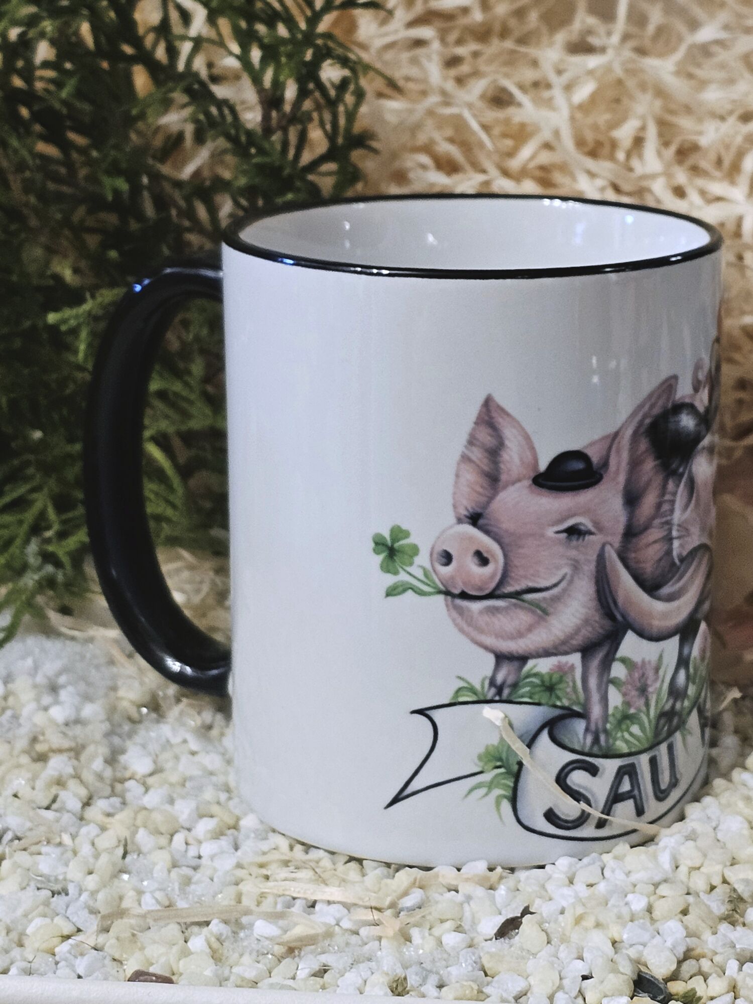 Schwarzwaldtasse Sau-Cool schwarzer Rand schwarzer Henkel
