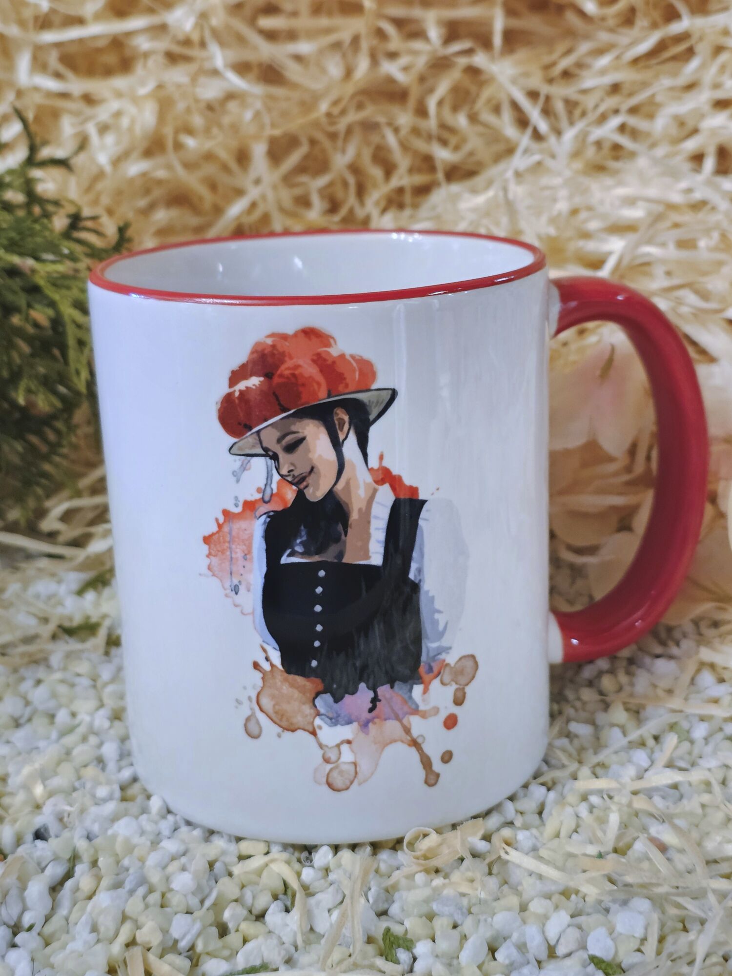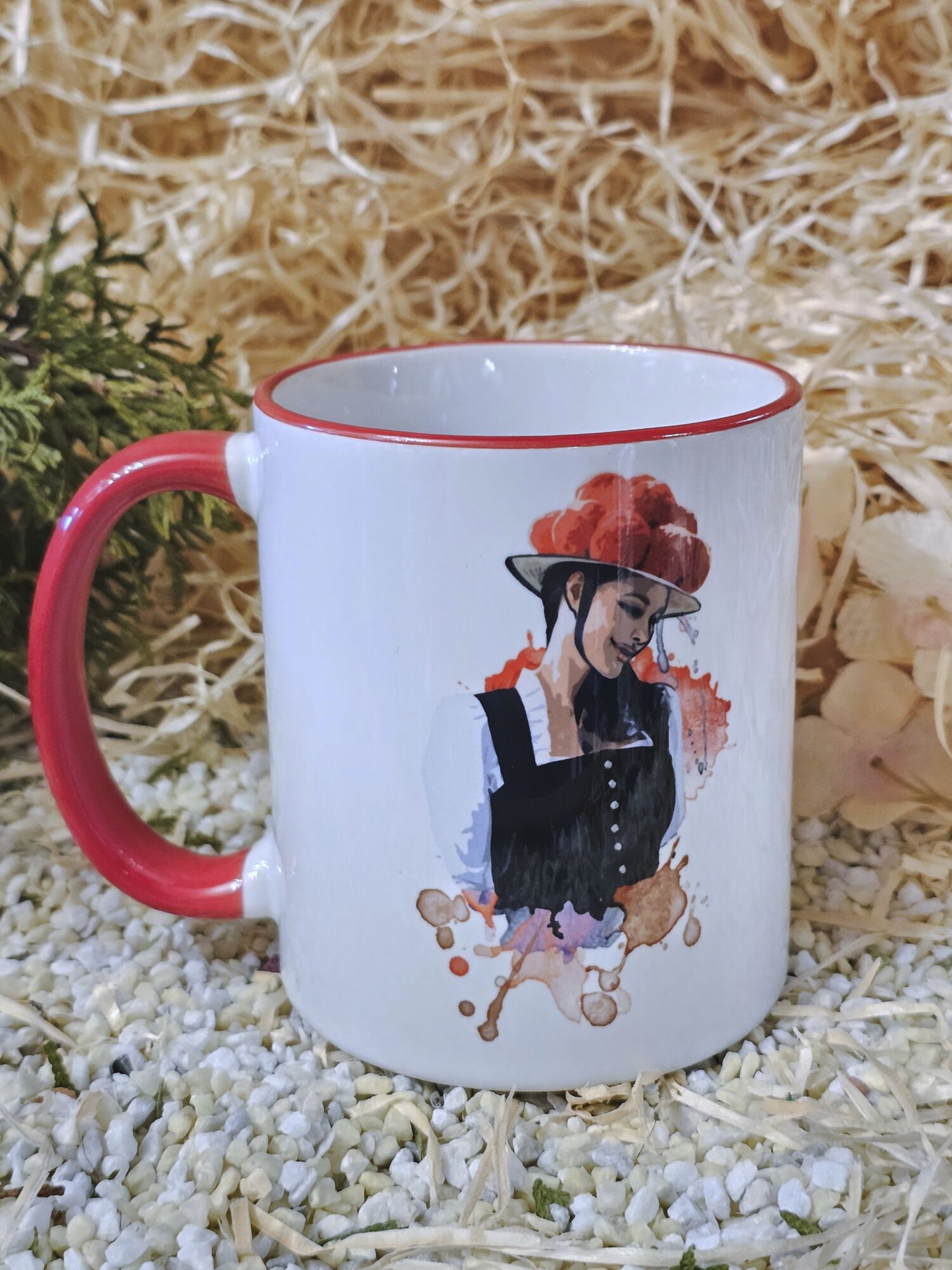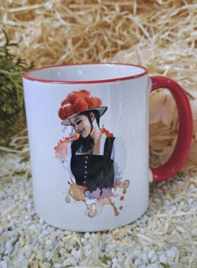 Schwarzwaldtasse Schwarzwälderin roter Rand roter Henkel
