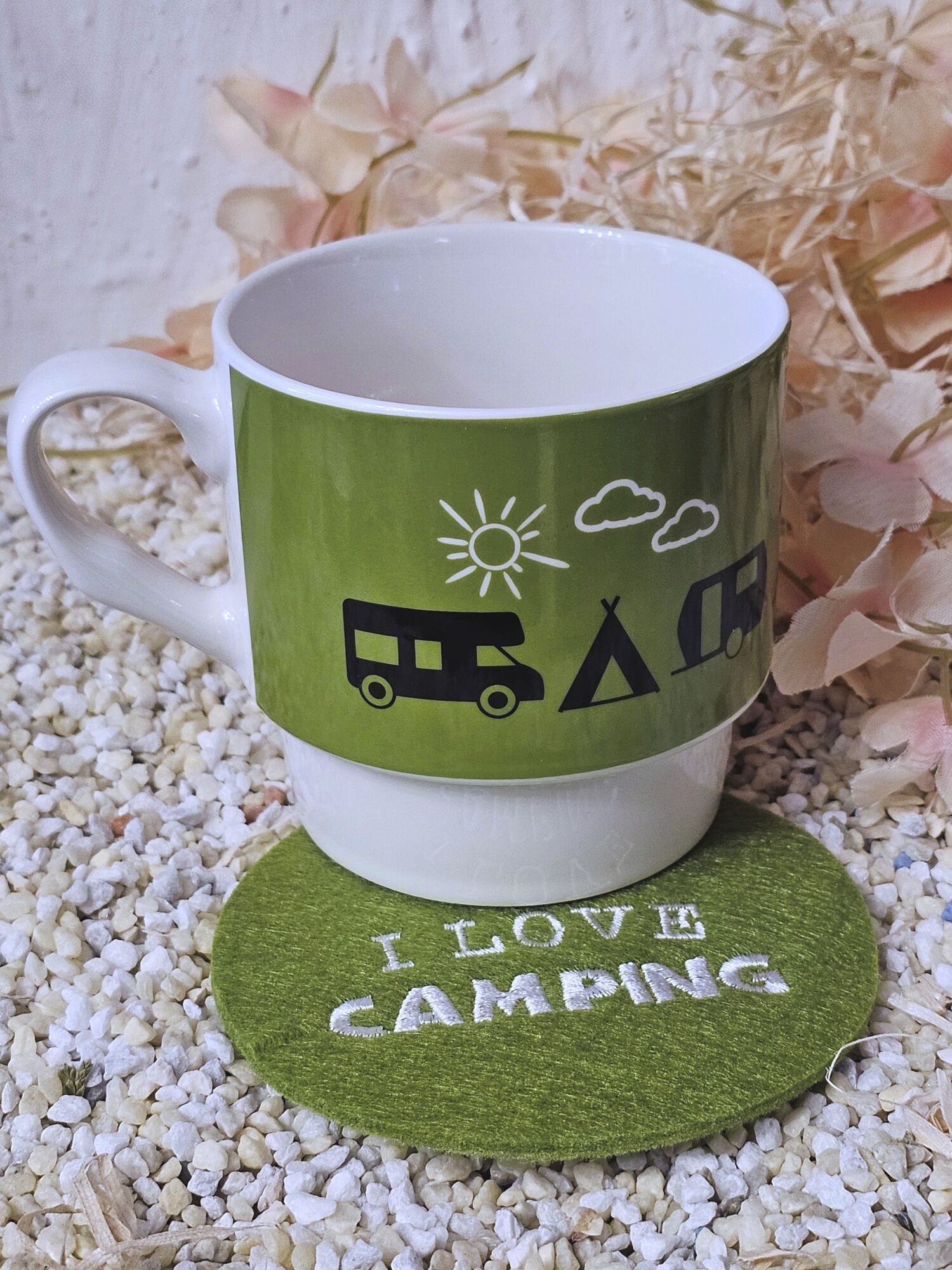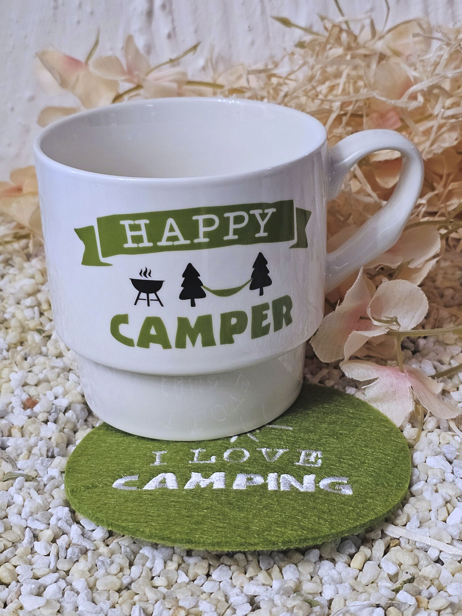 2 Stück im Set Happy Camper und 2 Untersetzer in Filz.