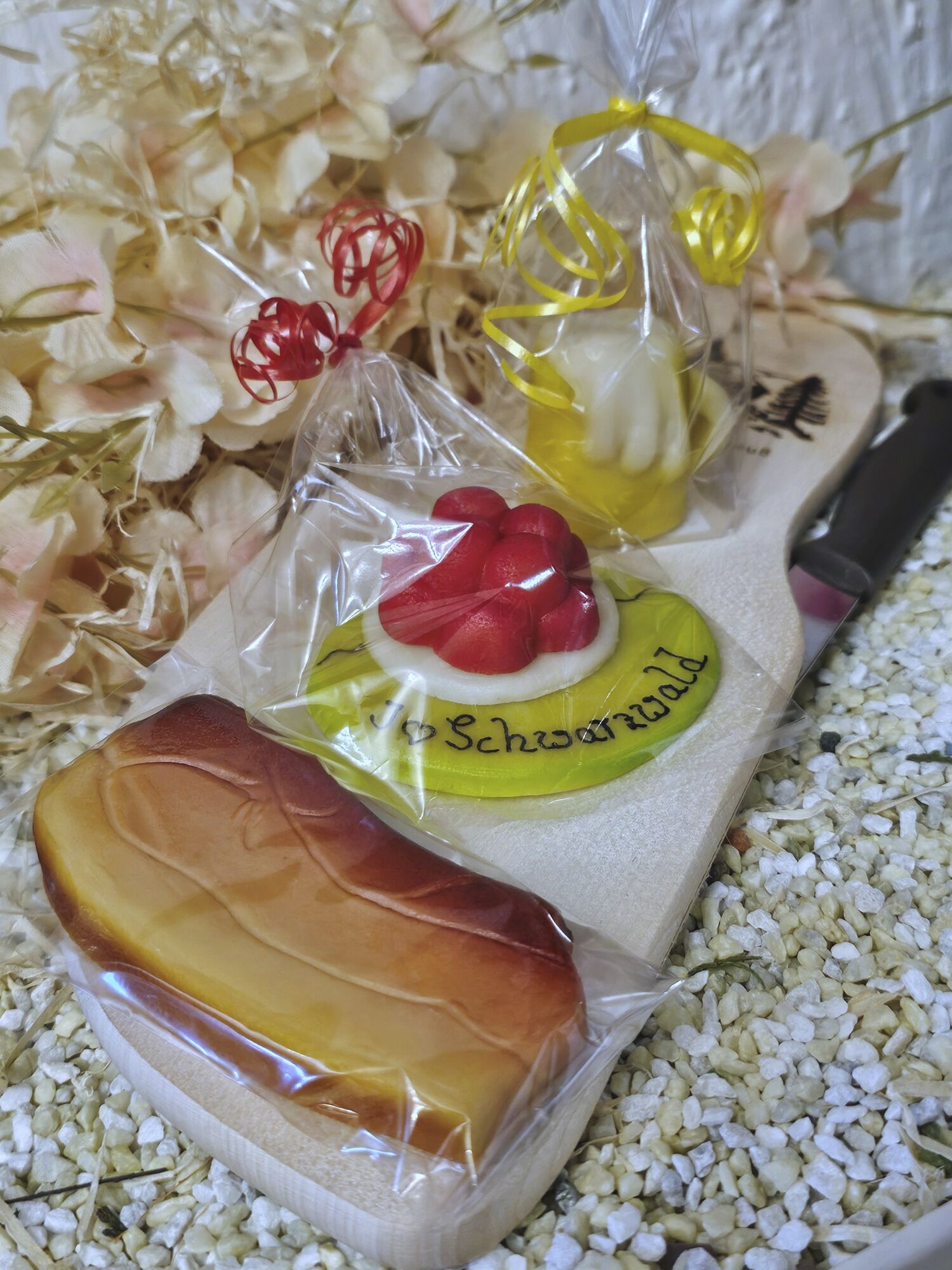 Vesperbrett aus Holz mit Schwarzwaldmotiv und Messer