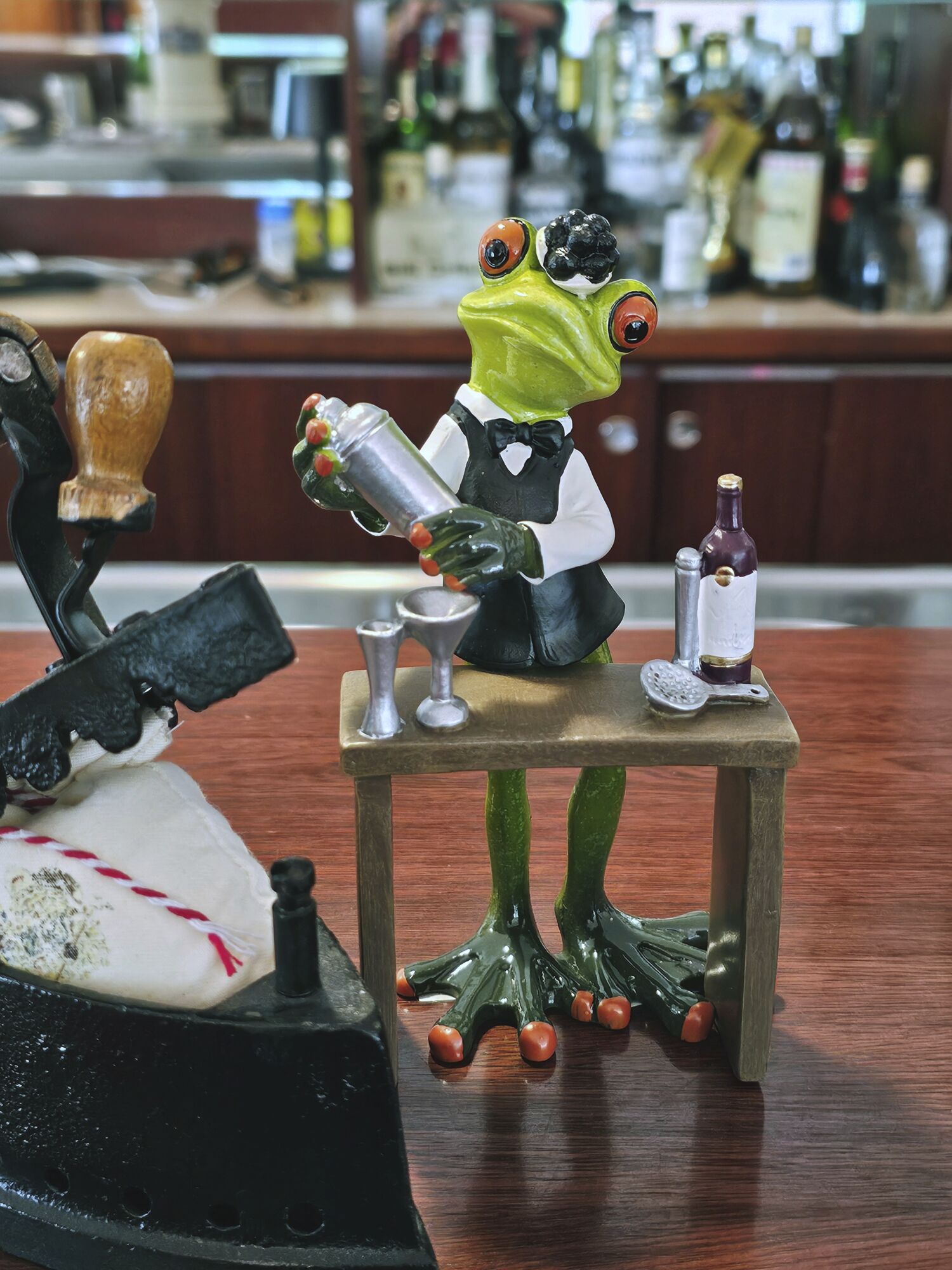 Glücksfrosch Baarkeeper Roland mit schwarzem Bollenhut