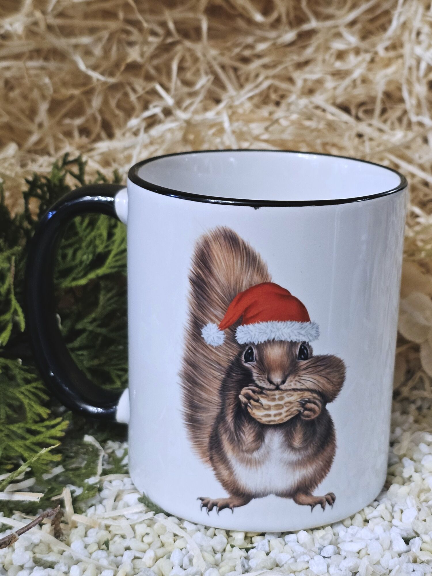Weihnachts -Eichhörnchen schwarzer Rand ,schwarzer Henkel