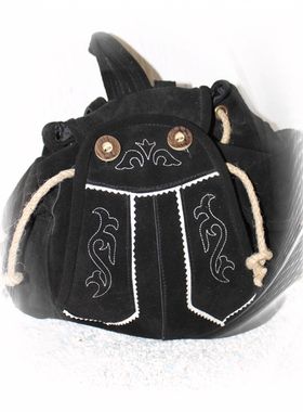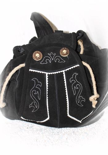 Dieser schöne Lederrucksack ist aufgemacht, wie eine Trachtenlederhose.
