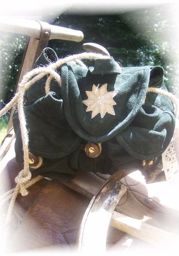 Ein niedlicher kleiner Rucksack aus feinstem Leder gefertigt im Tiroler Landhausstiel in der Farbe Waldgrün.