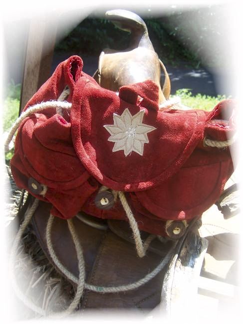 Vorne zwei Taschen und auf der Schließe ein Edelweißsticker.