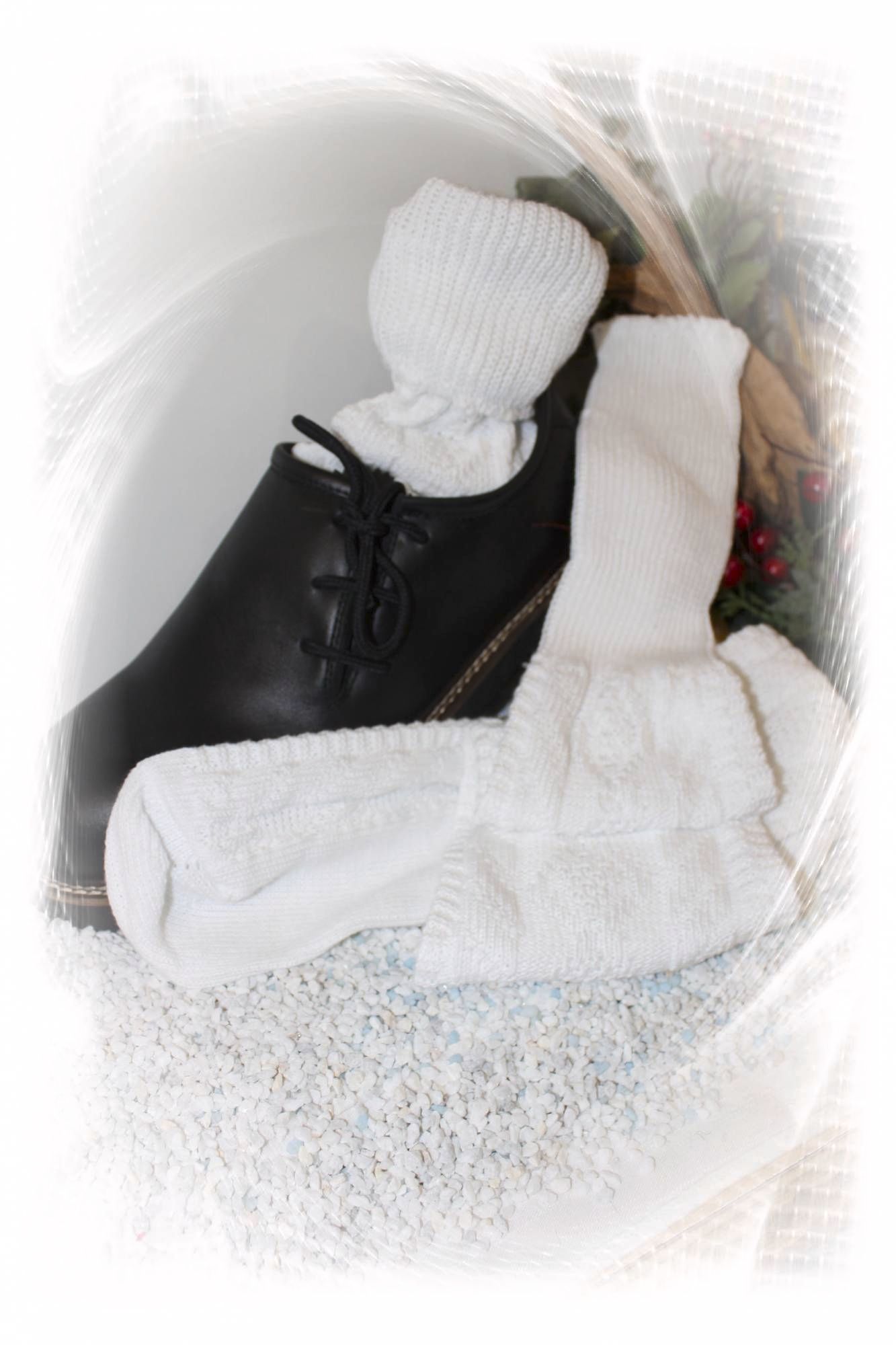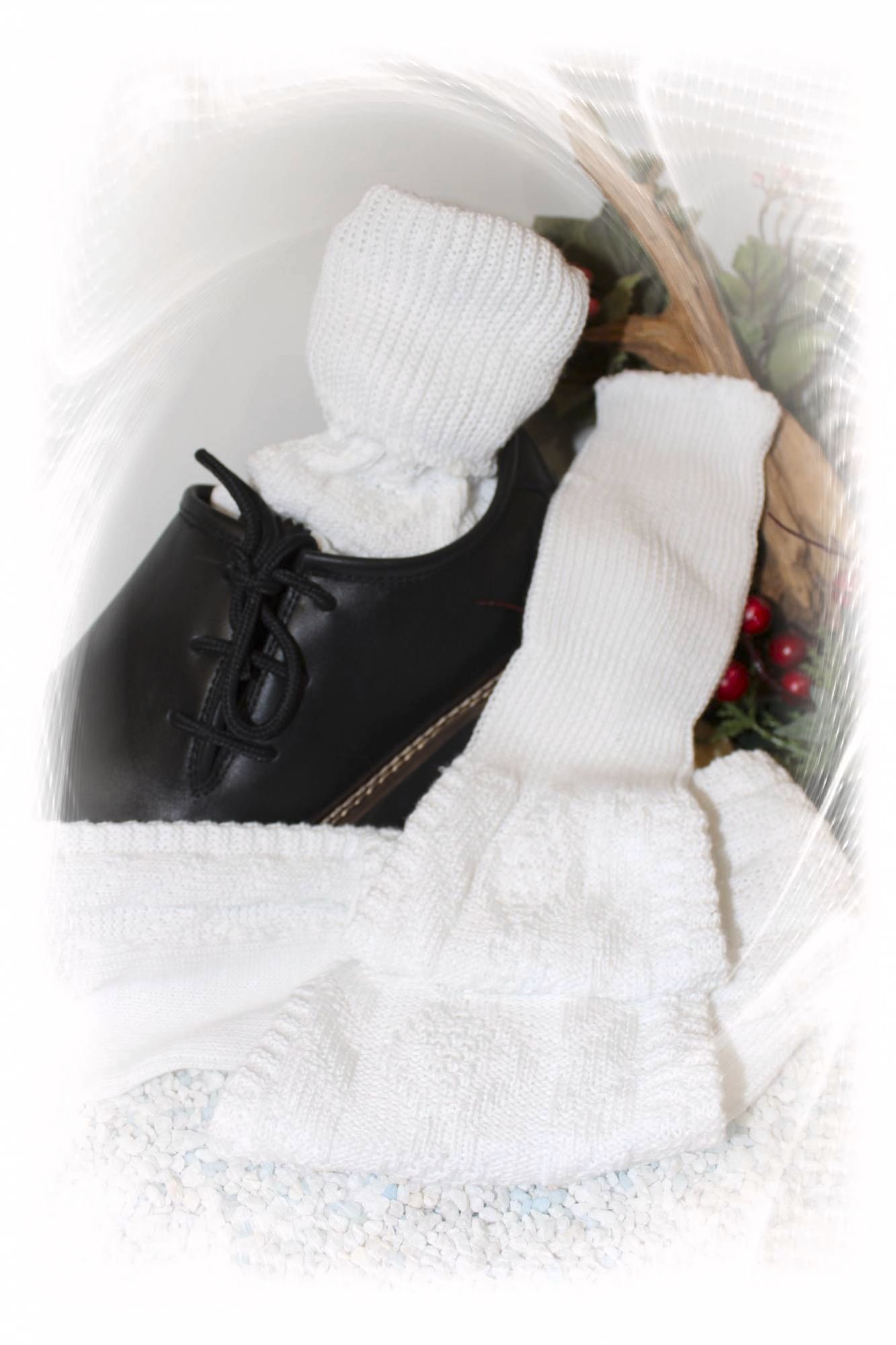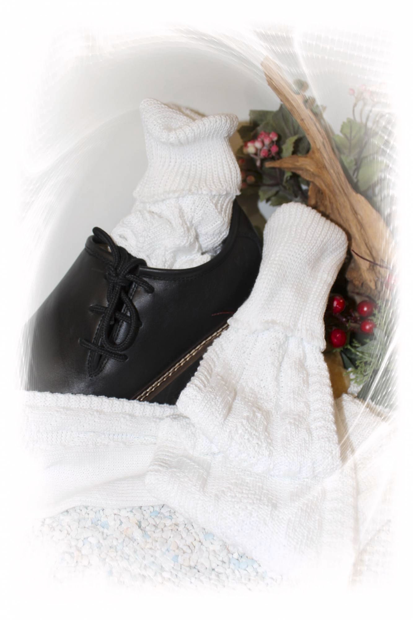 Gestrickter Strumpf aus hochwertiger Baumwolle mit Beimischung in weiß mit dem traditionellen Zopfmuster.