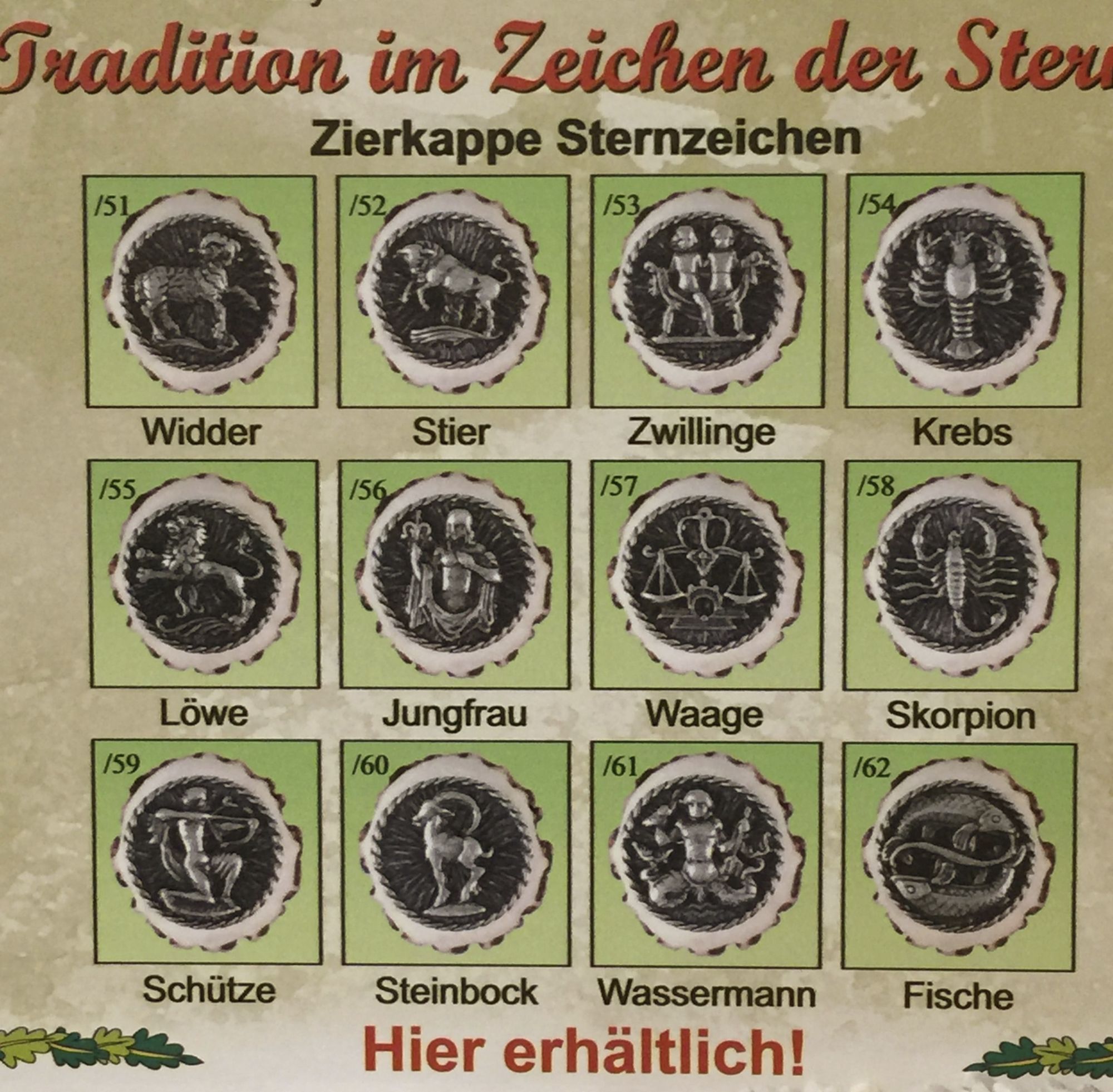 jetzt neu mit Zierkappe Sternzeichen