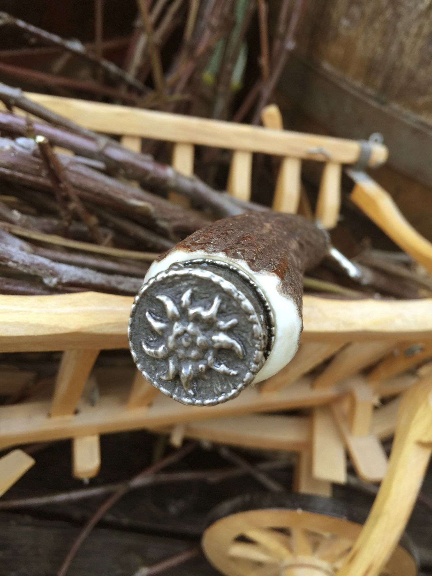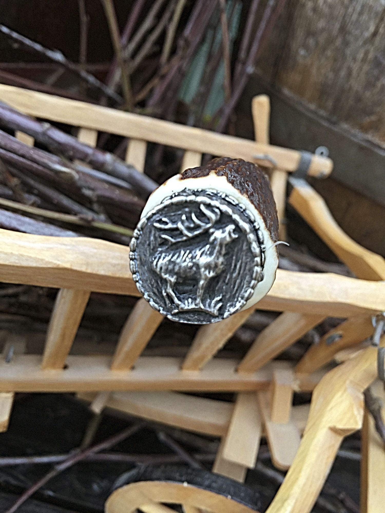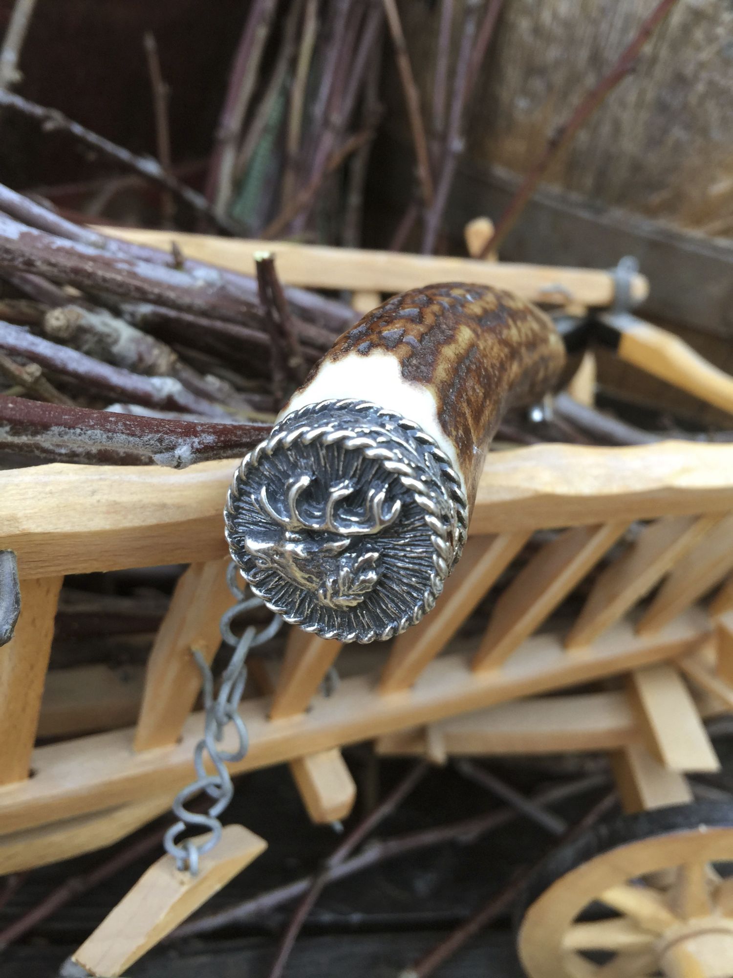 Die Messer bestehen aus echtem Hirschhorn mit  Verschlusskappe  Motiv