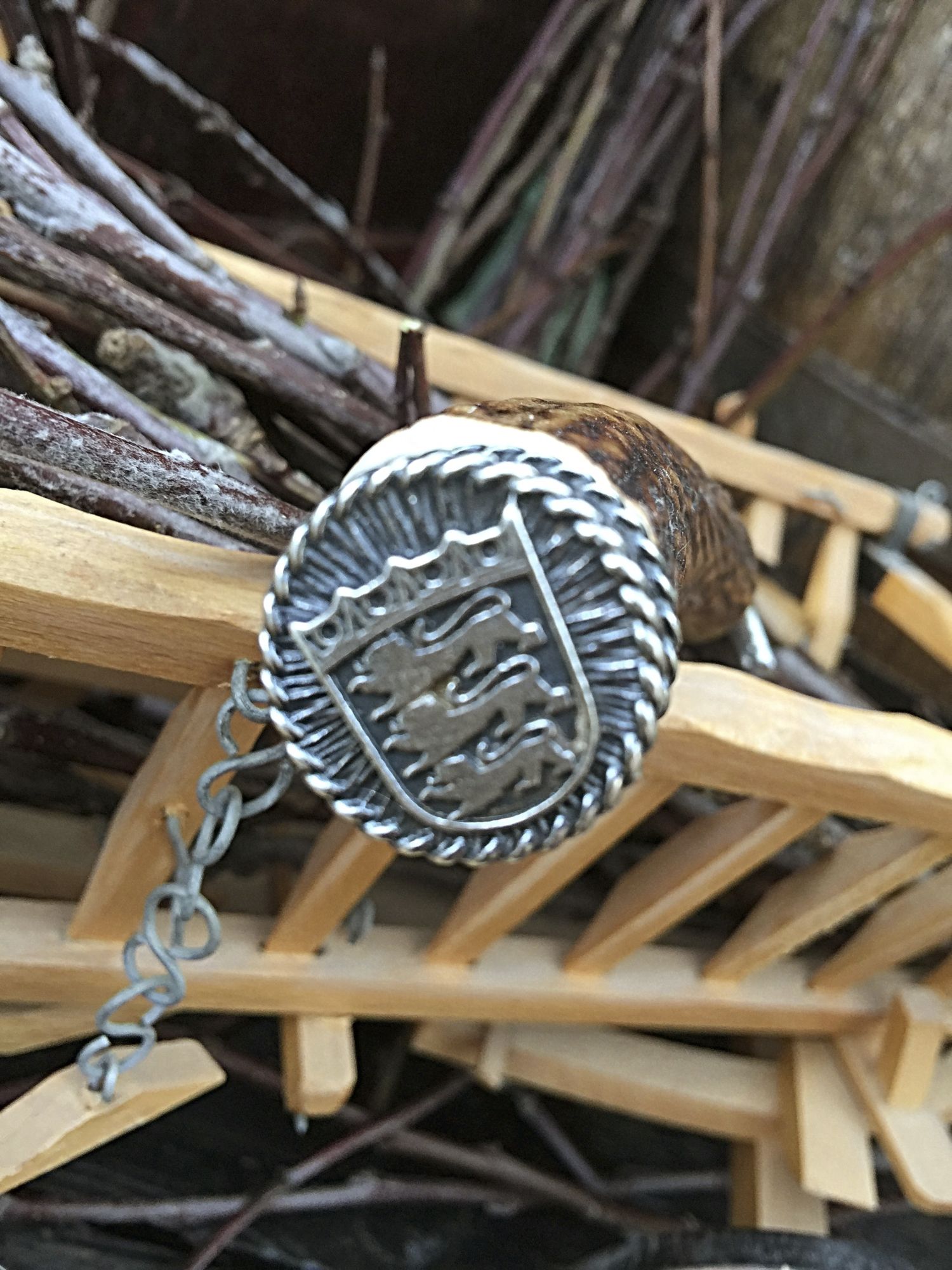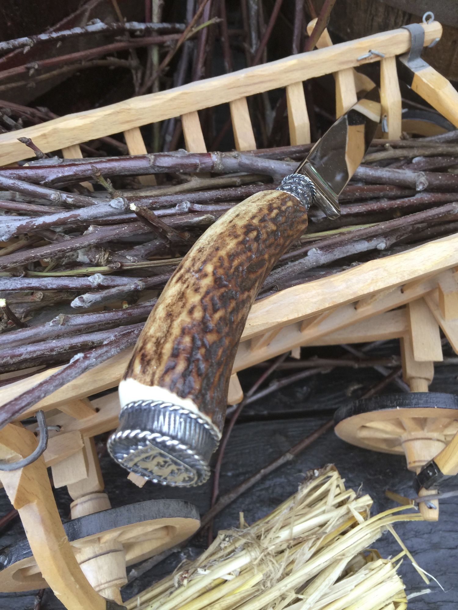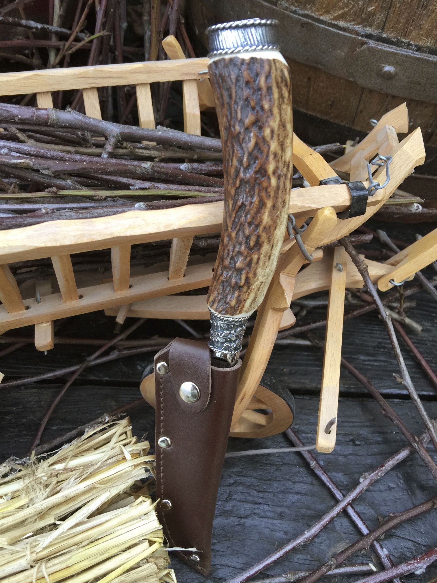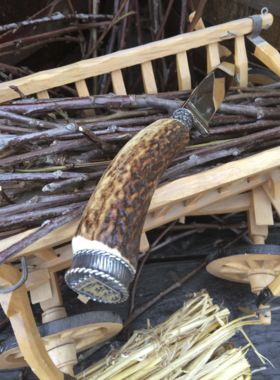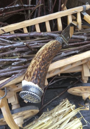 Die Messer bestehen aus echtem Hirschhorn mit Verschlusskappe mit Wappen