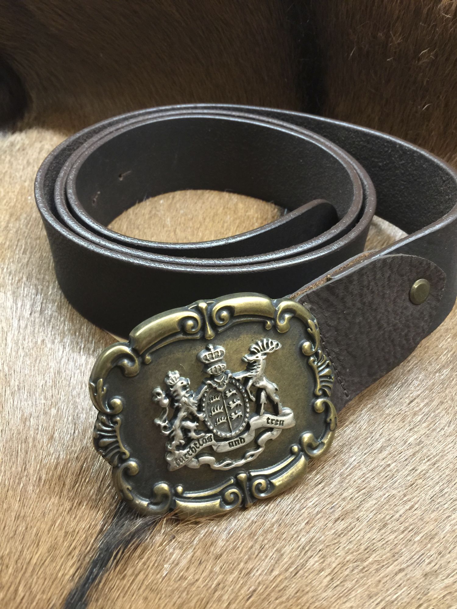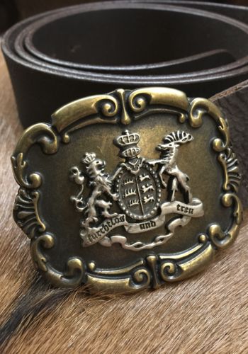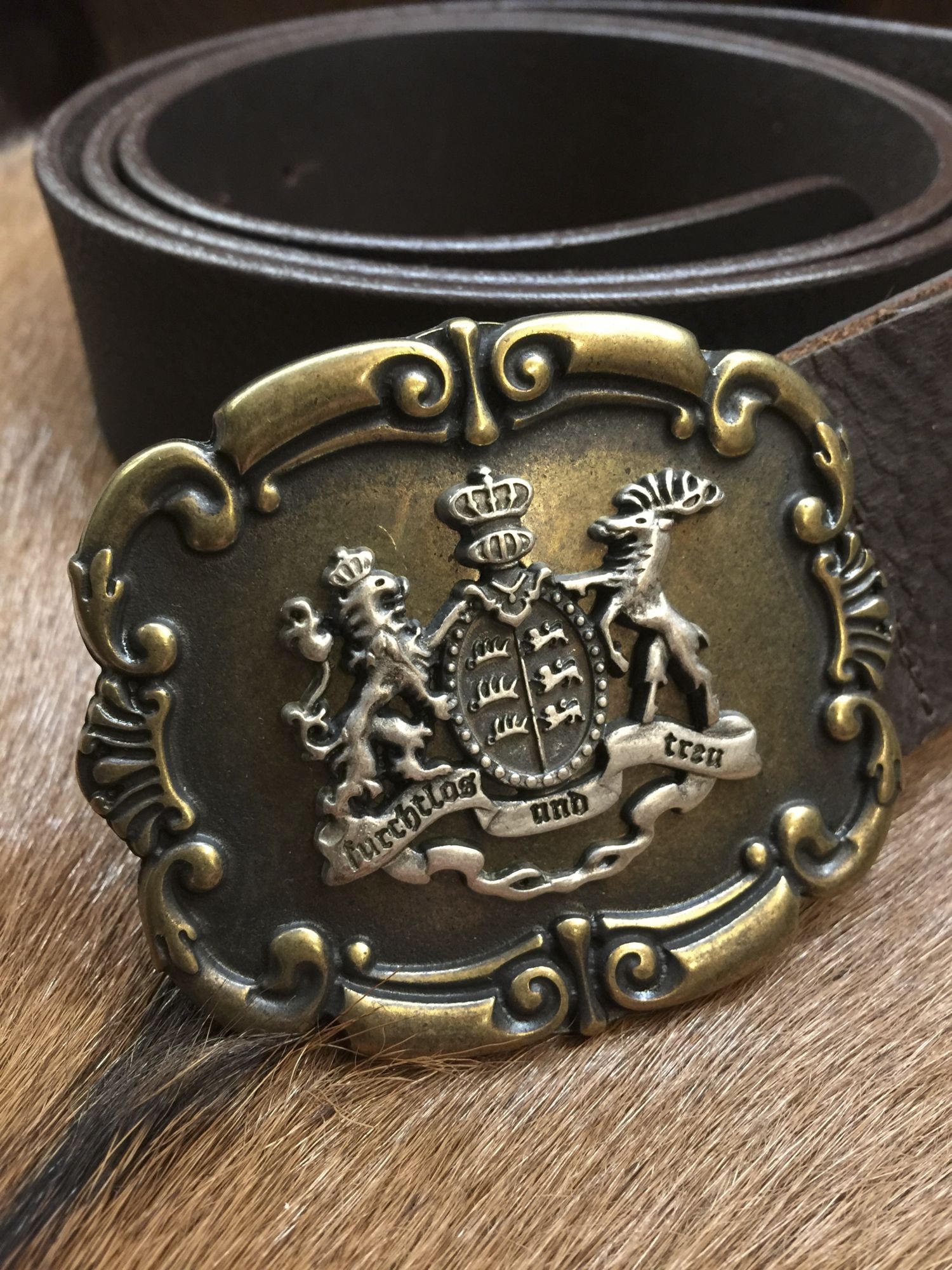 Dazu die fetzige Gürtelschnalle mit dem württembergischen Wappen.