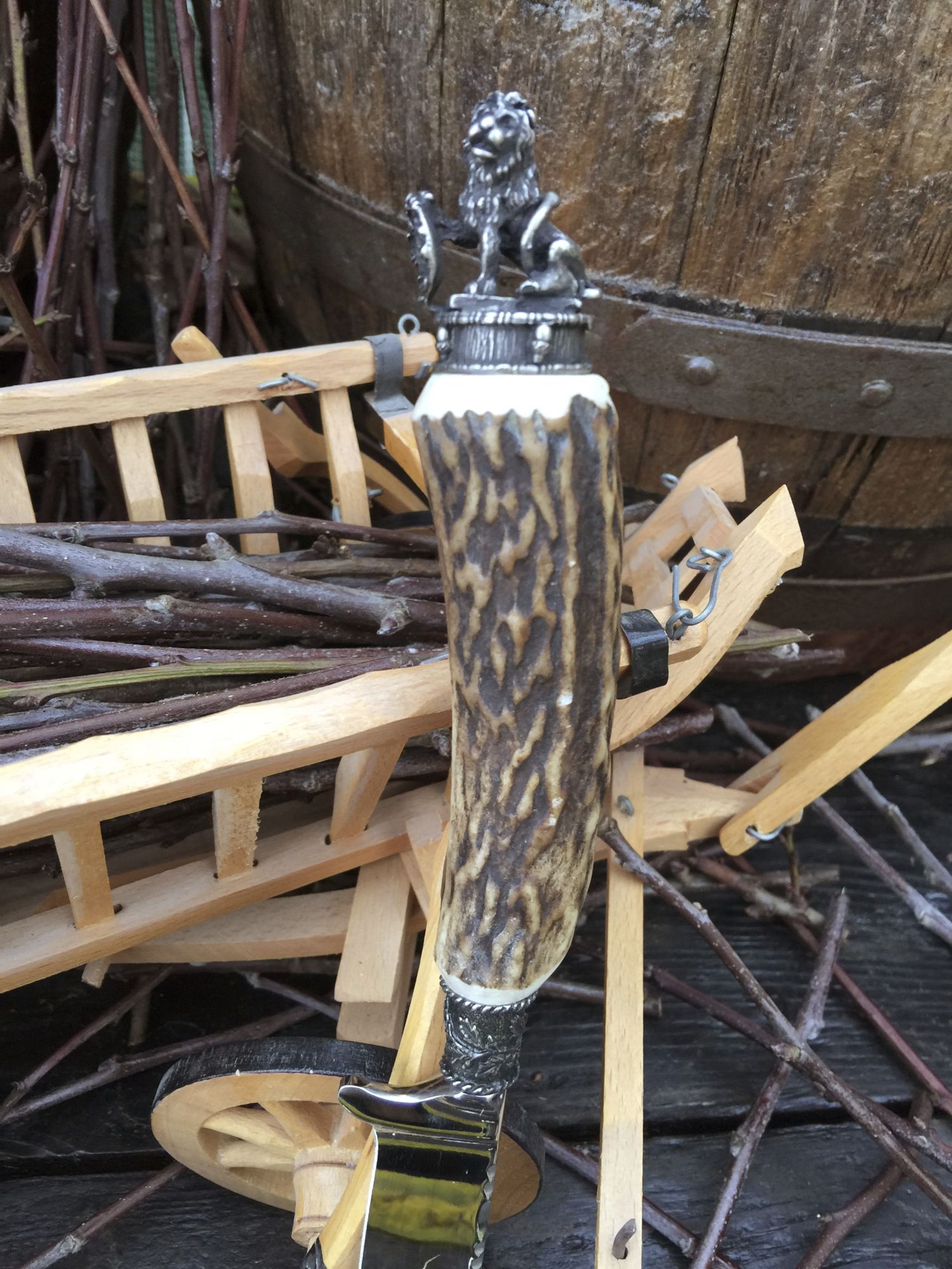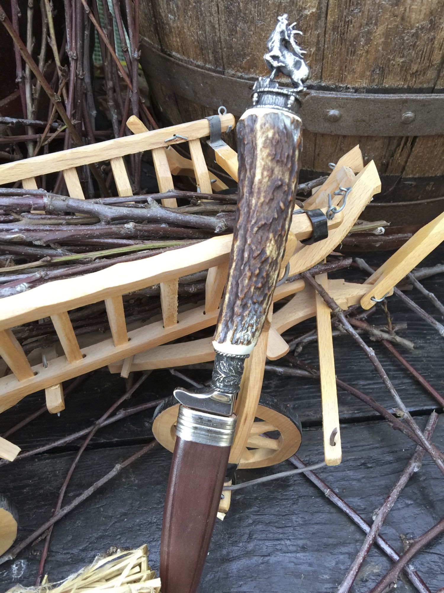 Die Messer bestehen aus echtem Hirschhorn mit Verschlusskappe Motiv