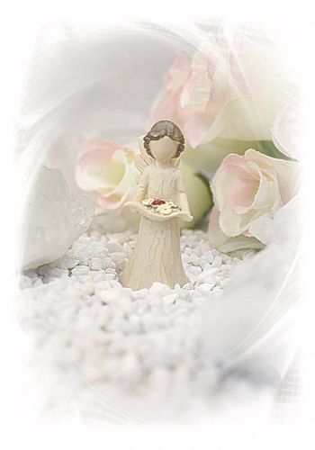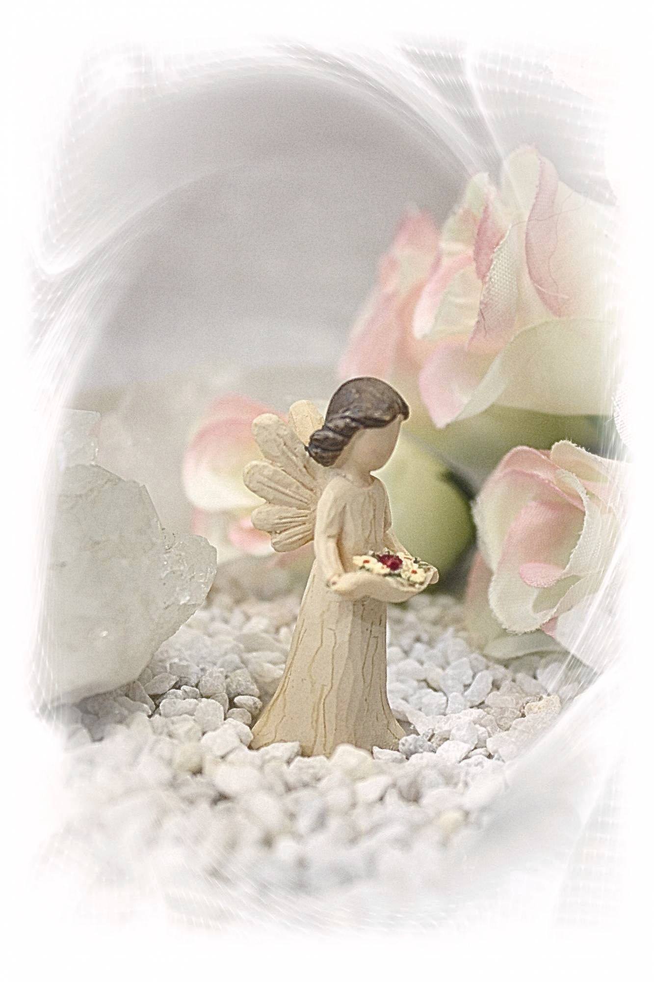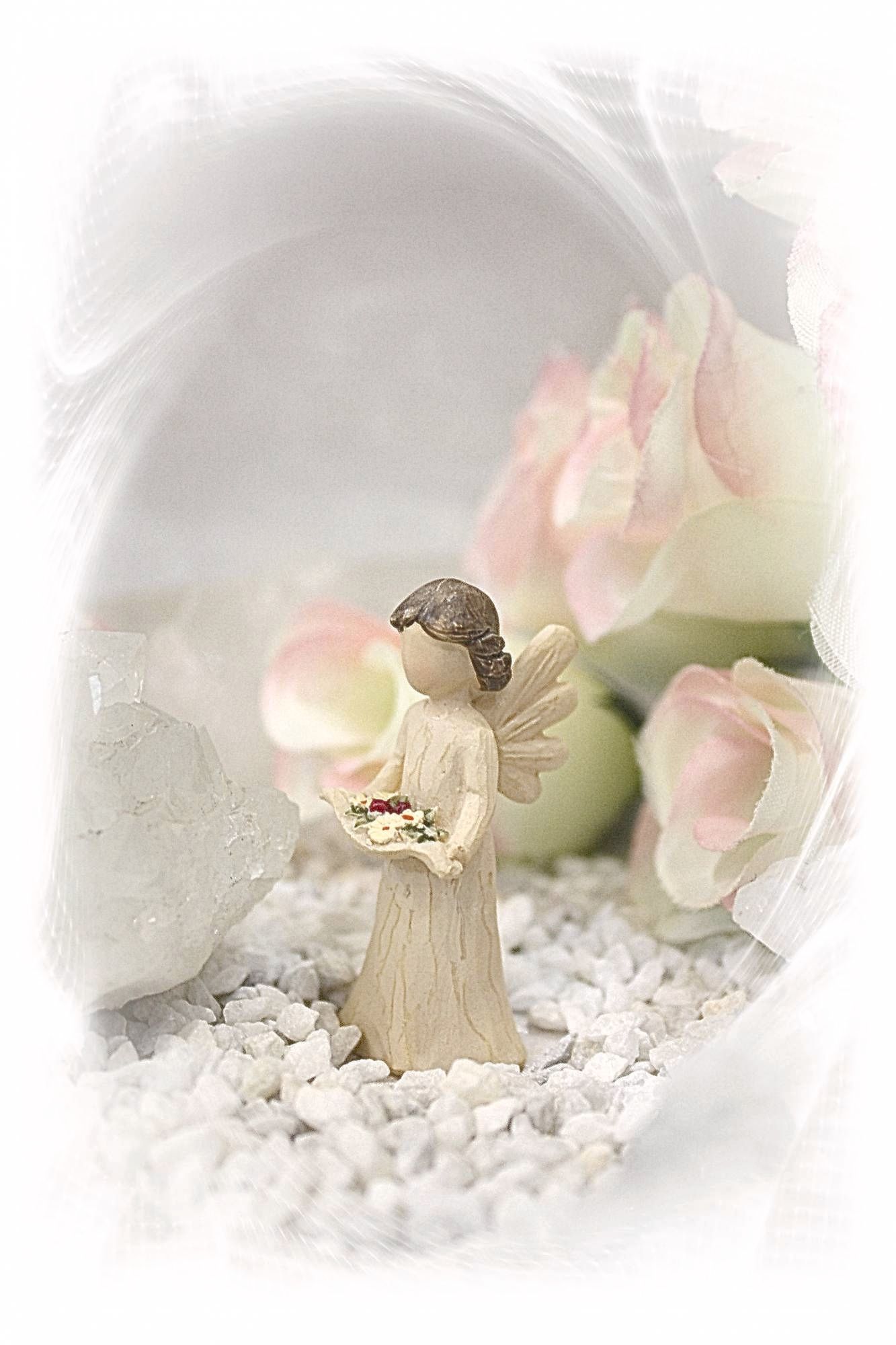 Hier zeigen wir Ihnen einen herrlichen handgefertigten Engel mit Blumenstrauß
