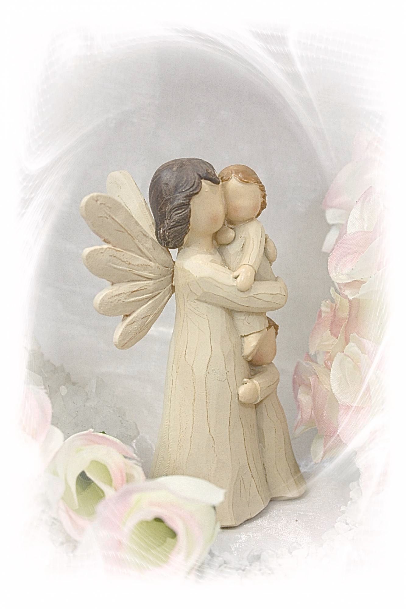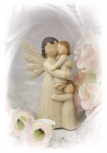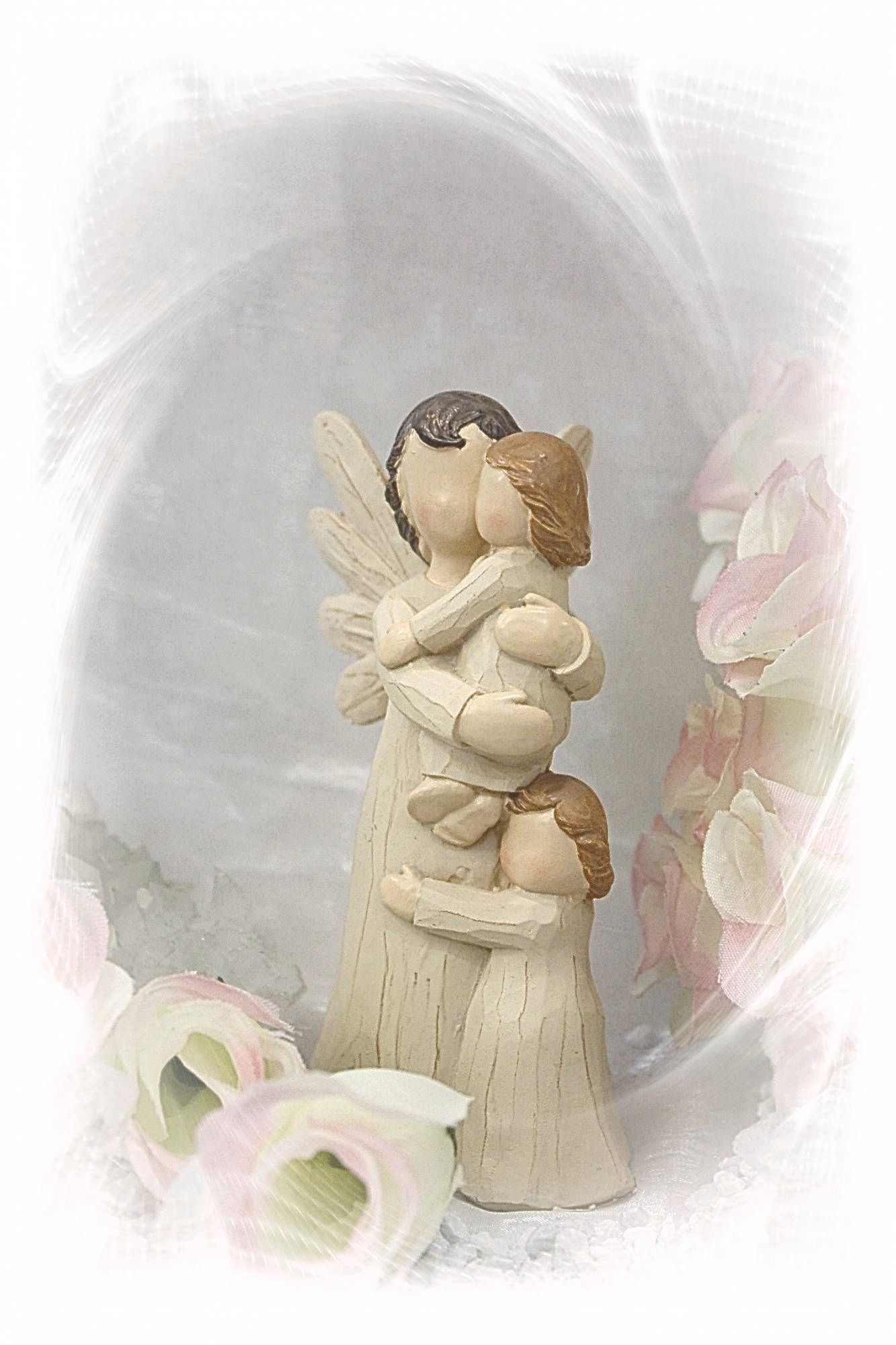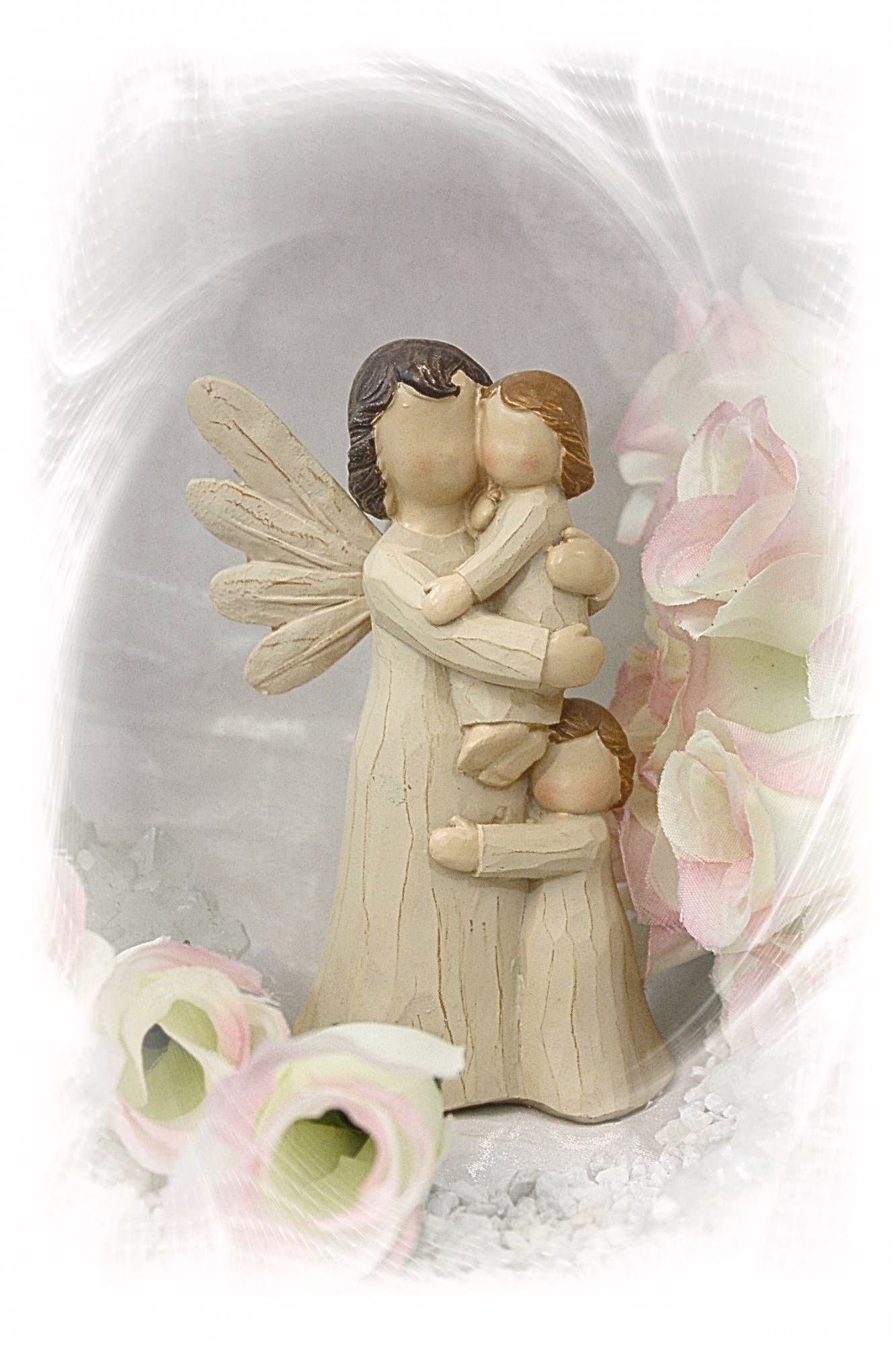 Hier zeigen wir Ihnen einen herrlichen handgefertigten Engel mit zwei Kindern