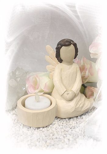 Hier zeigen wir Ihnen einen herrlichen handgefertigten Engel beetend mit Teelicht
