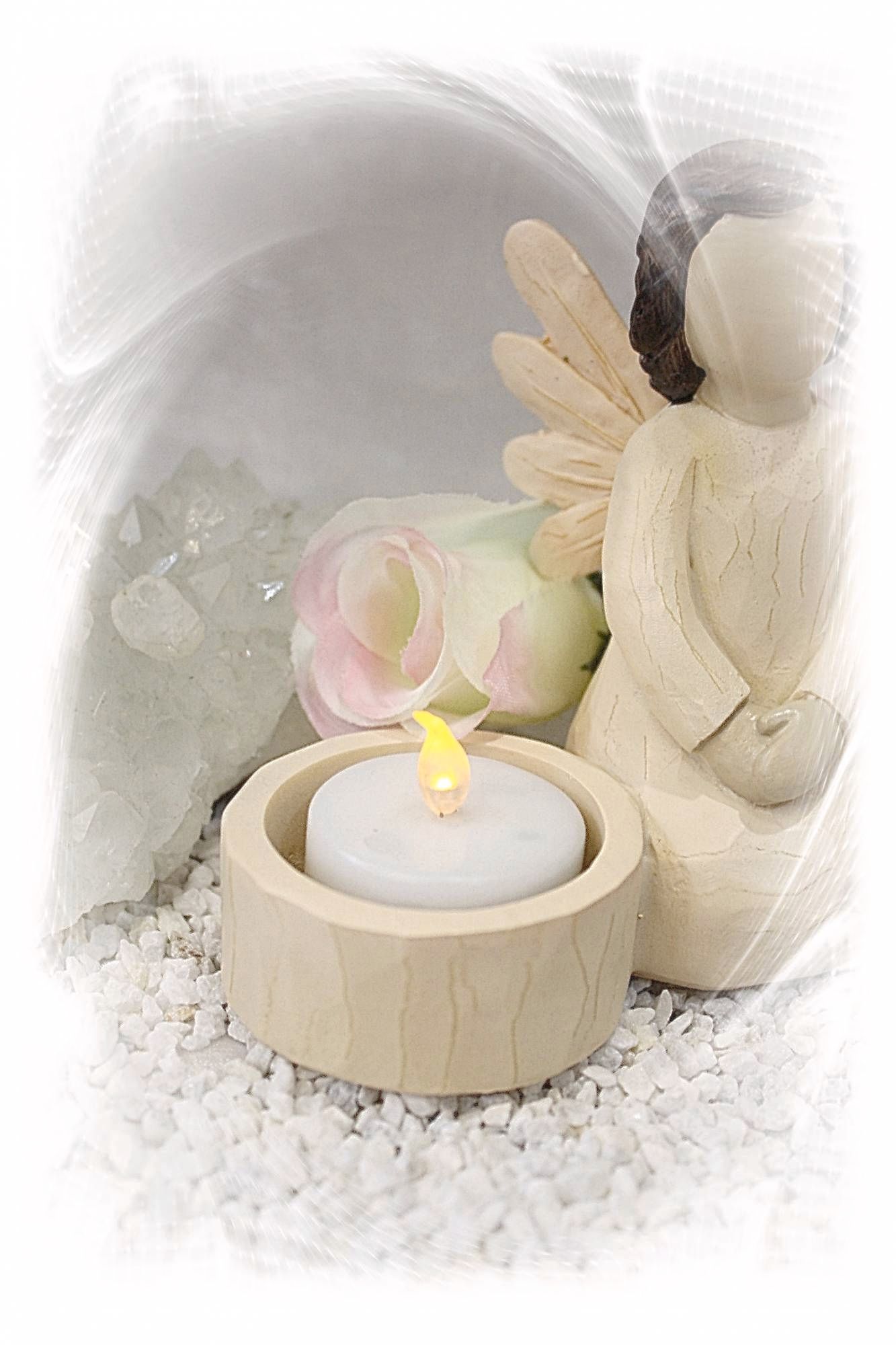 Angelino Schutzengel beetend mit elektrischem Teelicht