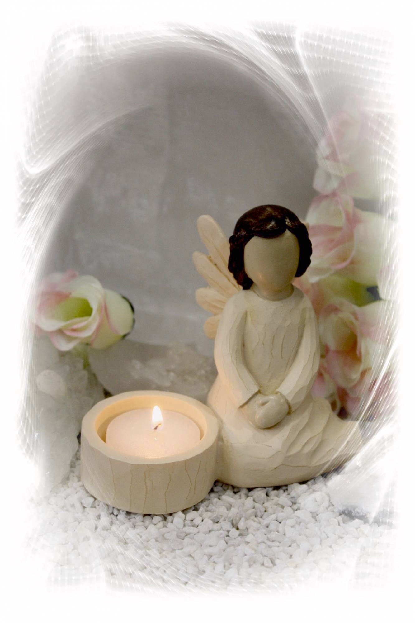Hier zeigen wir Ihnen einen herrlichen handgefertigten Engel beetend mit Teelicht