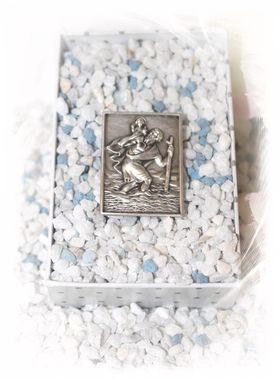 Christophorus wird in der Ikonographie häufig als Hüne mit Stab dargestellt, der das Jesuskind auf den Schultern über einen Fluss trägt. Er zählt zu den Vierzehn Nothelfern und ist heute besonders bekannt als Schutzheiliger der Autofahrer und Motorradfahrer bzw für Alle die unterwegs sind.