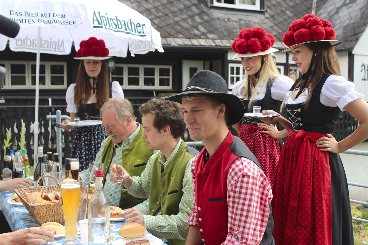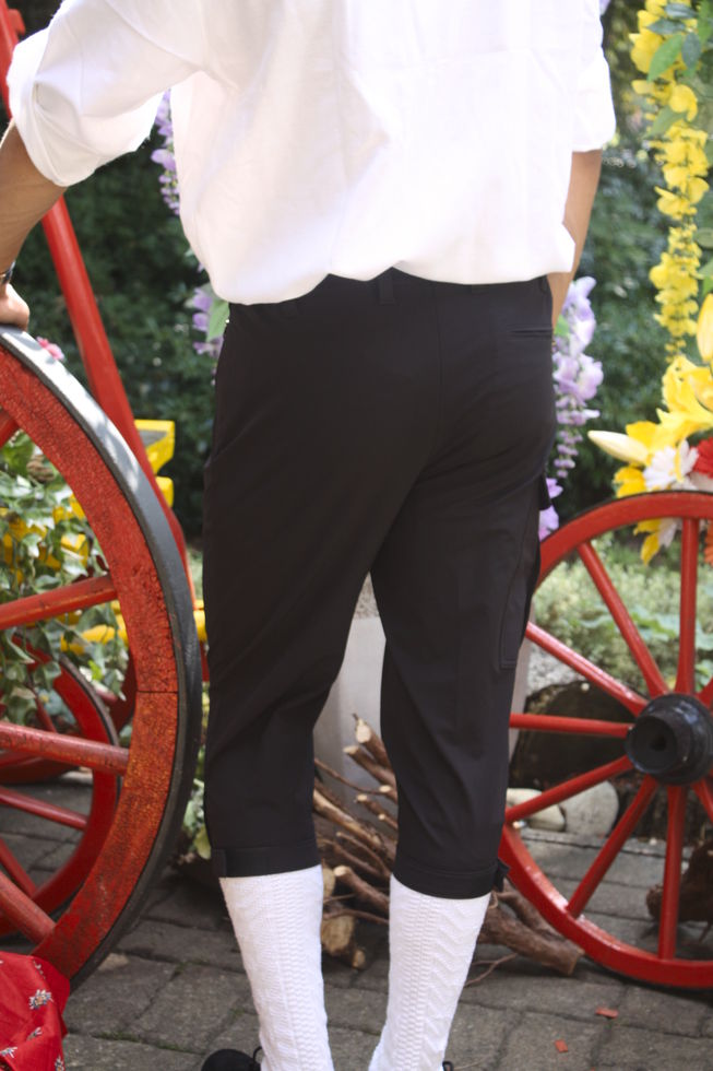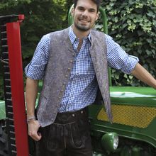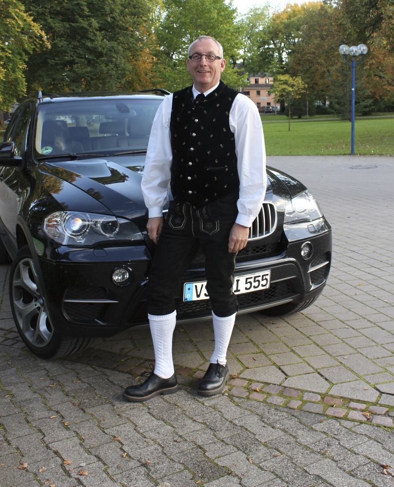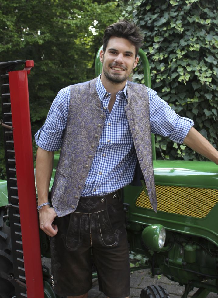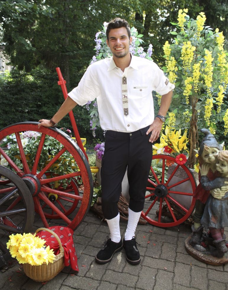 Im Schwarzwald bevorzugt, die schwarze Lederhose, Blümchenweste oder die traditionelle Zopfmusterweste.