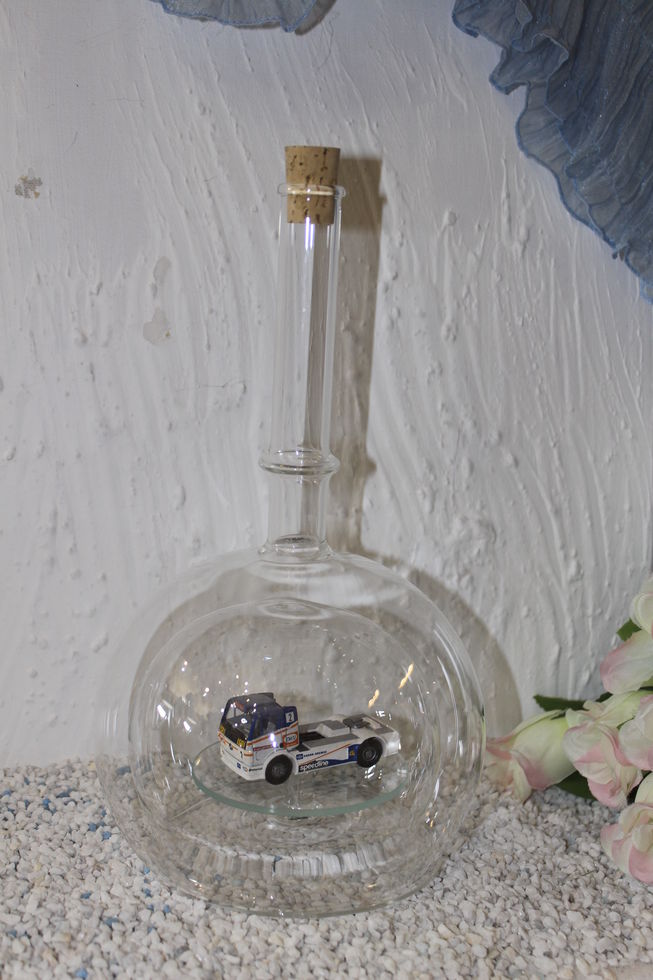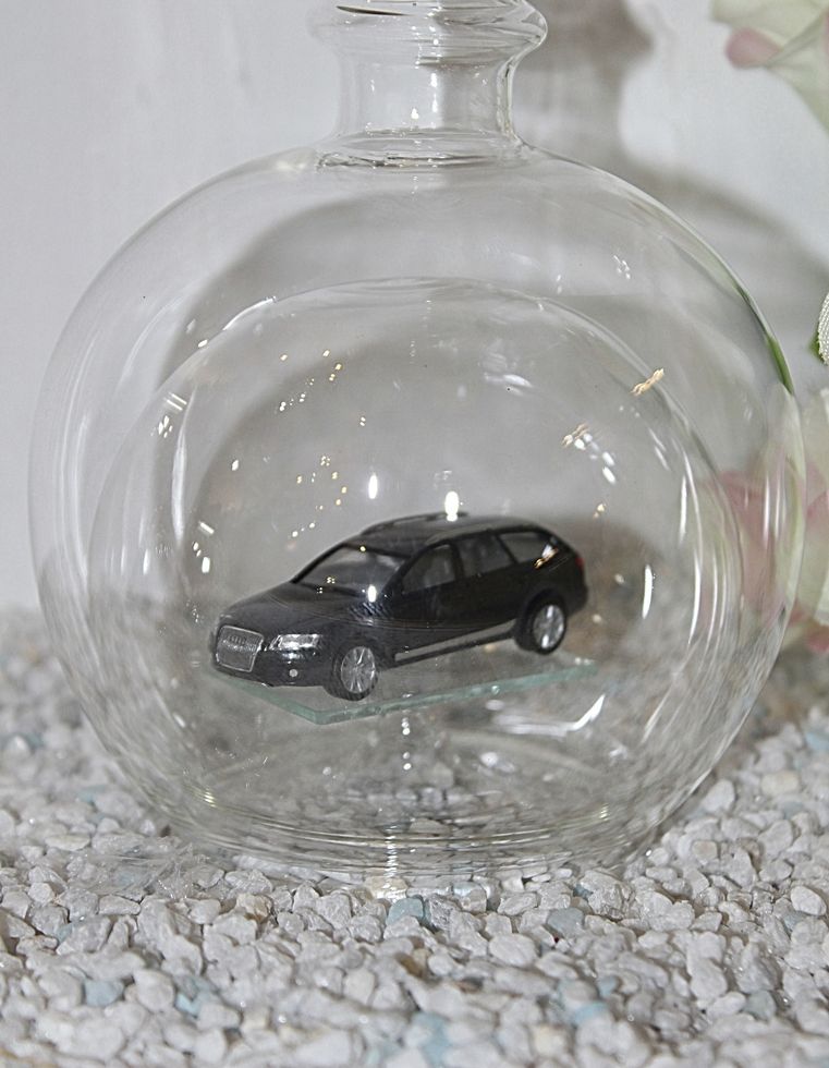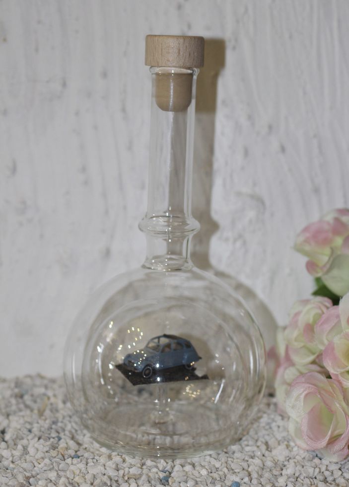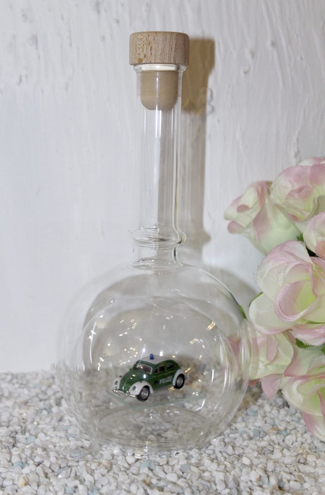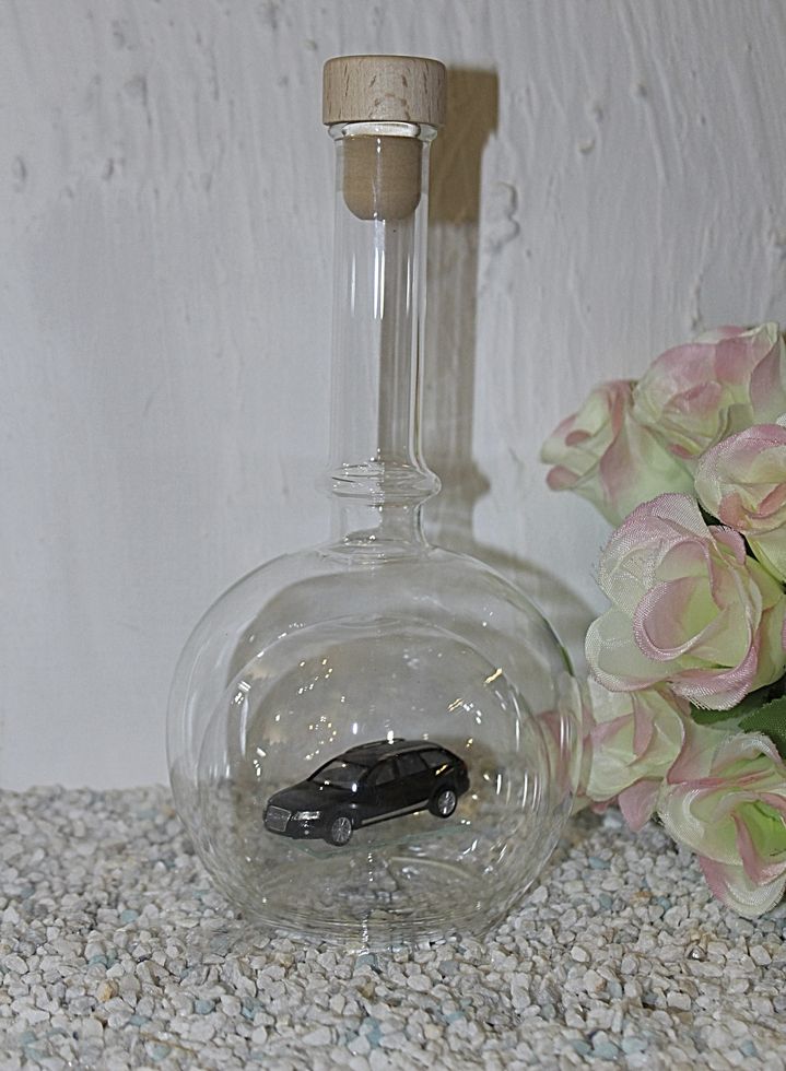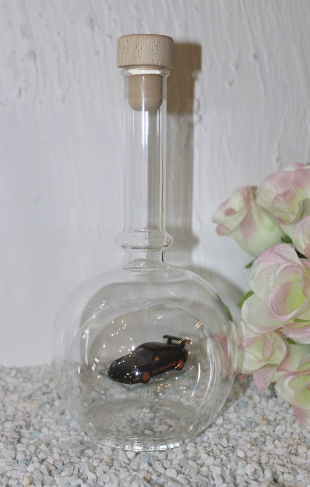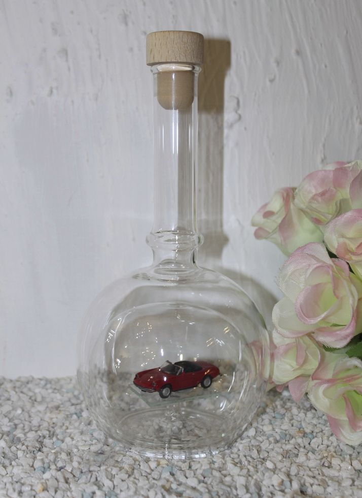 Exclusive Glasflaschen mit Modelfahrzeugen