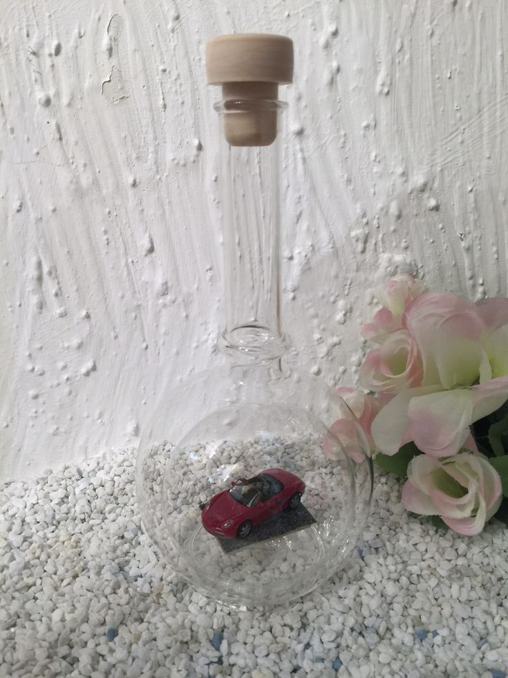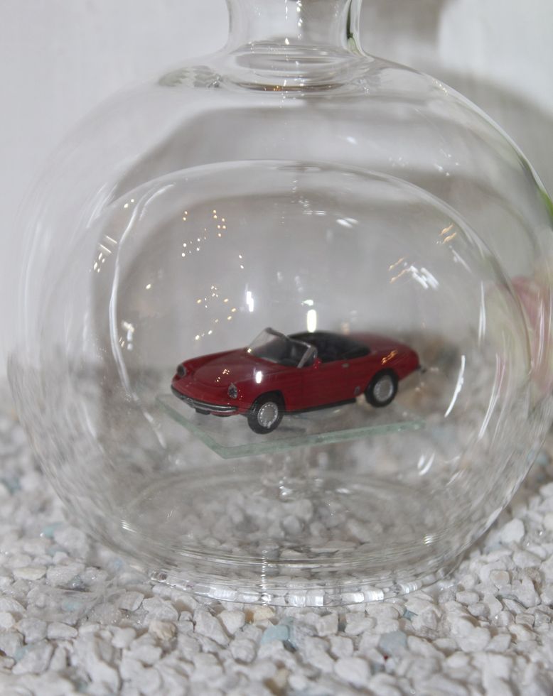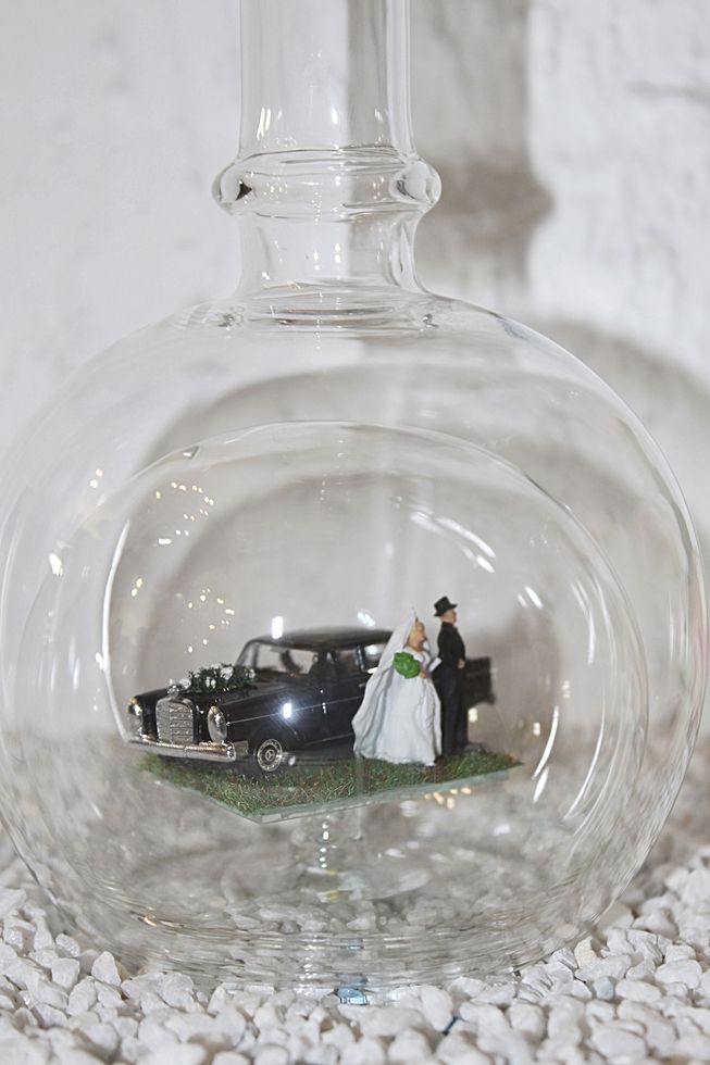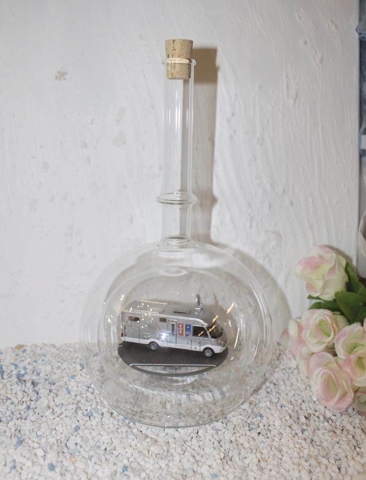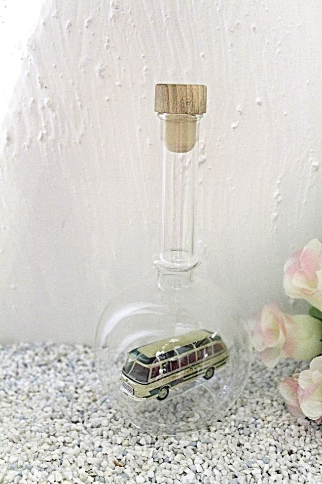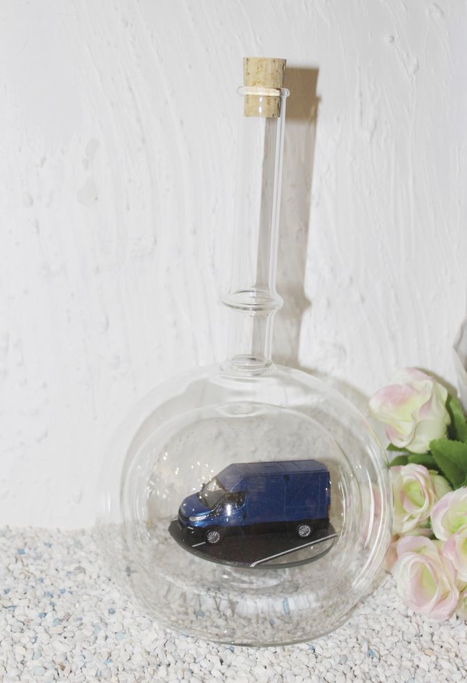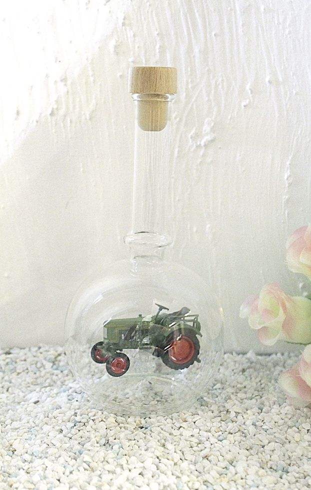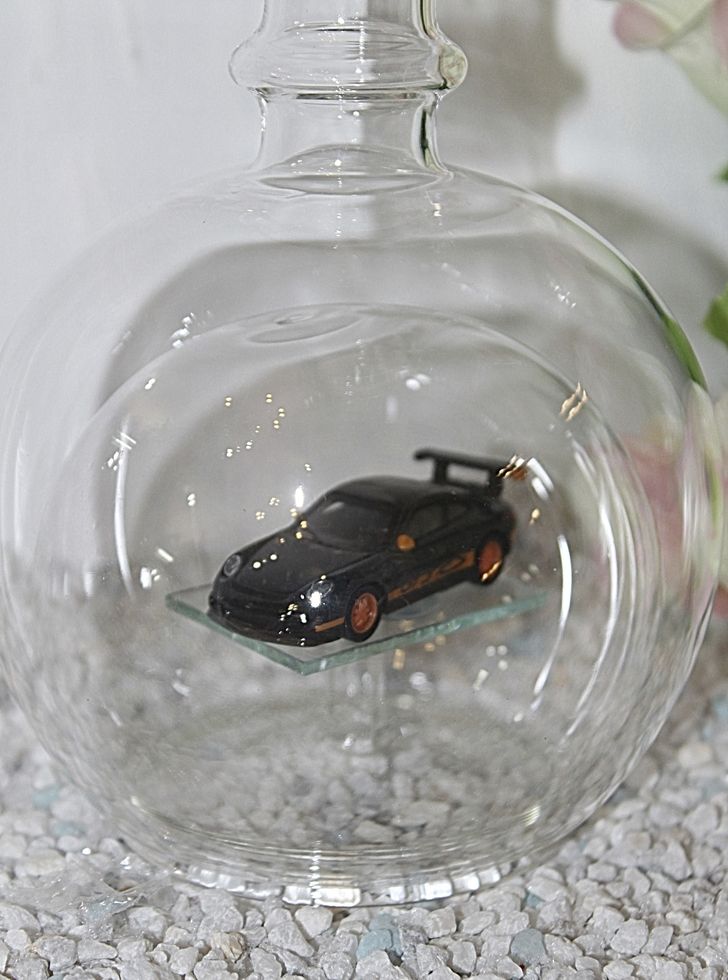 Exclusive Glasflaschen mit Modelfahrzeugen
