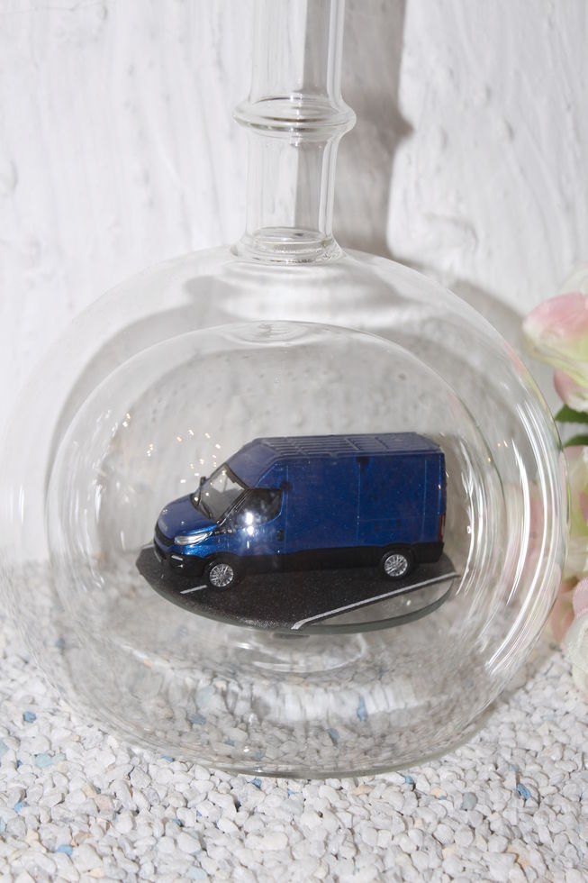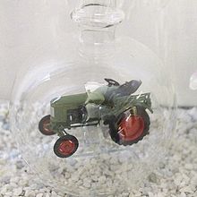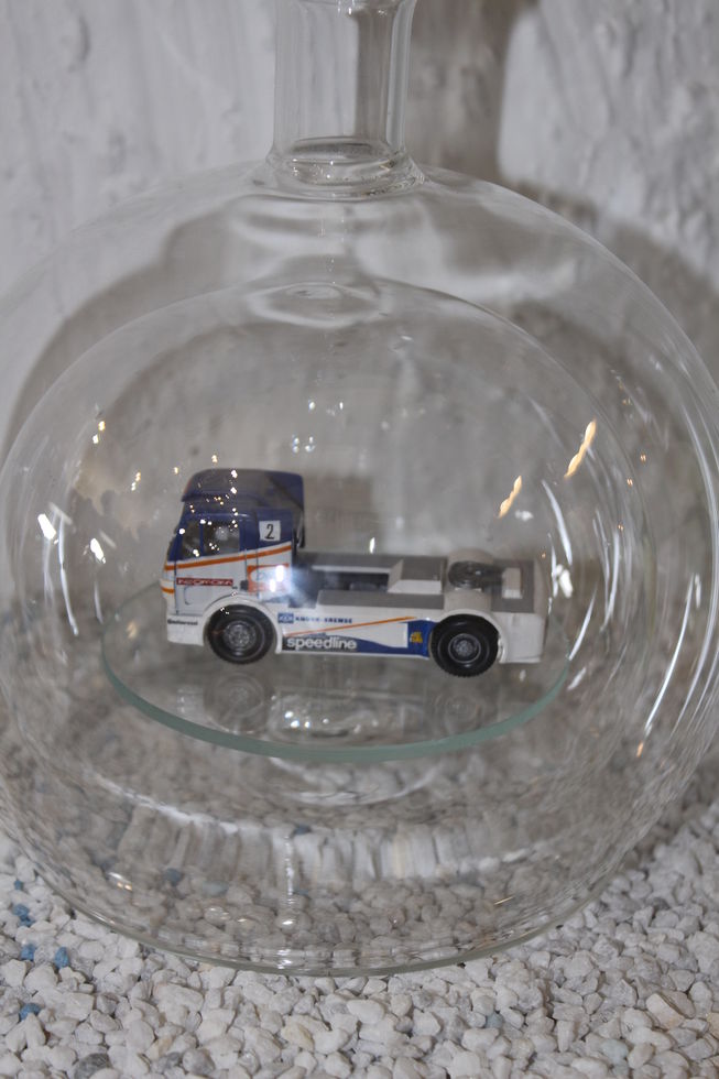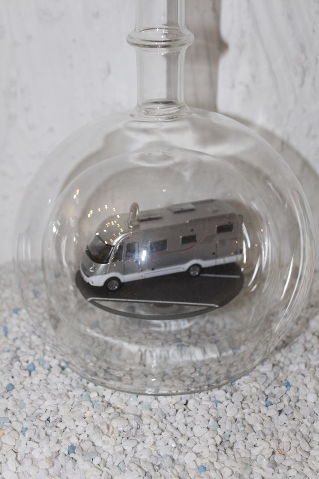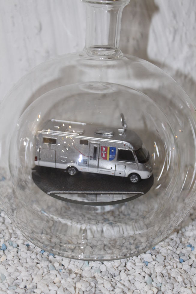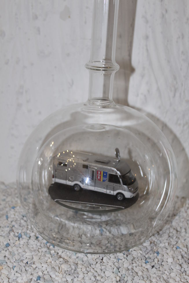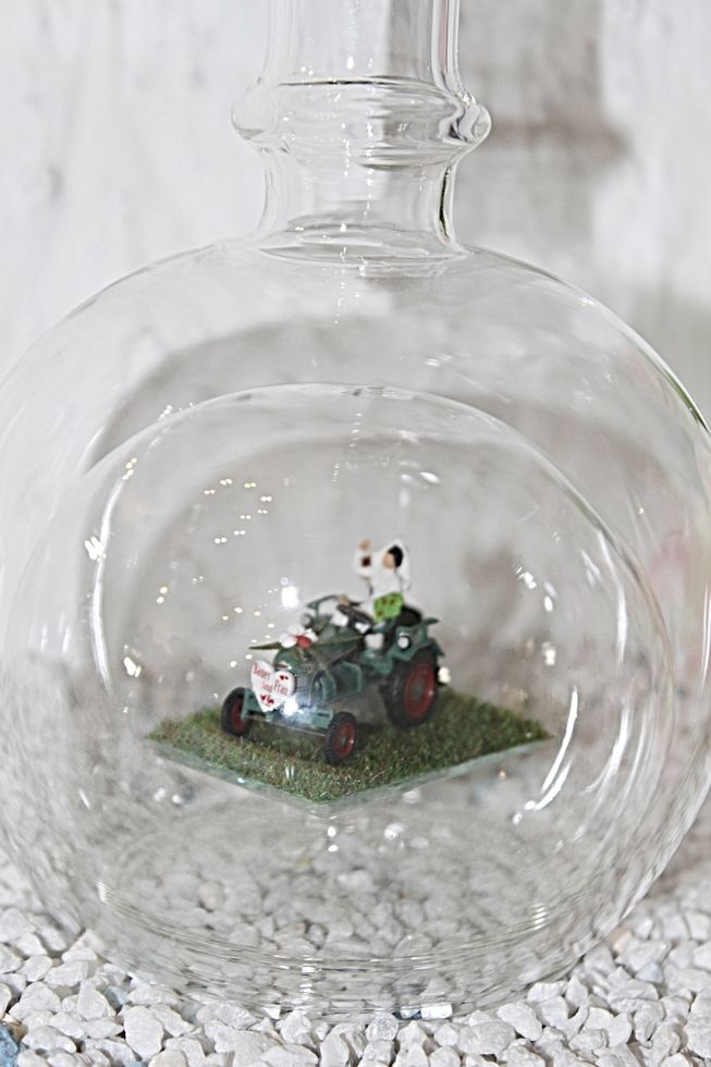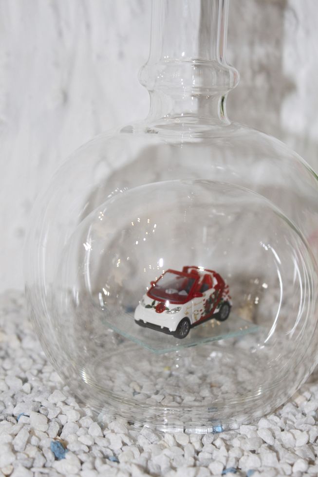Exclusive Glasflaschen mit Modelfahrzeugen