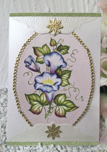 Material: Karton, Papier, Perlen, Schmucksteinchen