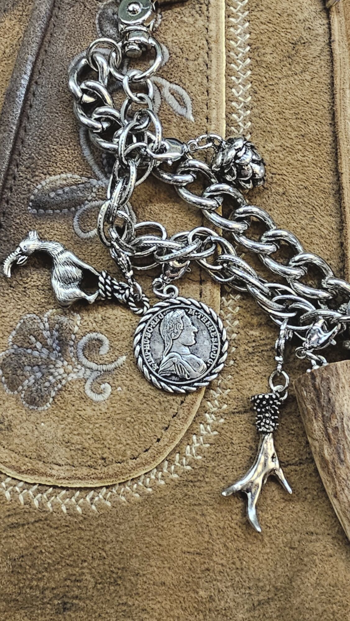 Gamsbart, Rehkopf, Bierhumpen, Lilie, Geweih, Münze, Gamsbock, Eichel