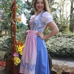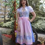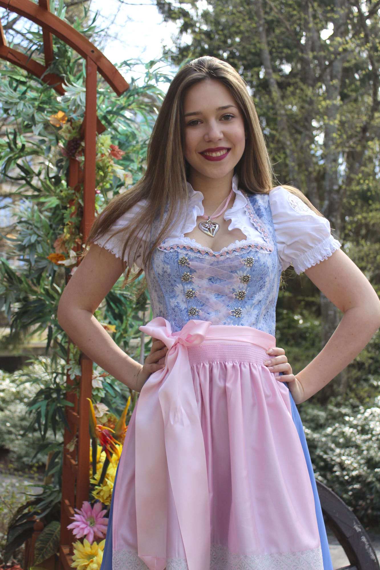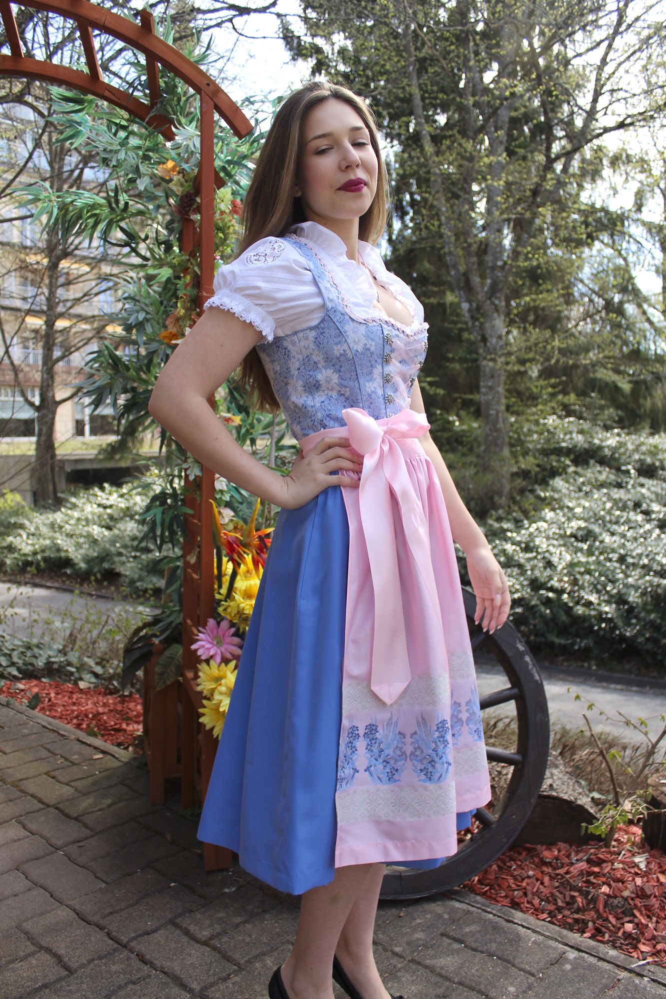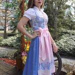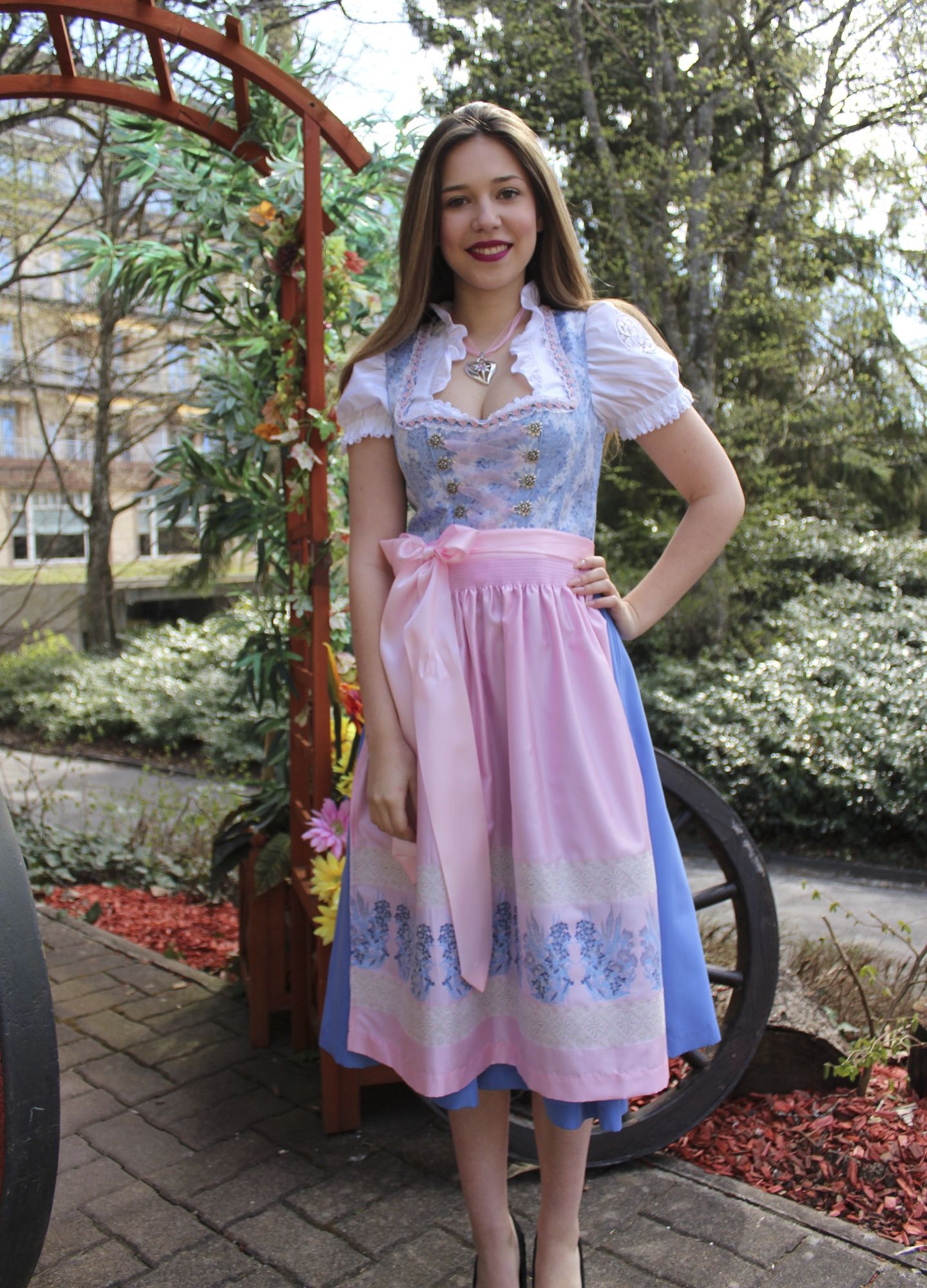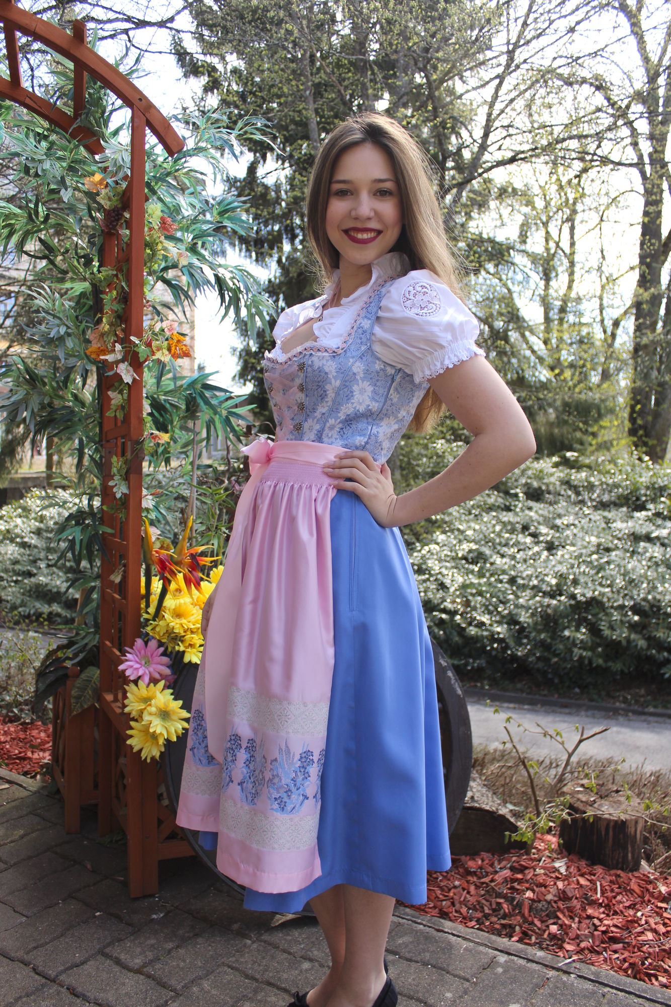 Hier zeigen wir Ihnen ein herrliches Dirndl in den zarten Pastellfarben rosa und hellblau.