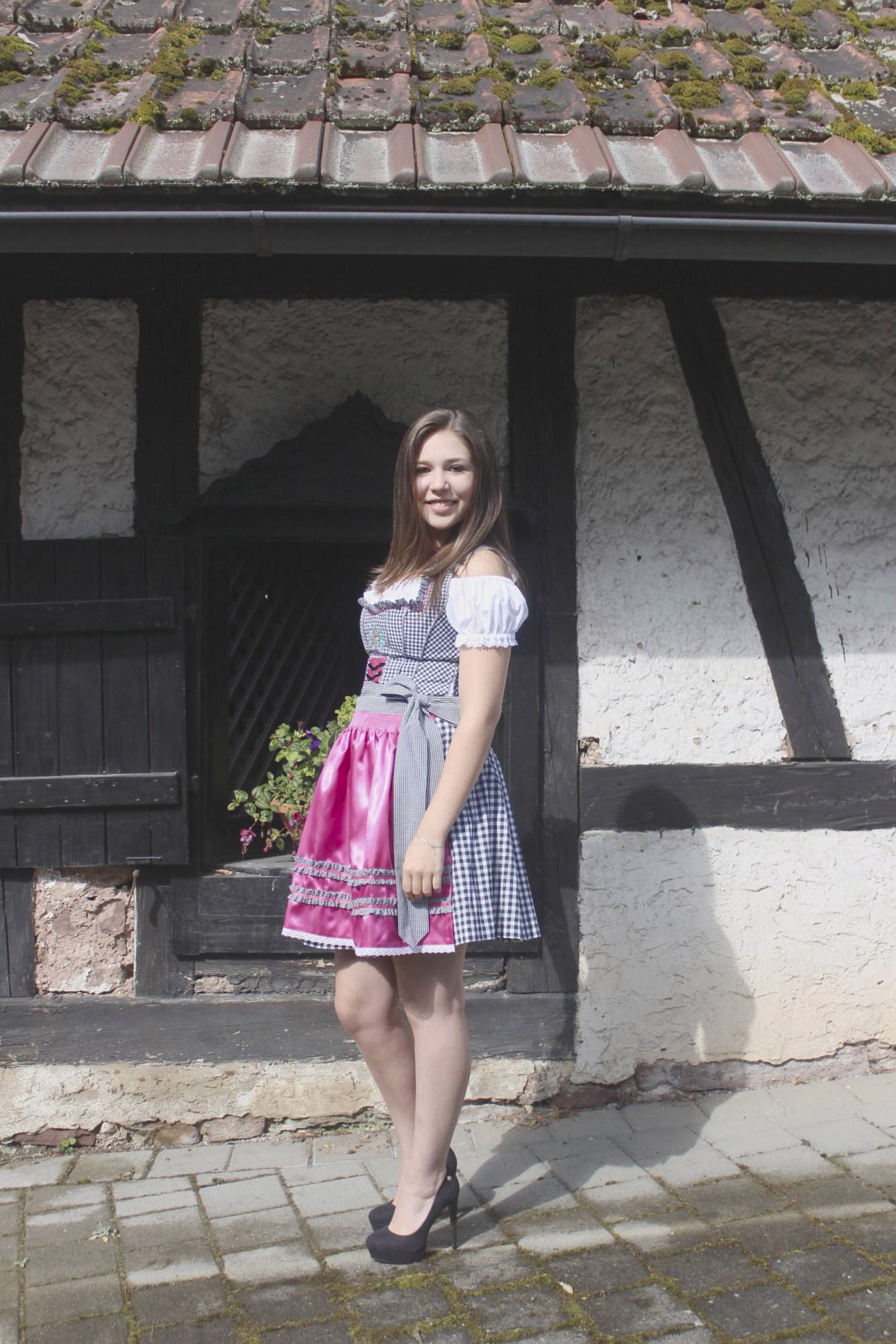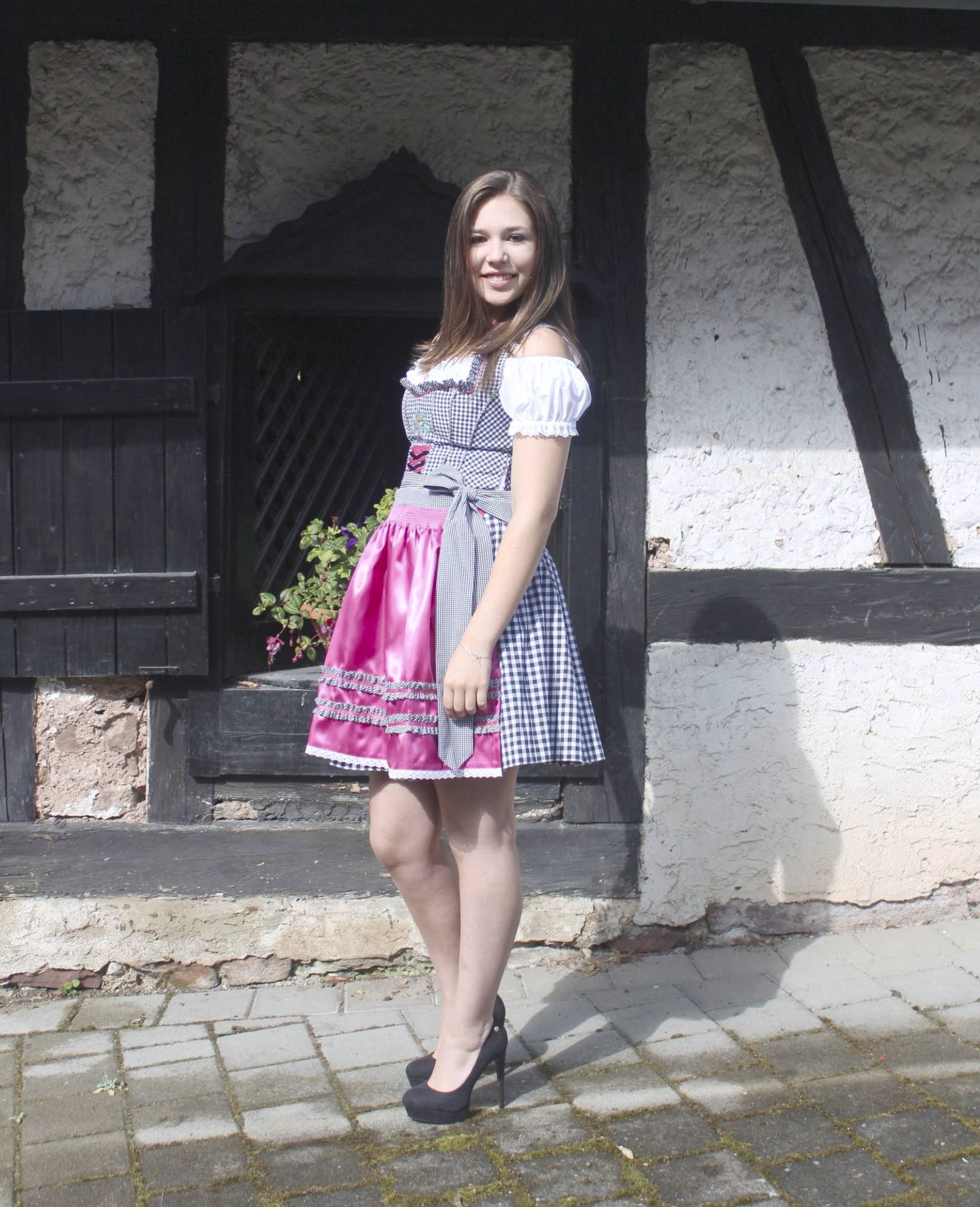 hier zeigen wir Ihnen ein fetziges Dirndl in den tollen Farben schwarz,weiß und pink.