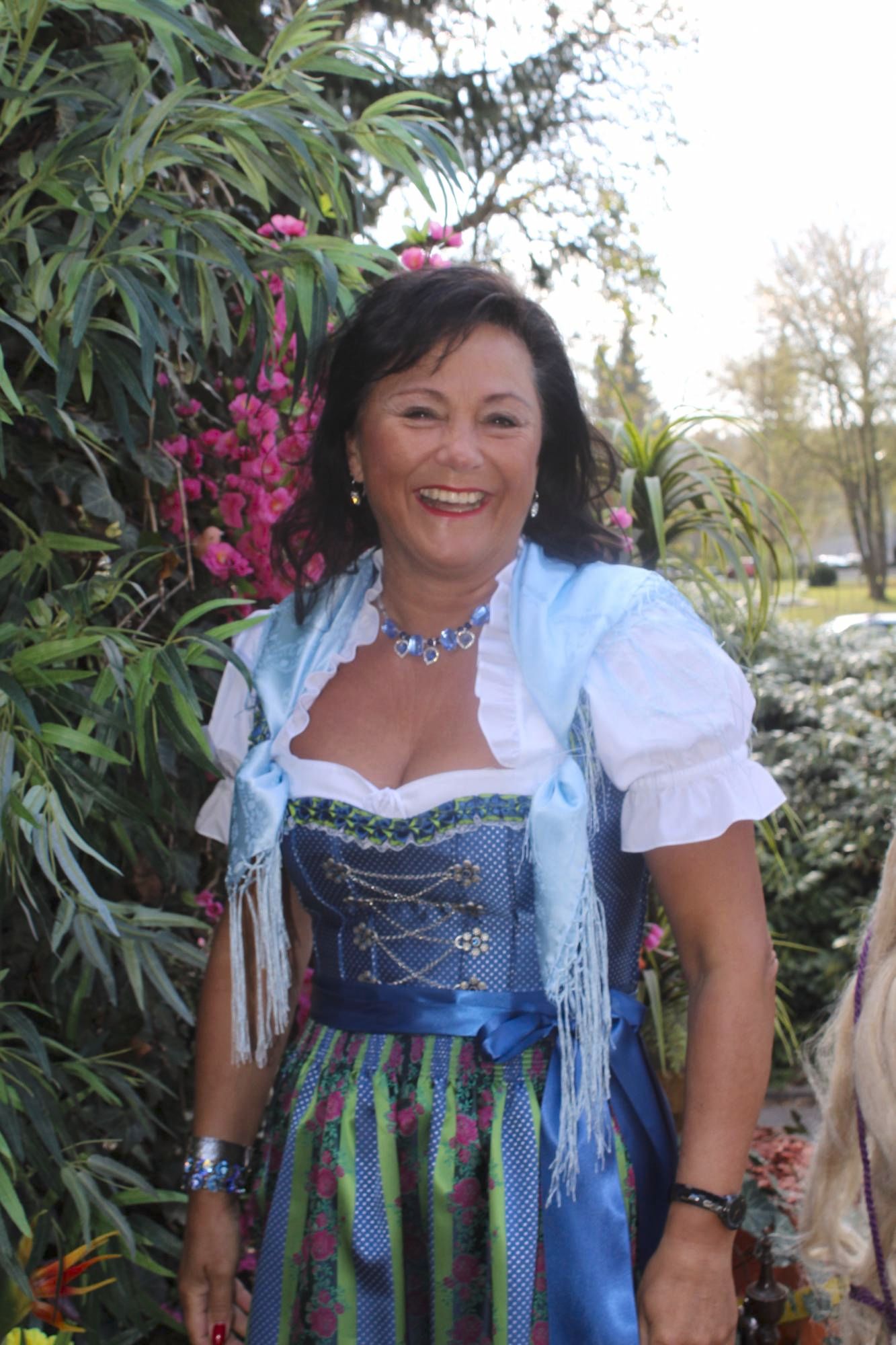 Das Dirndl ist in blau gehalten.