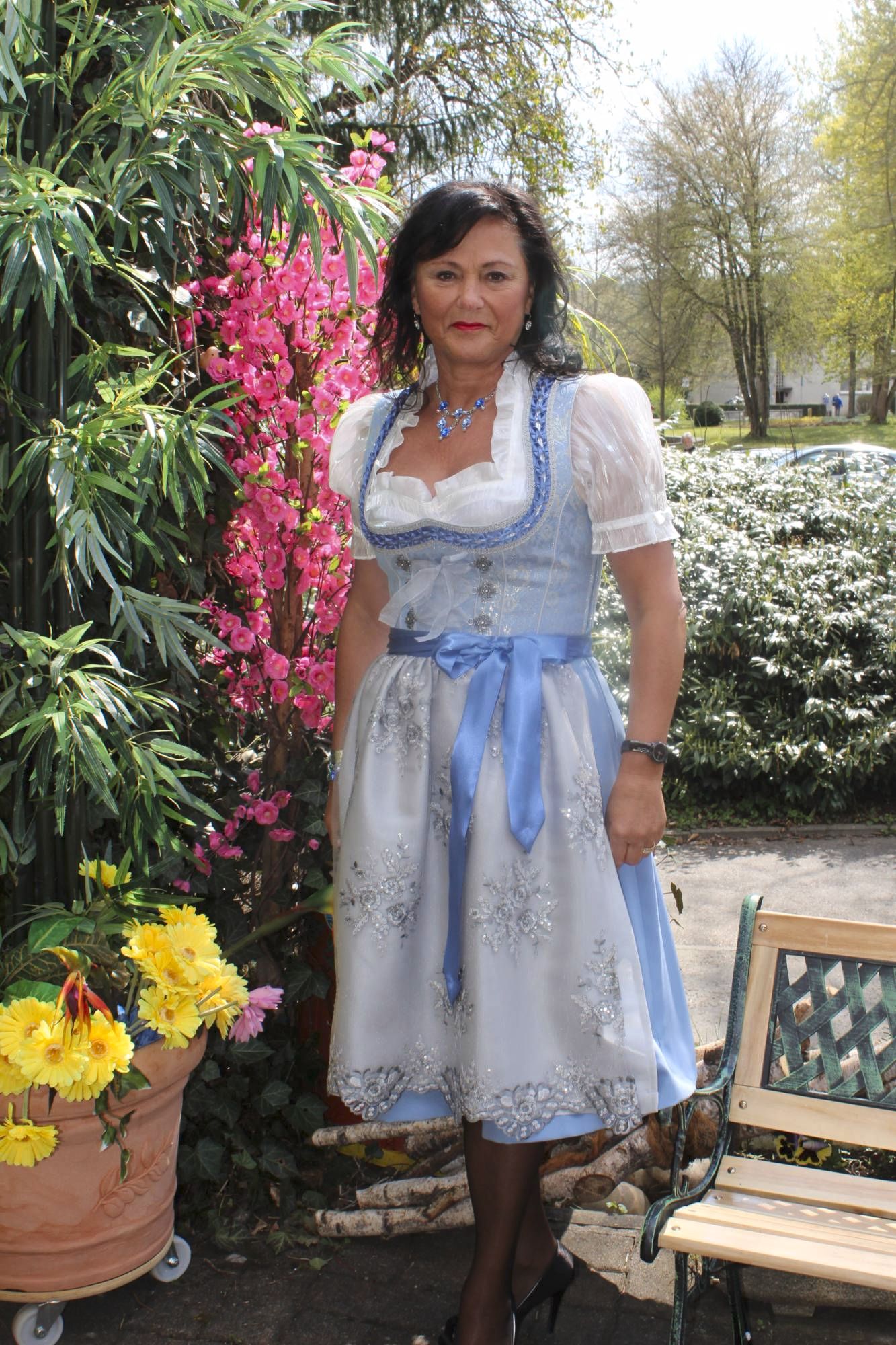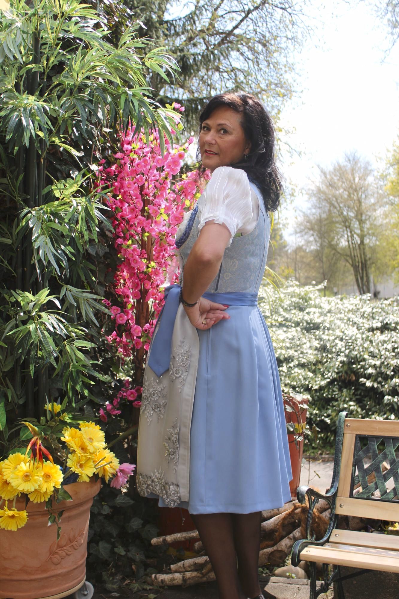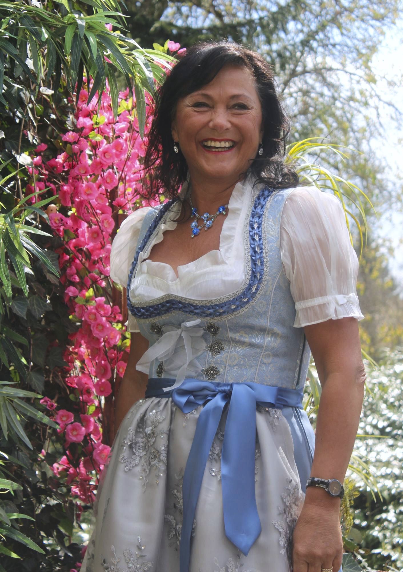 Hier zeigen wir Ihnen ein herrliches edles und fetziges Dirndl zugleich, in den Edelfarben blau, silbergrau und silber.