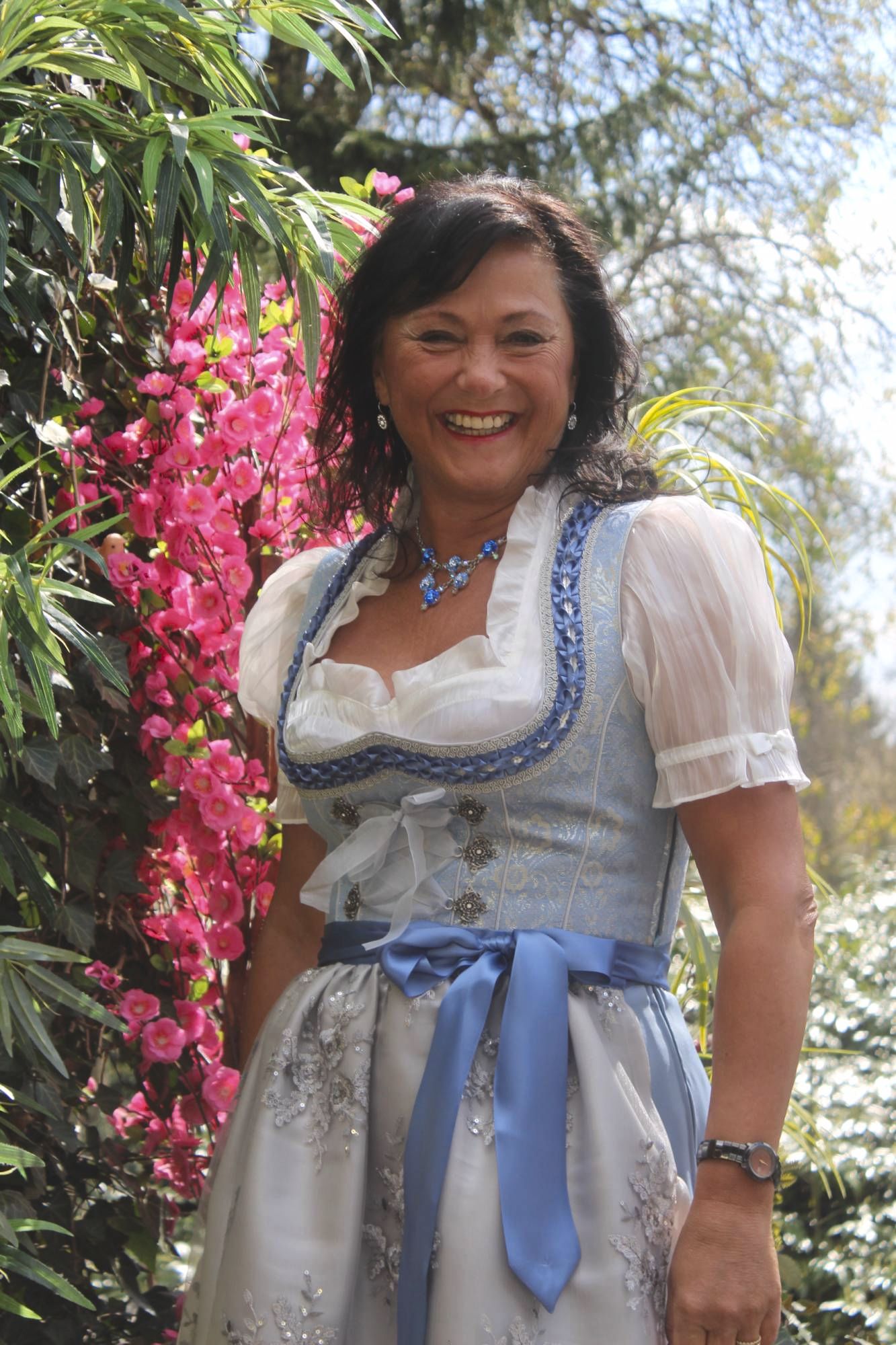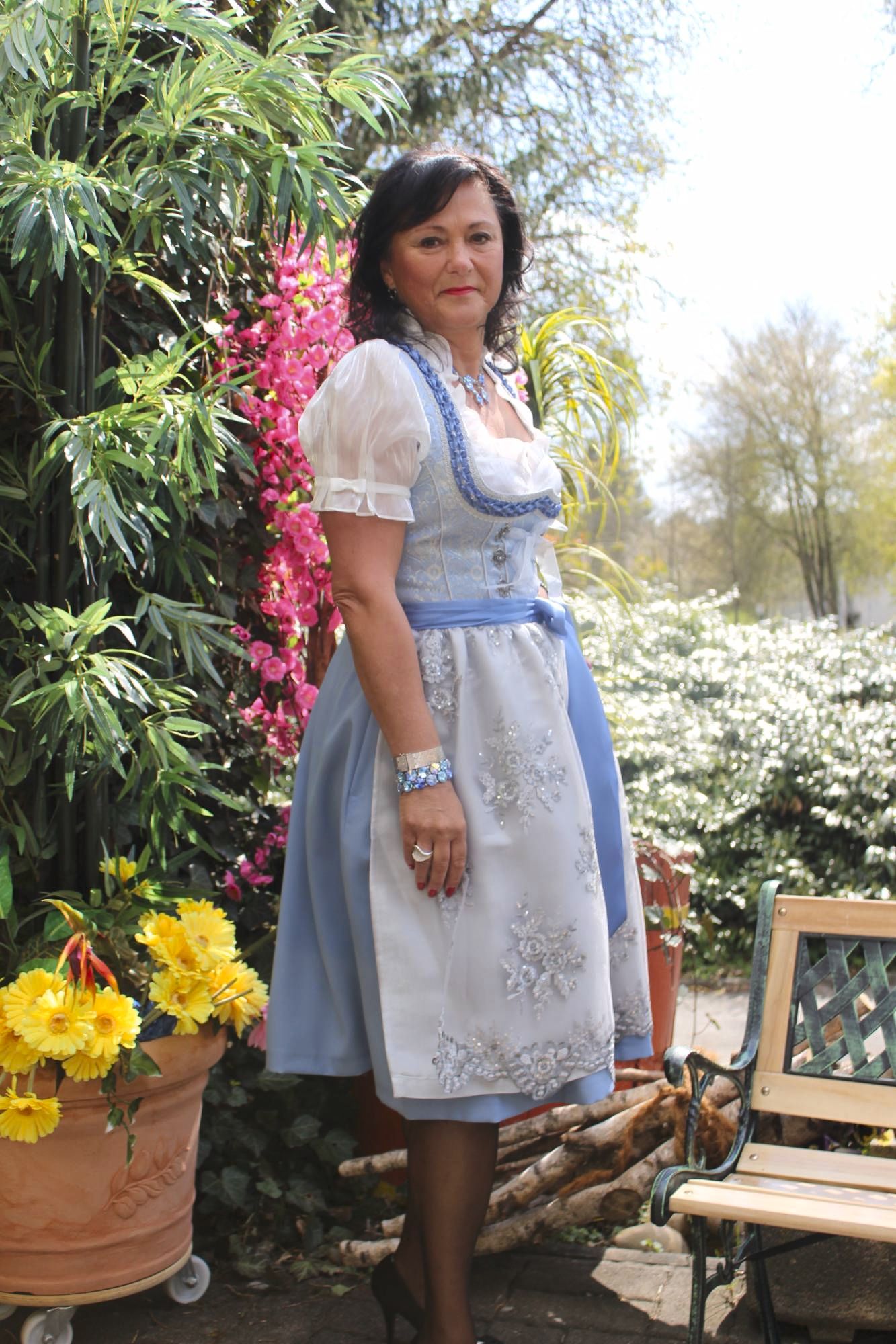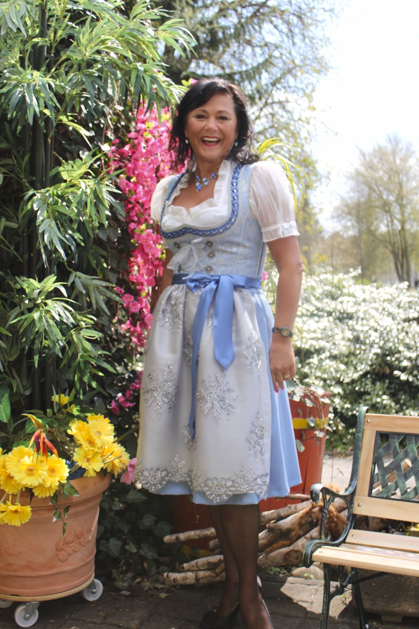 Hier zeigen wir Ihnen ein herrliches edles und fetziges Dirndl zugleich, in den Edelfarben blau, silbergrau und silber.