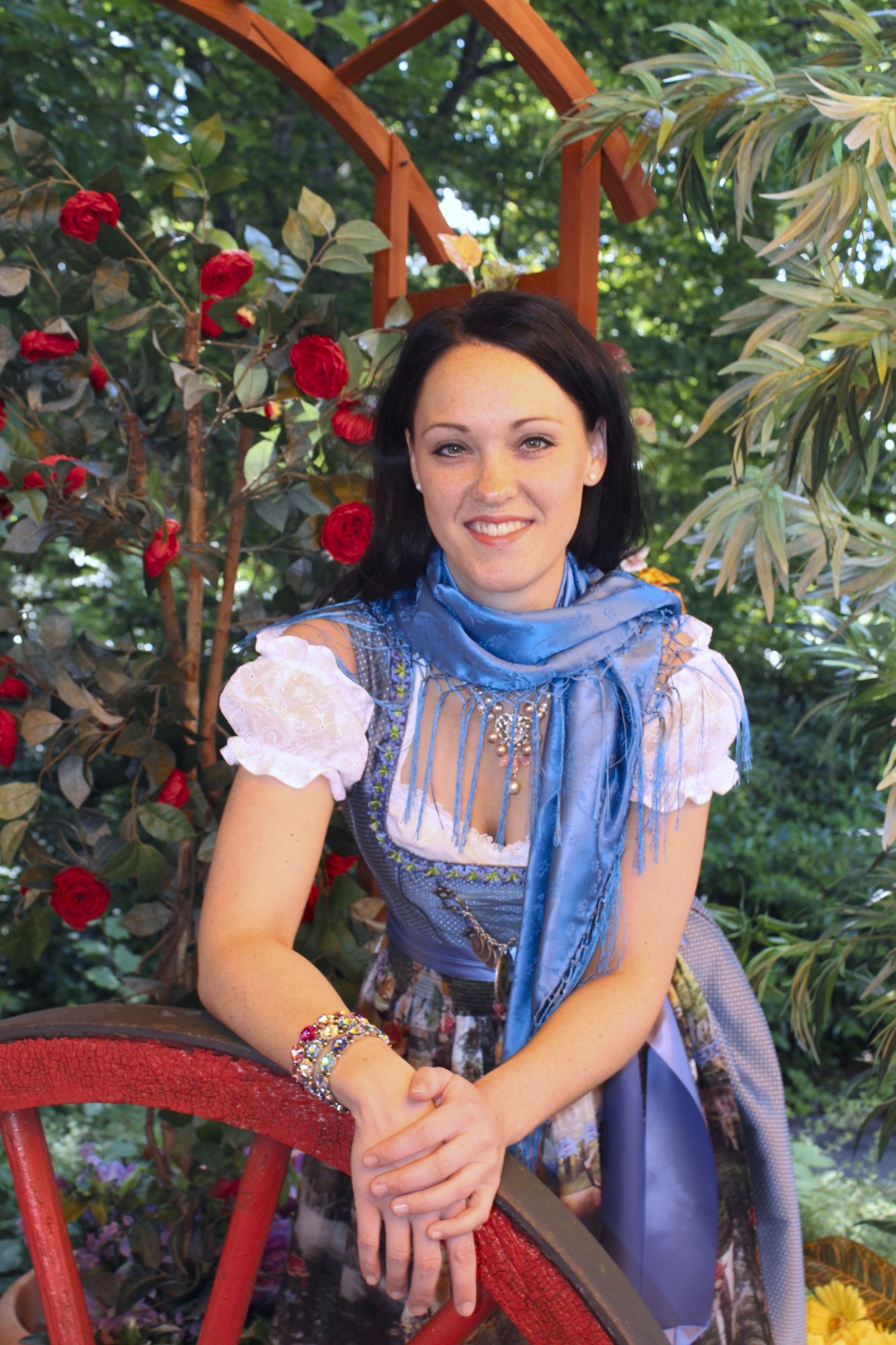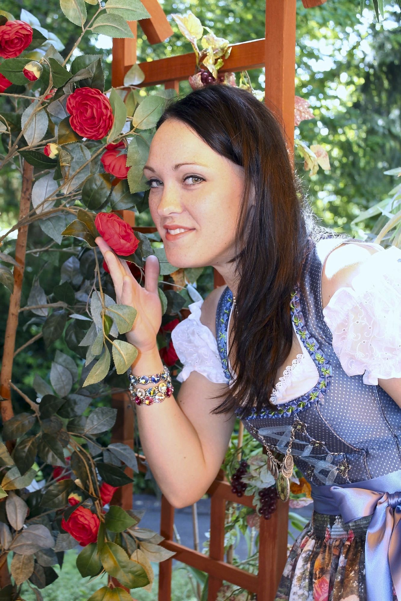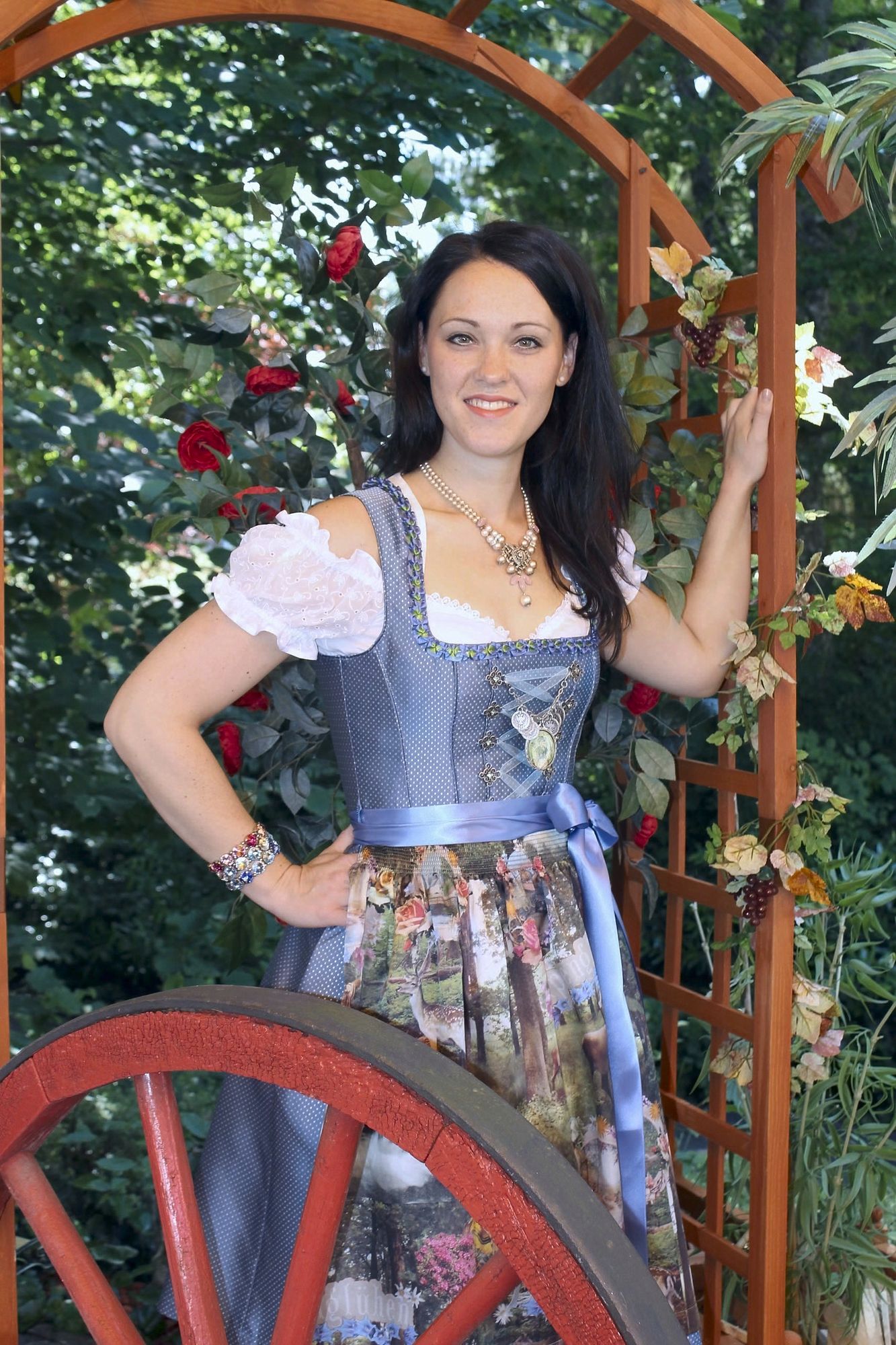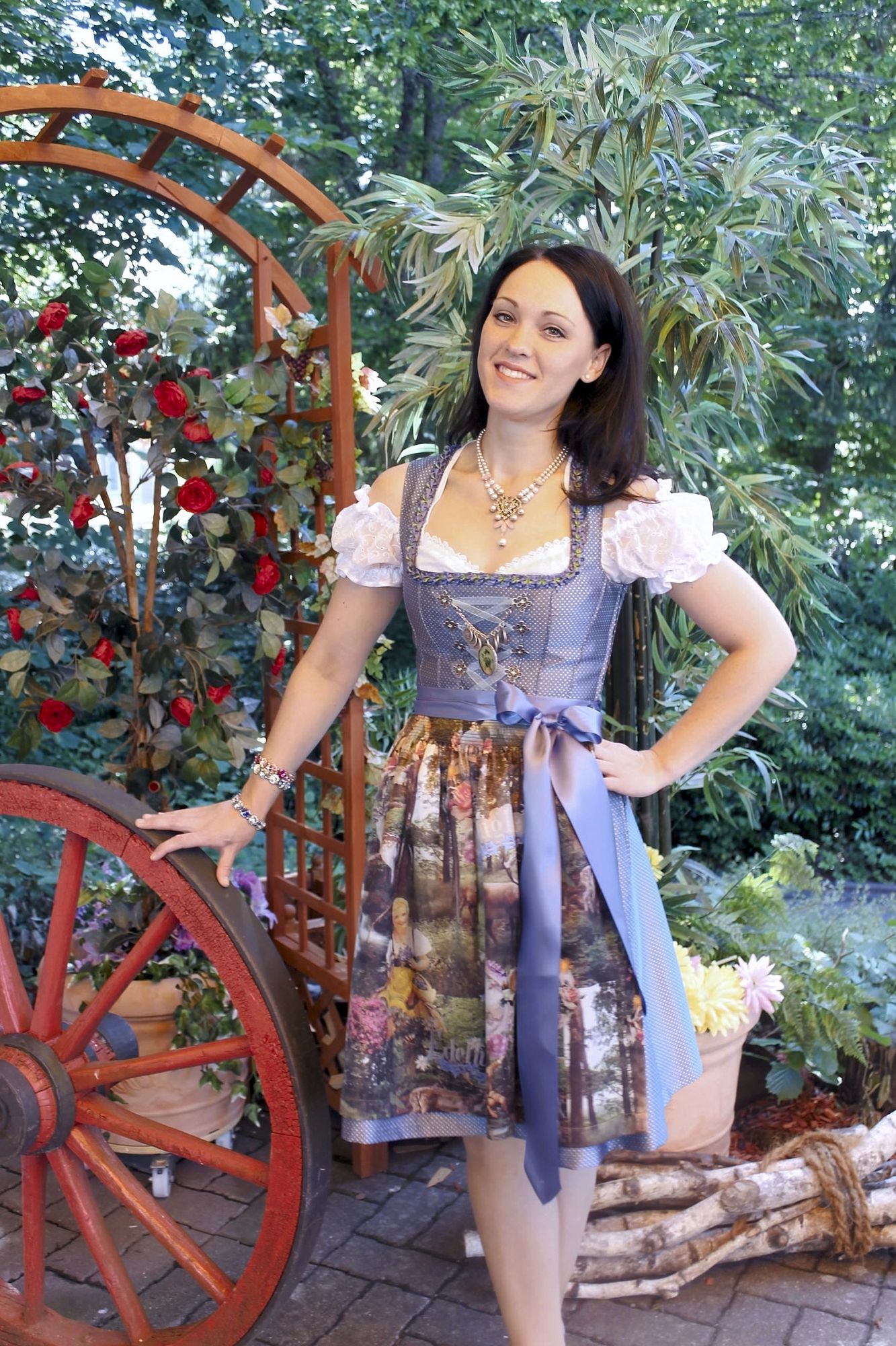 Abgerundet wird das Gesamtbild durch die Edelschürze mit herrlichen Motiven aus der Dirndlzeit.