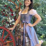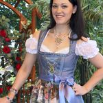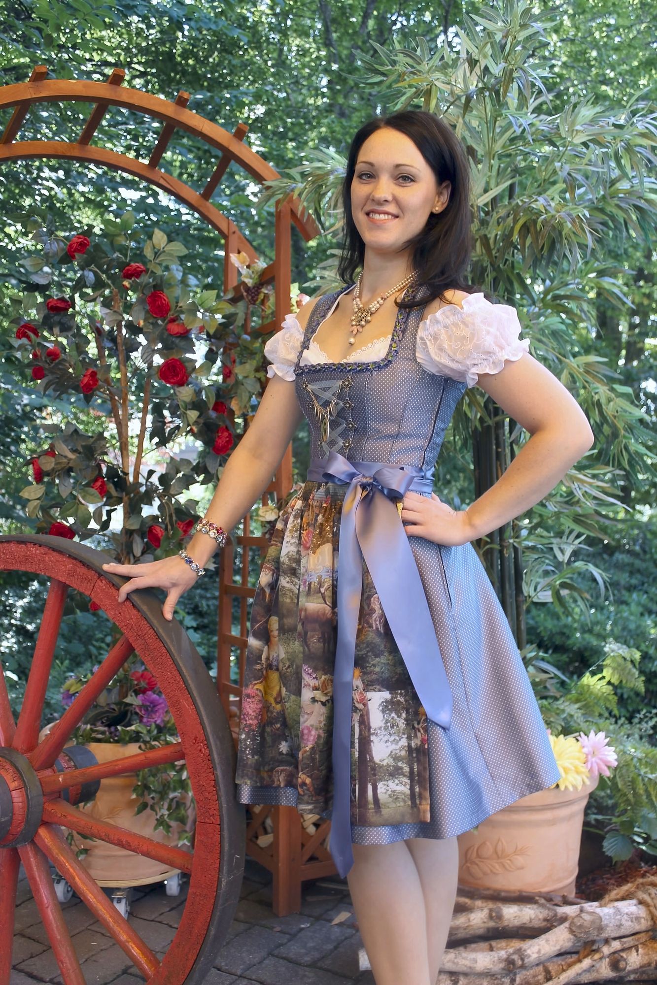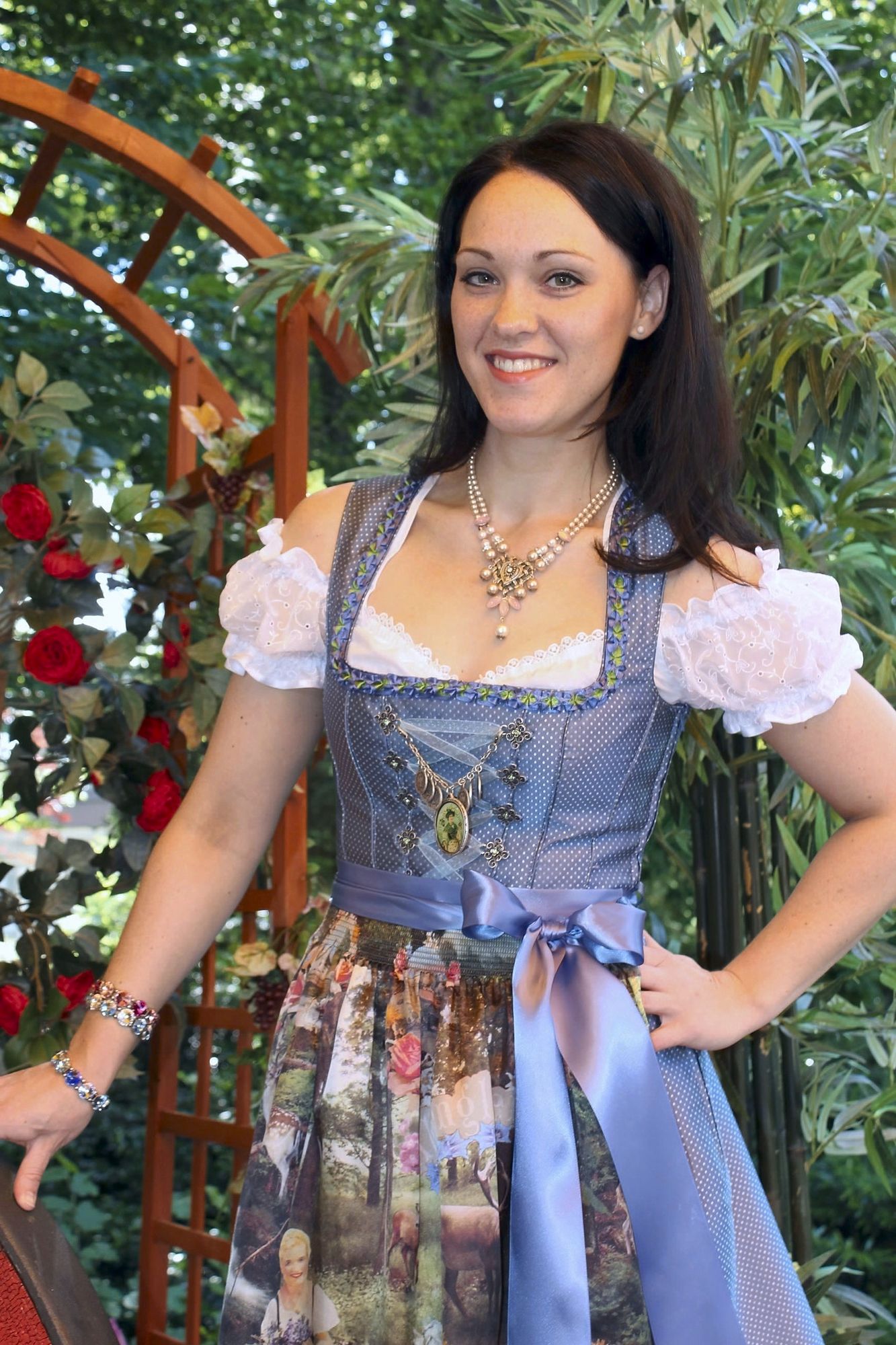 Hier zeigen wir Ihnen ein herrliches Motiv-Dirndl in den zarten Edelfarben blau und lindgrün.