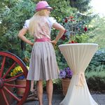 Der cremefarbene Rock, passt genauso perfekt zu dem Dirndl, wie die edle Doppelschürze.