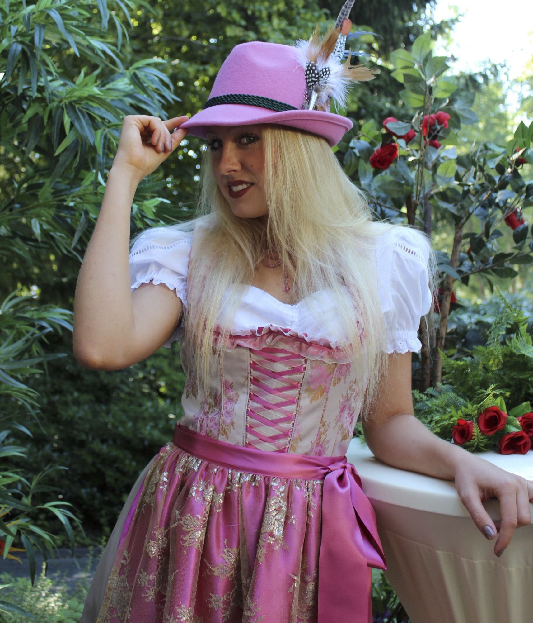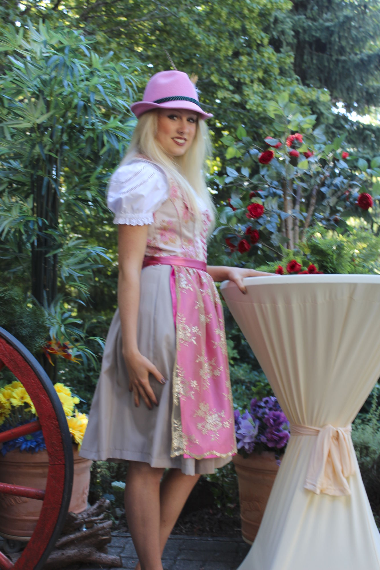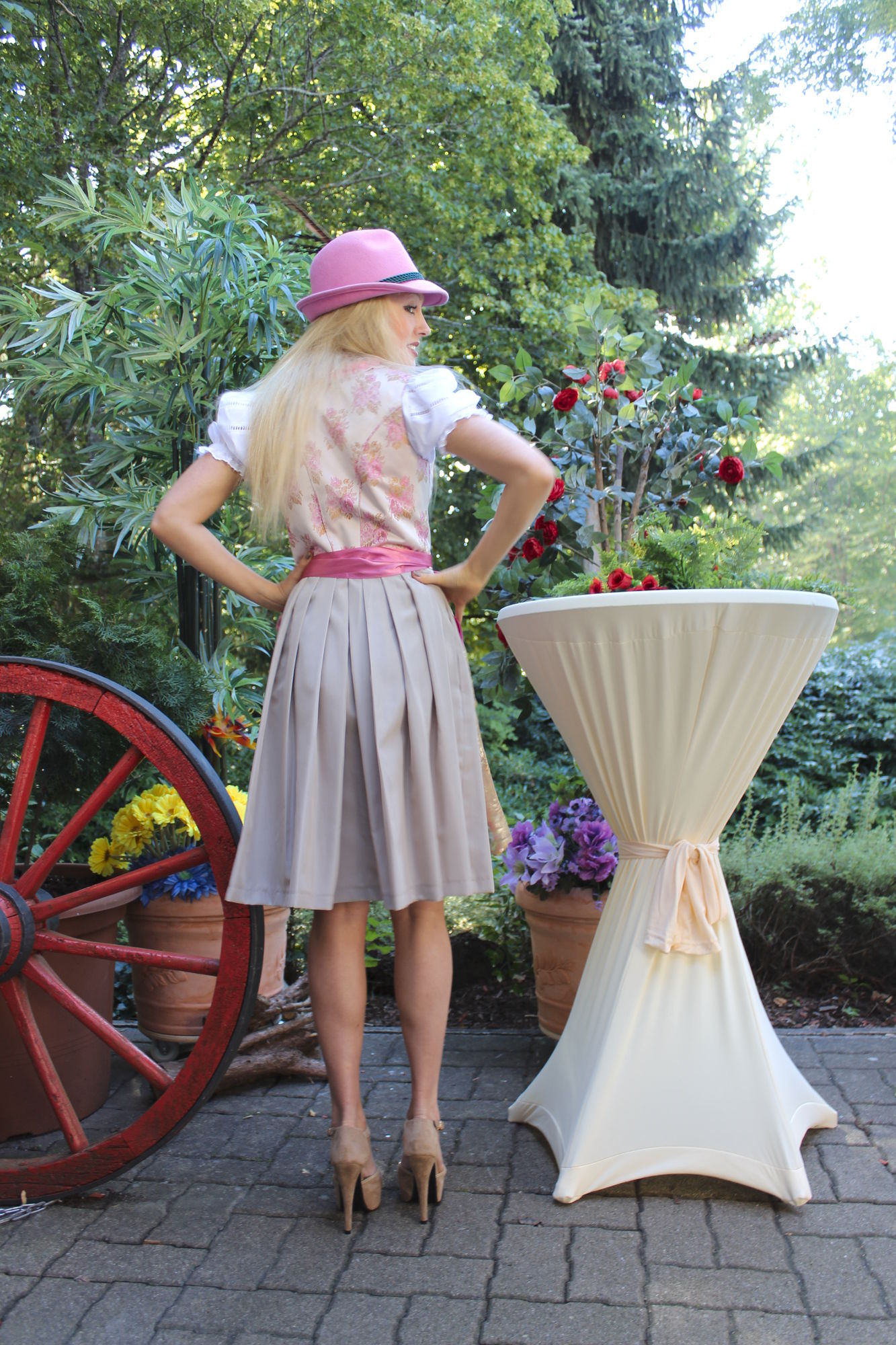Hier zeigen wir Ihnen ein traumhaftes Dirndl in den zarten Pasteelfarben, rose,rosa, creme und dezentem pink.