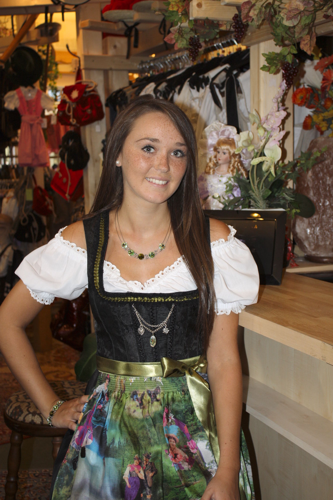 Hier zeigt Ihnen Laura ein Traum von einem Dirndl.