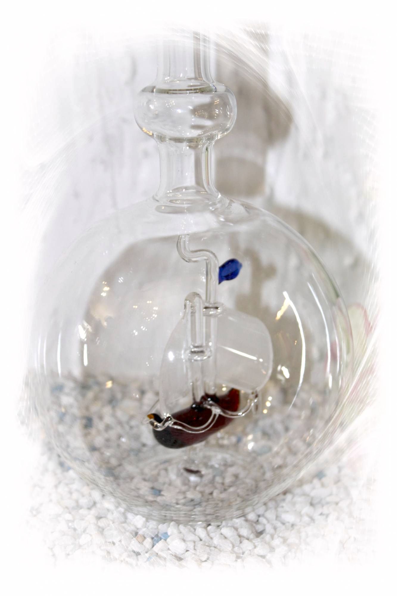 Wenn die Flasche gefüllt ist, glaubt man das Schiff fährt durch die Flüssigkeit. Ein toller Effekt.