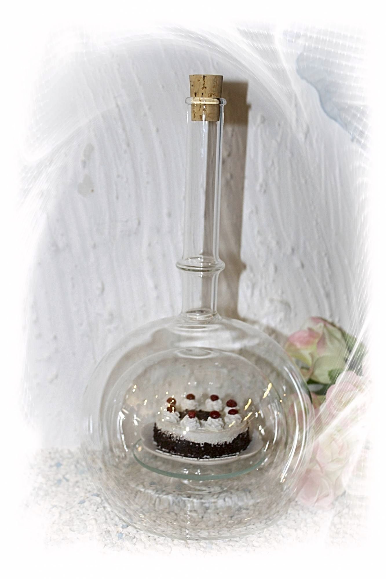Edelglasflasche "Schwarzwald" mit Kirschtorte