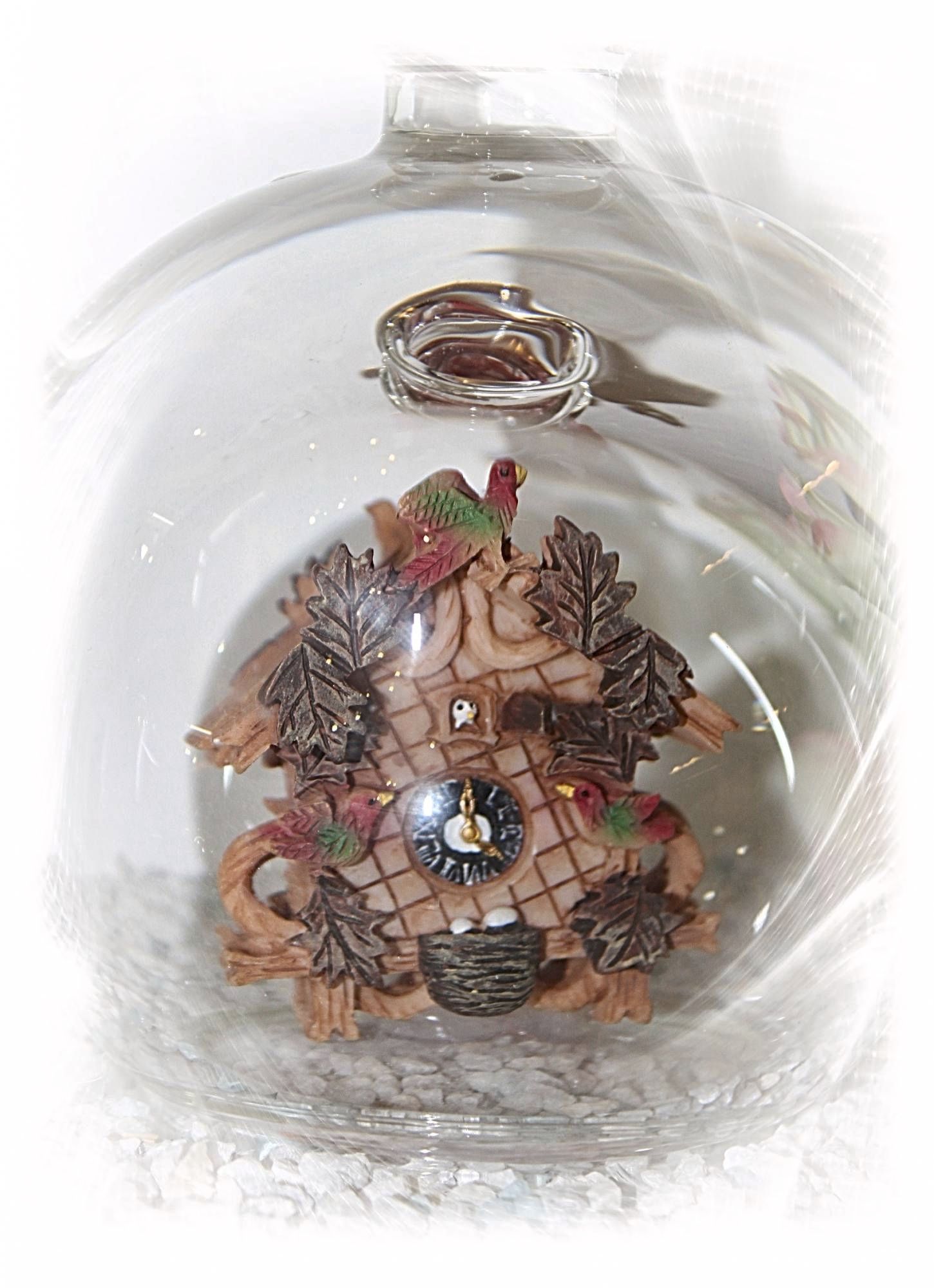 Glasflasche "Schwarzwald" mit Kuckucksuhr