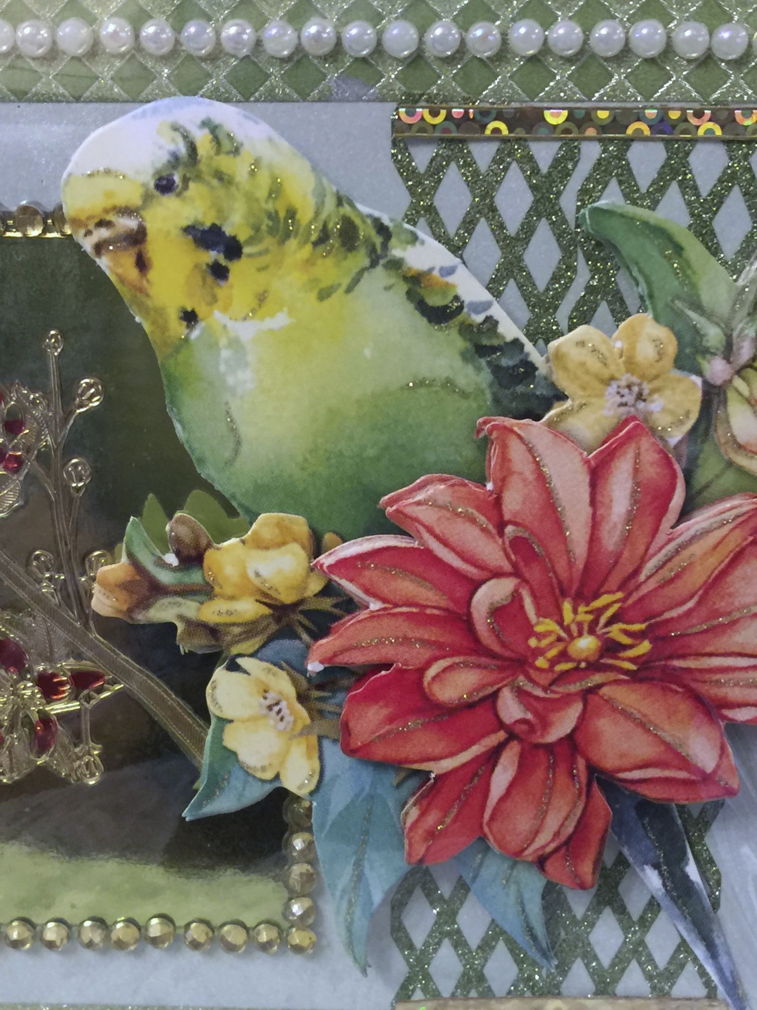 Material: Karton, Papier, Perlen, Schmucksteinchen