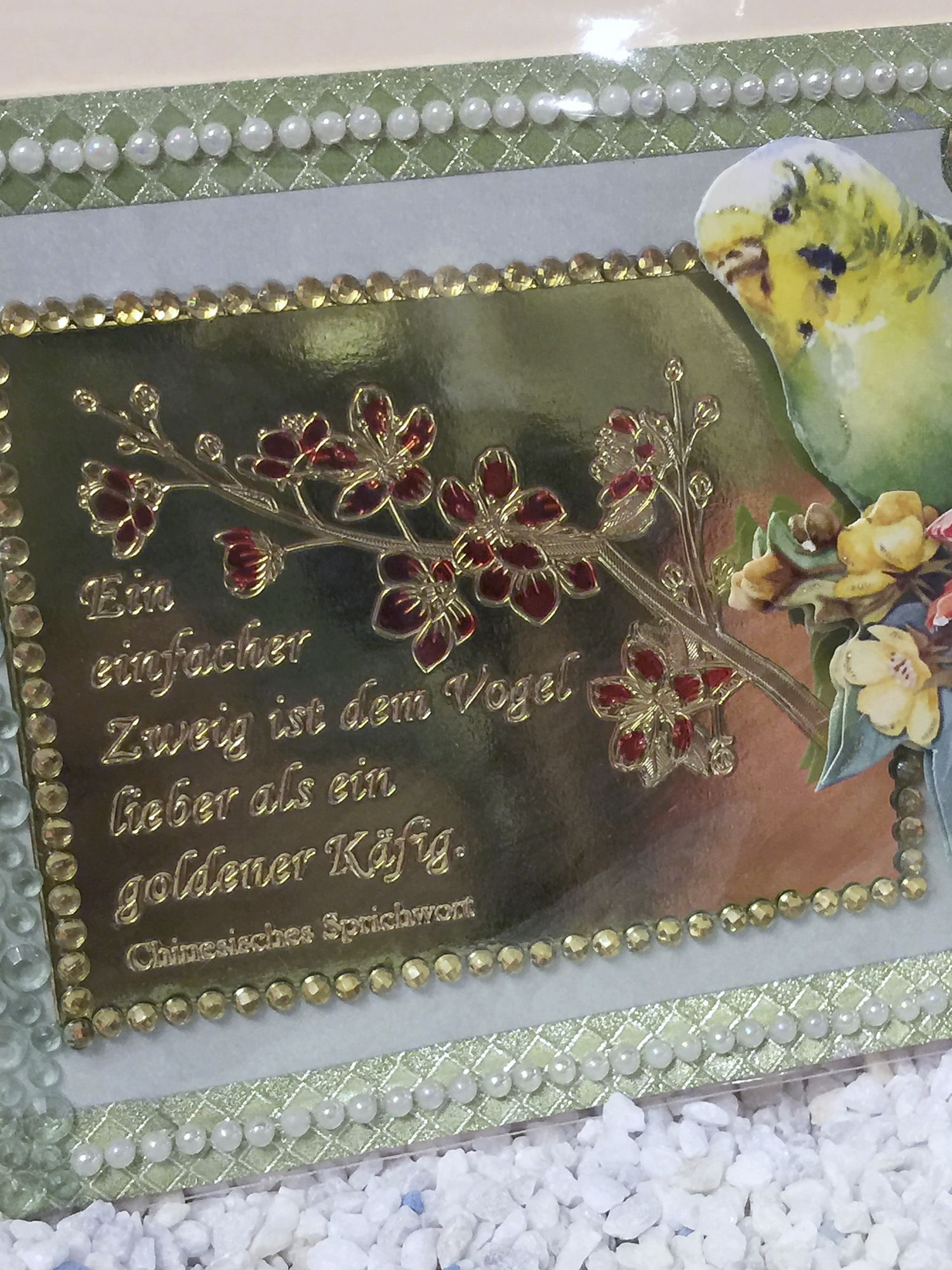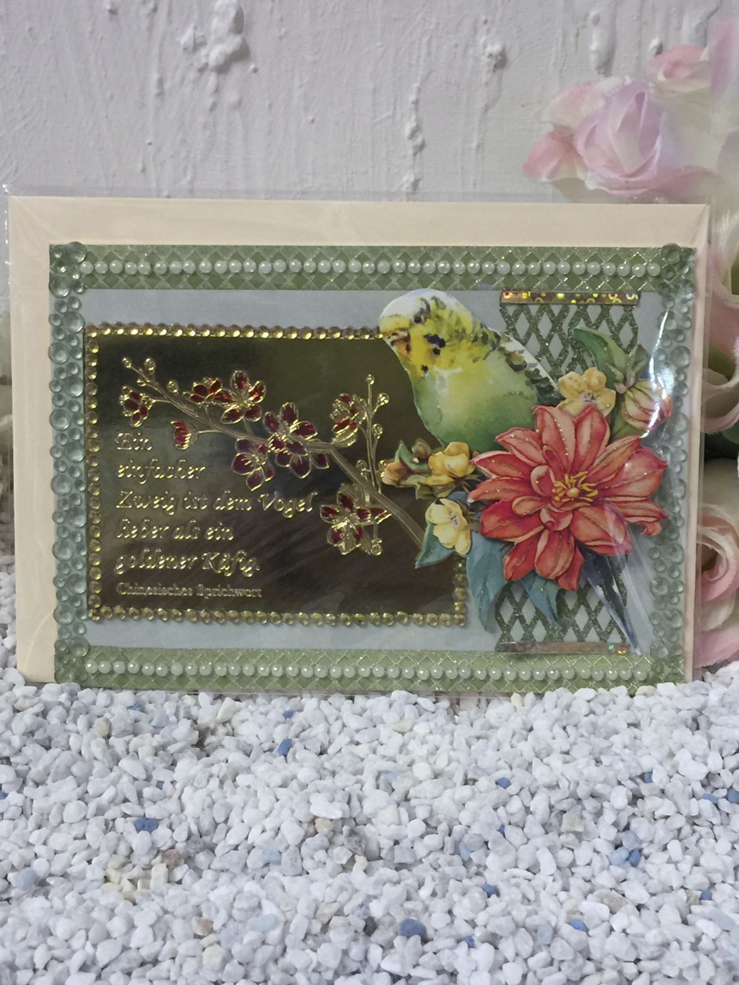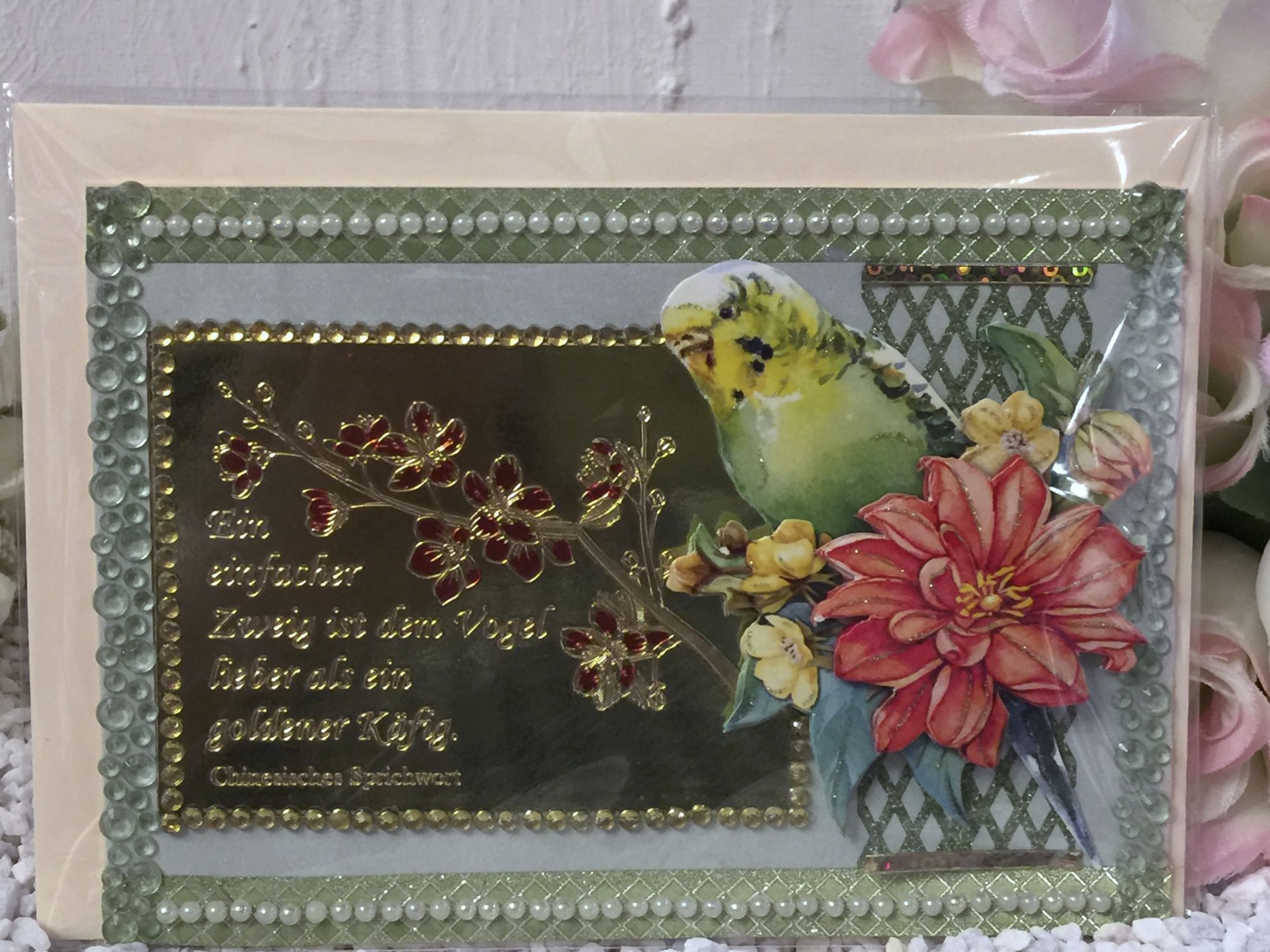 Karte mit Spruch und Wellensitich
