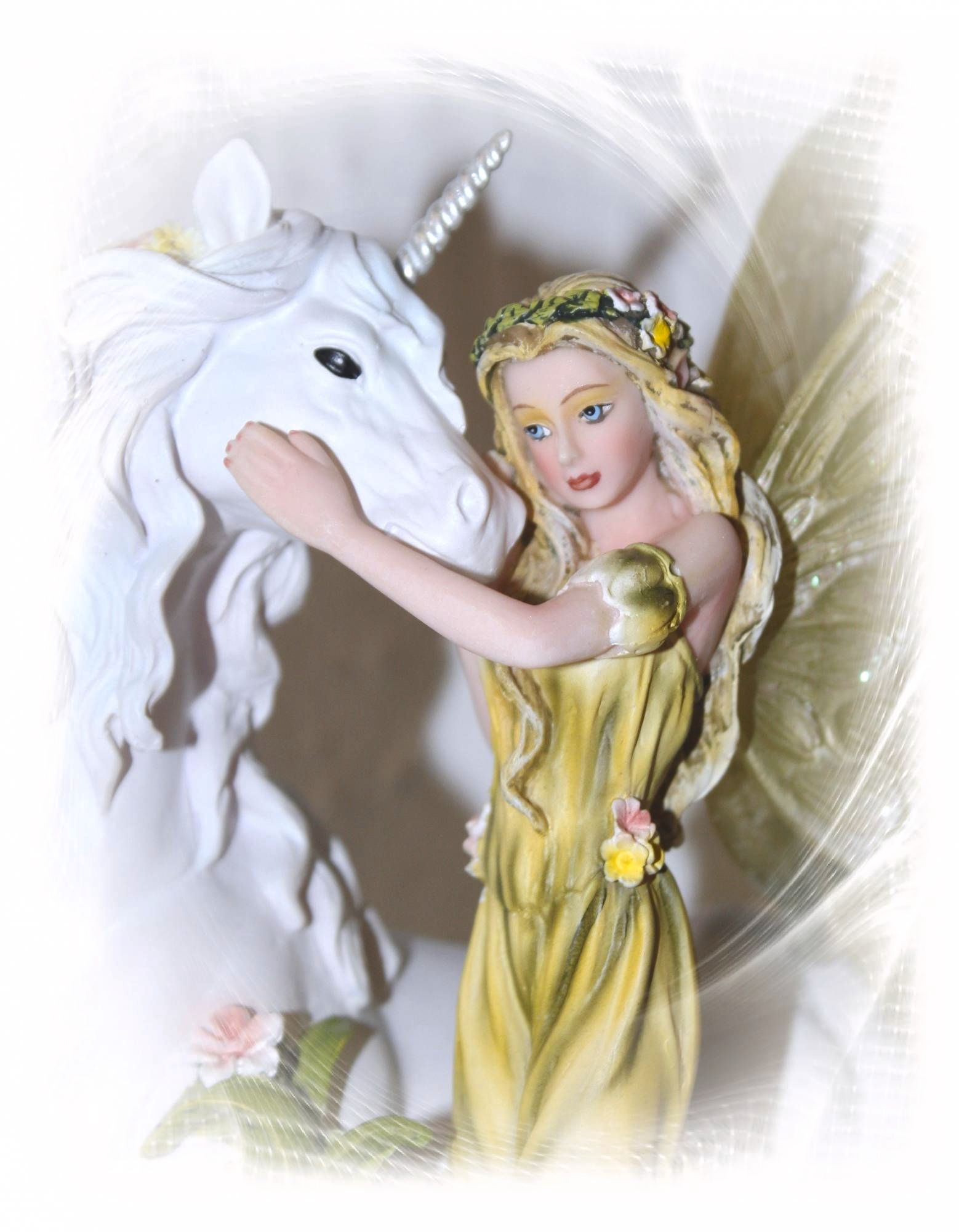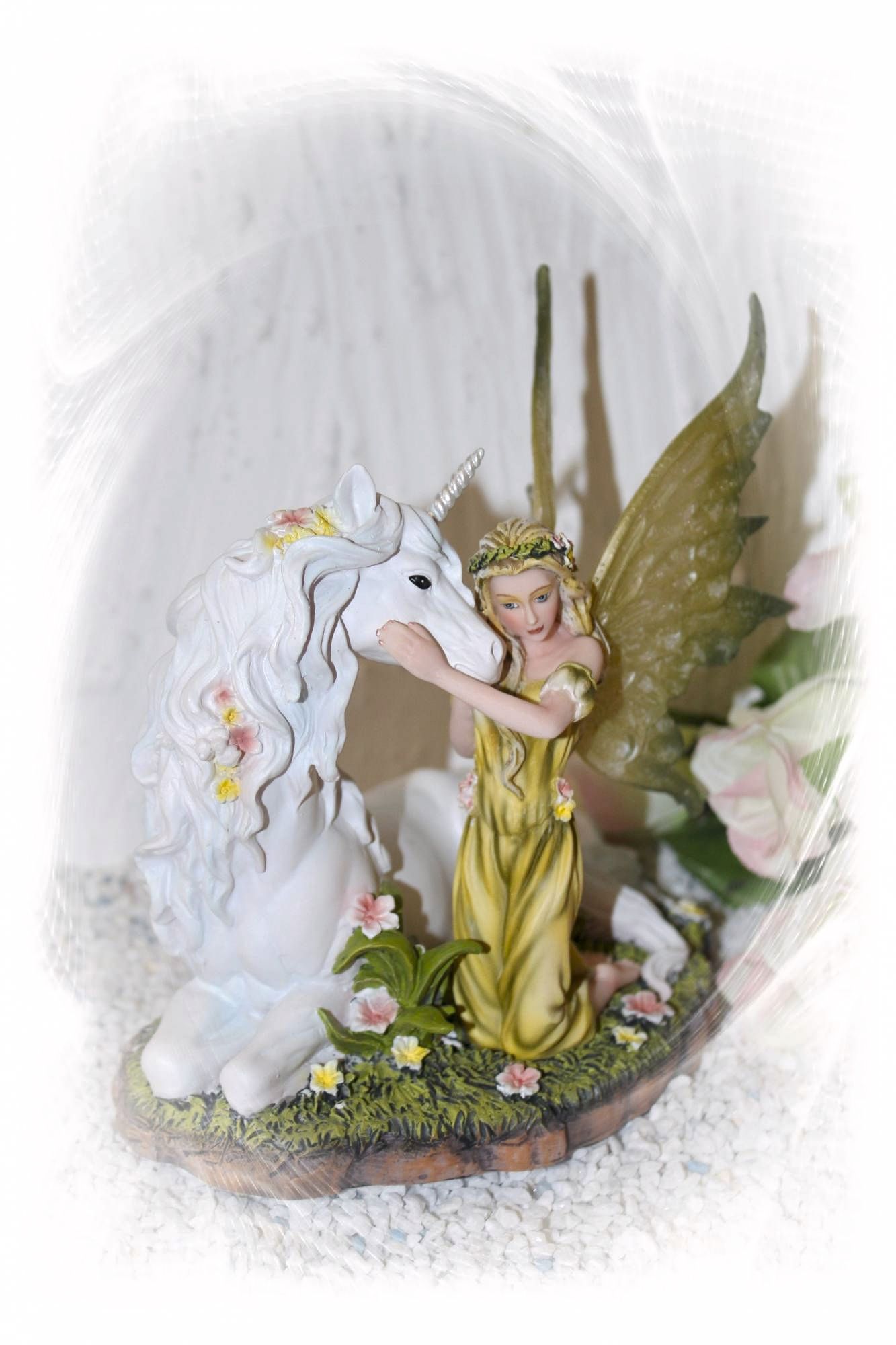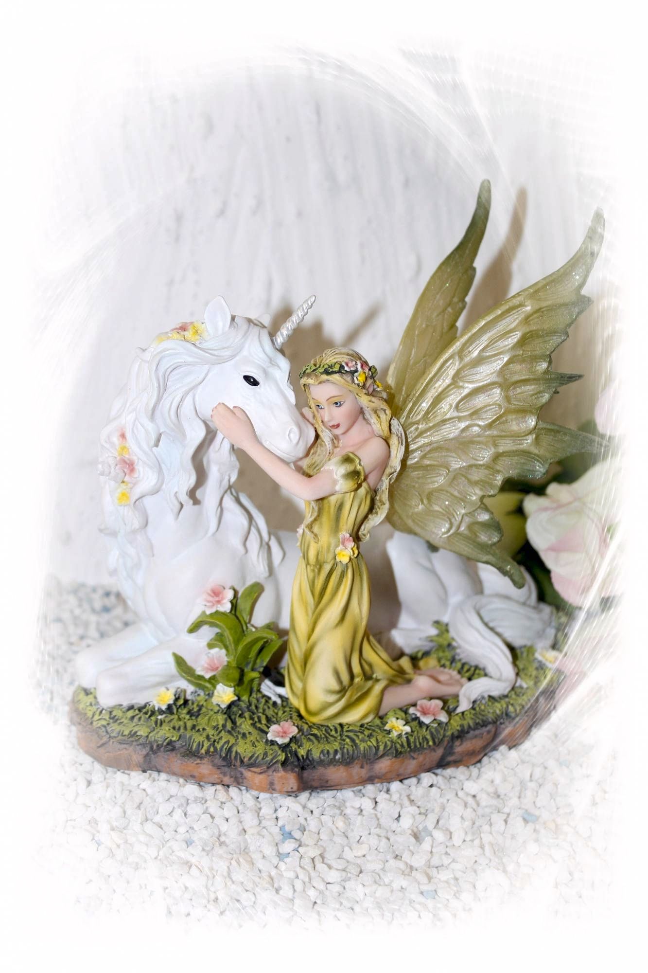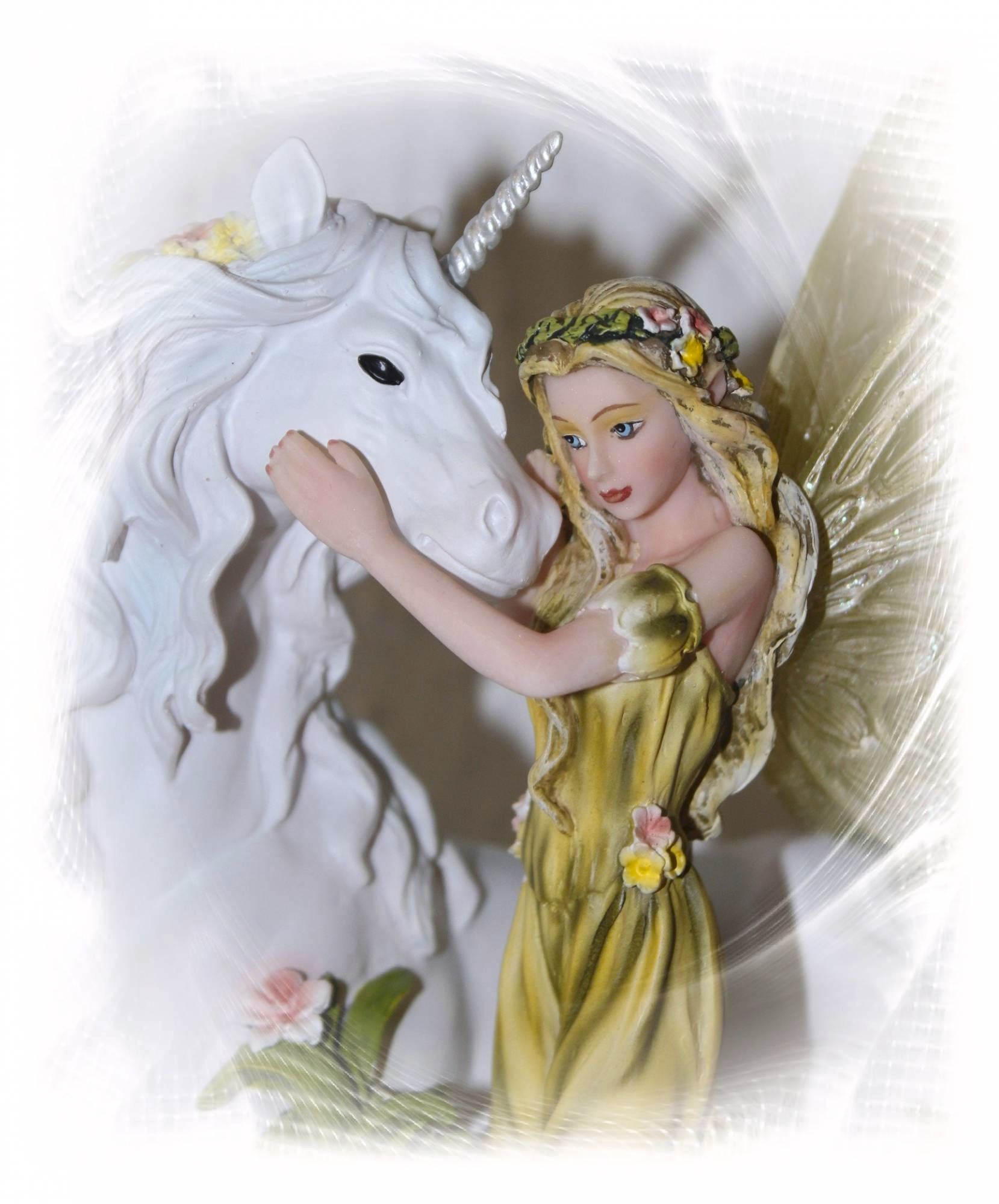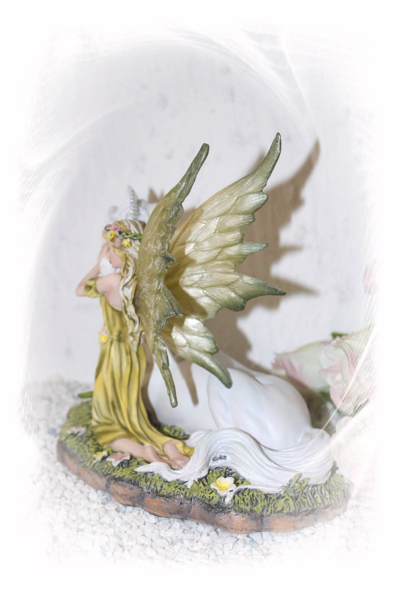 Diese Elfen mit dem Fabelwesen des Einhorns werden in feinster Handarbeit gefertigt und liebevoll von Hand bemahlt.