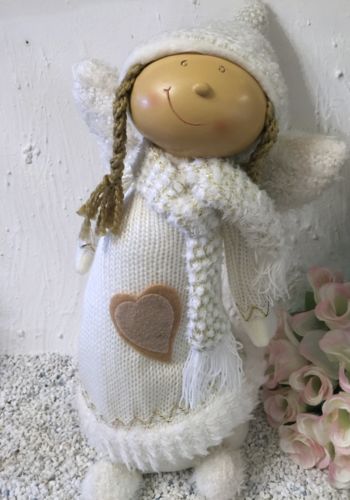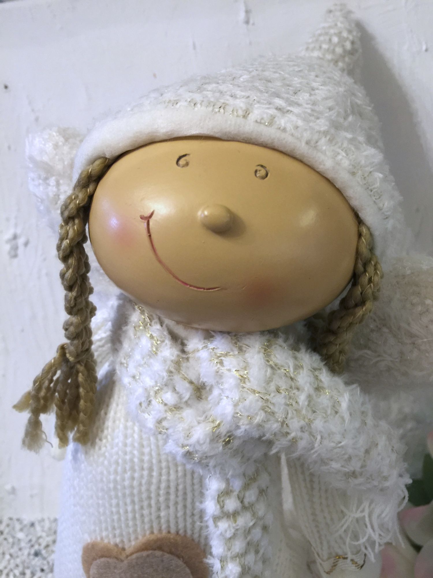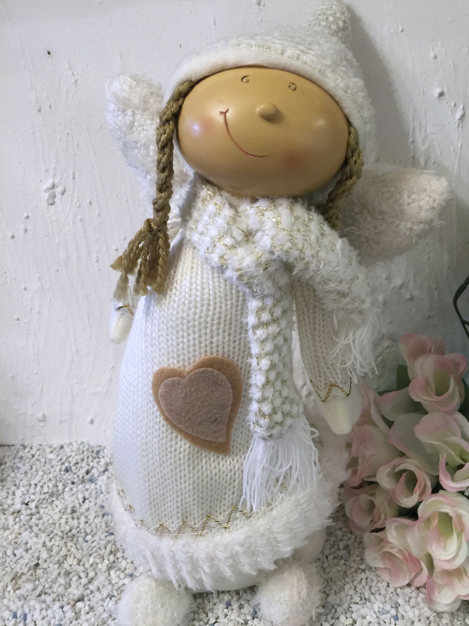 Ebenso die schönen glitzernden Engelsflügel, Mütze und Schal geben diesem Engel ein zauberhaftes Aussehen.